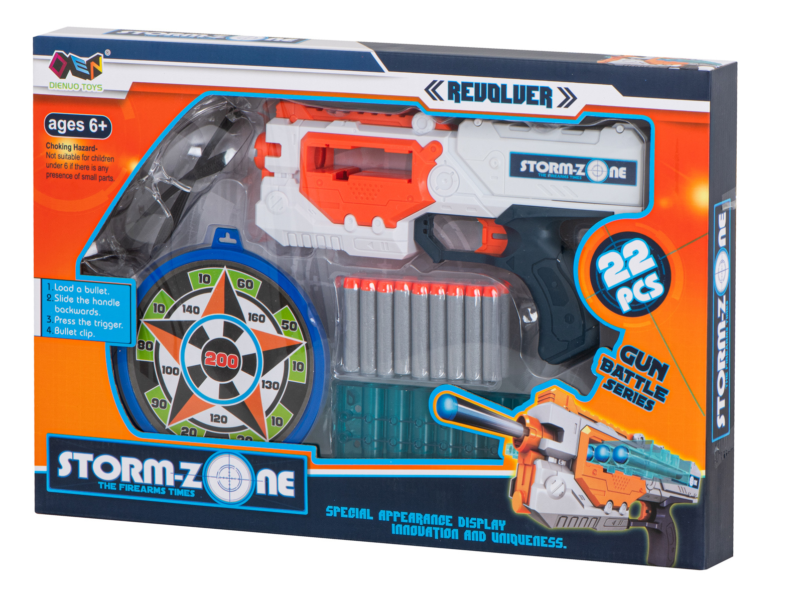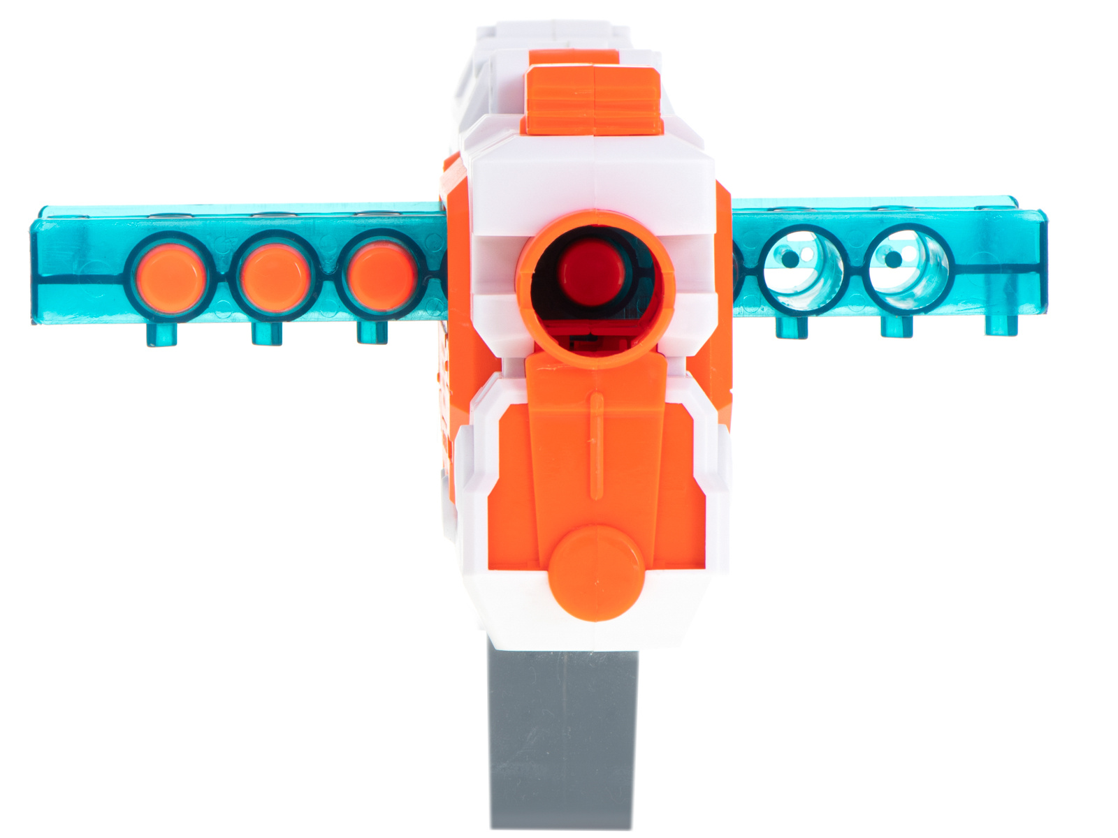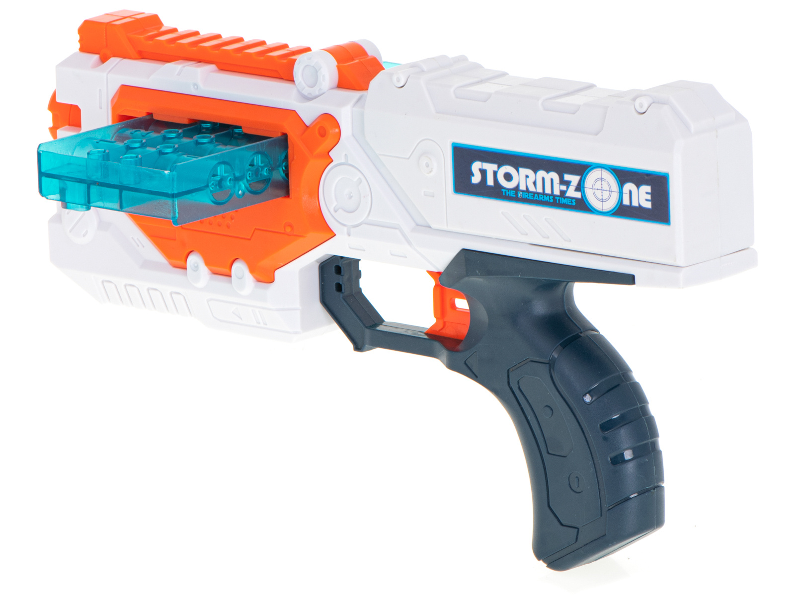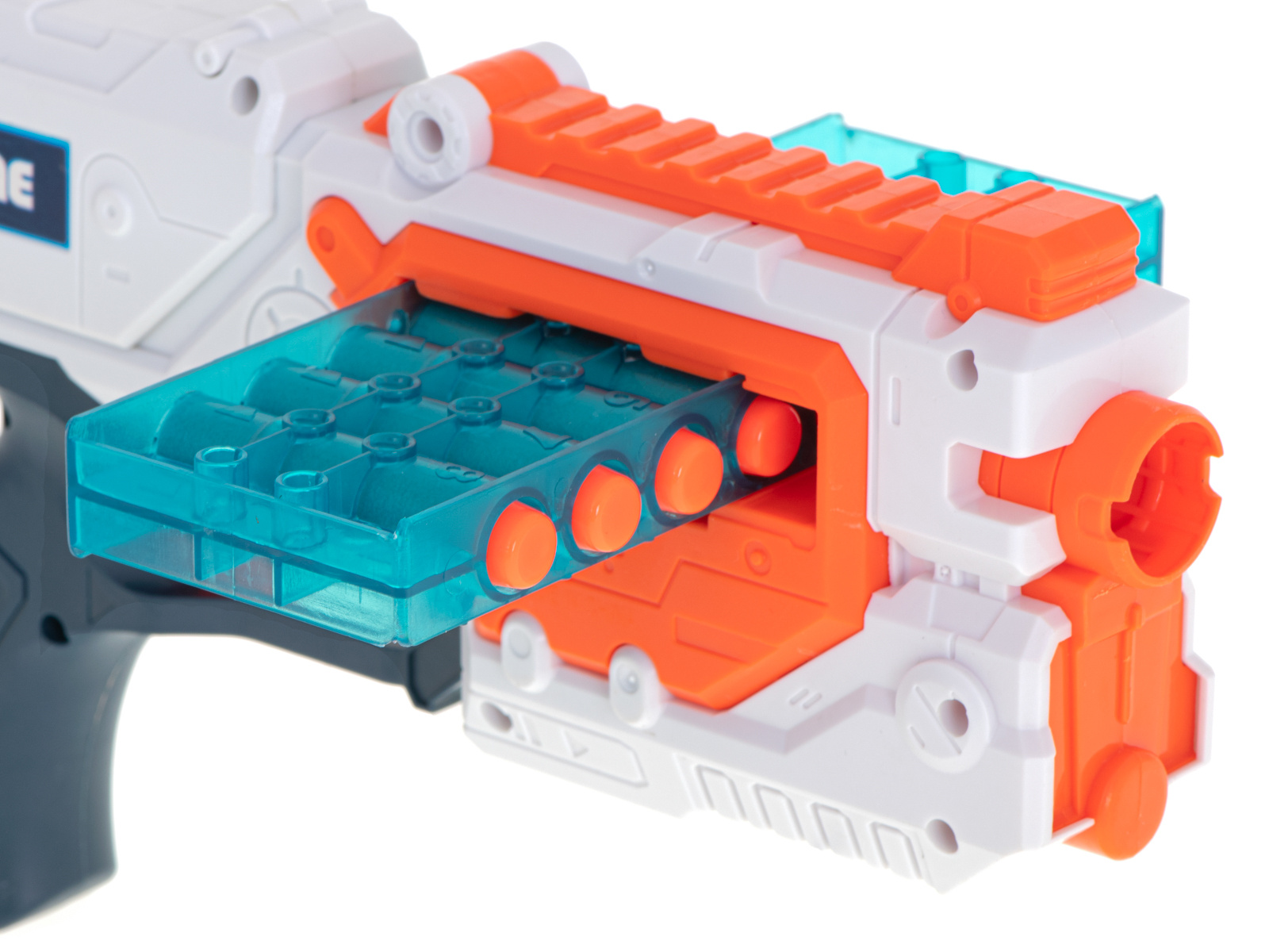 Dieleuchtenden Farben erinnern an Waffen aus beliebten Computerspielen und machen das Spielzeug für Kinder aller Altersgruppen attraktiv.
