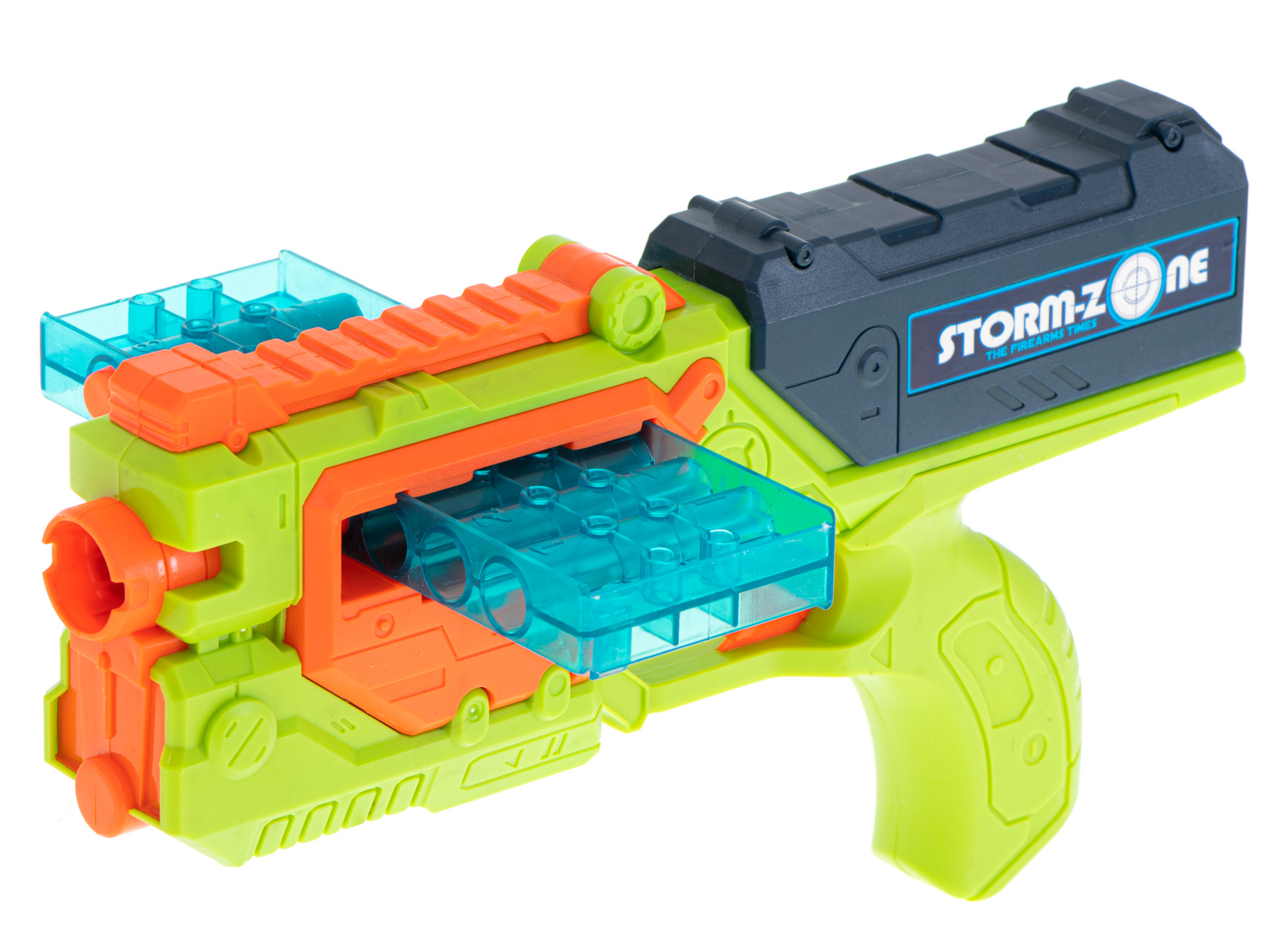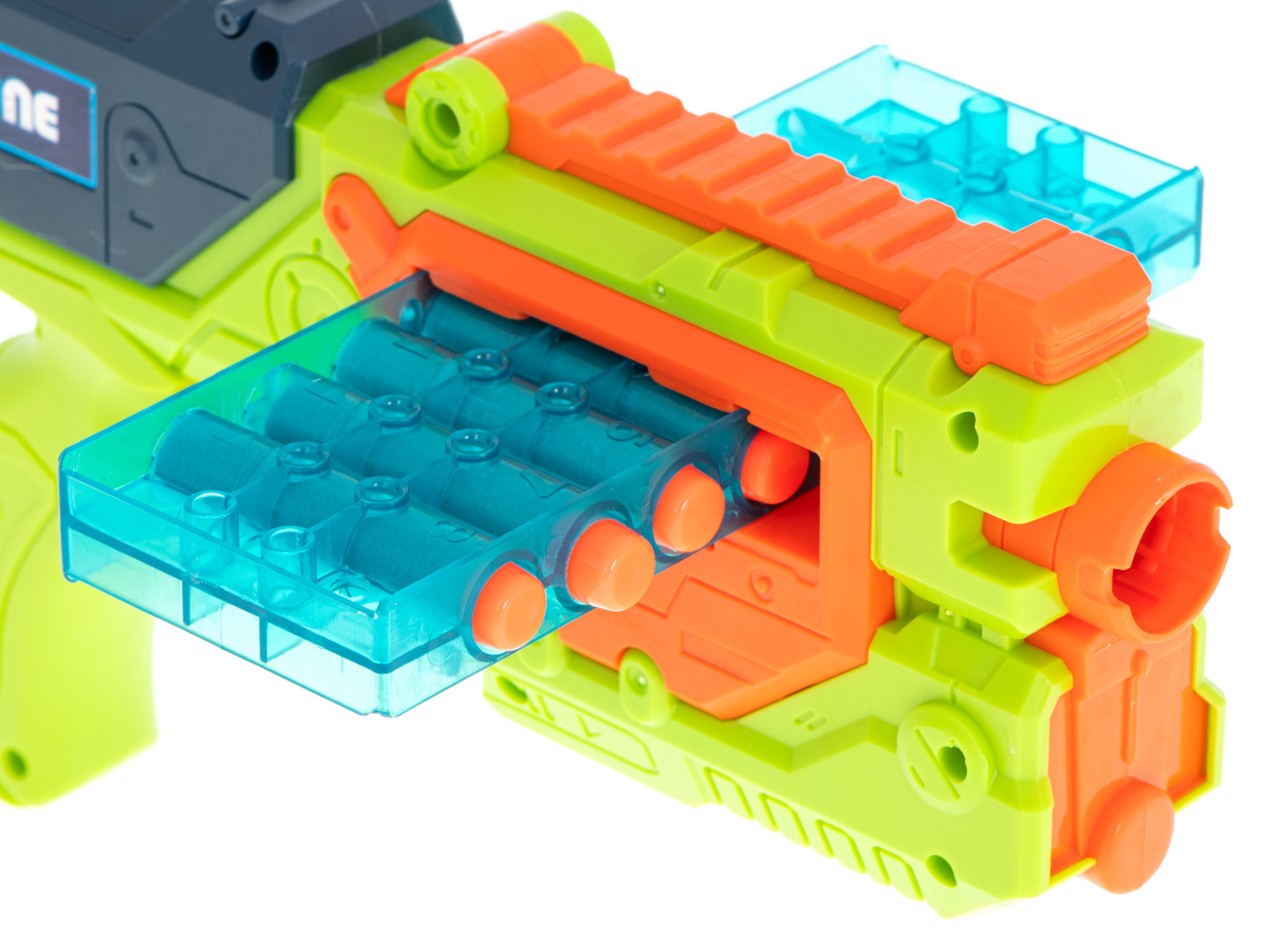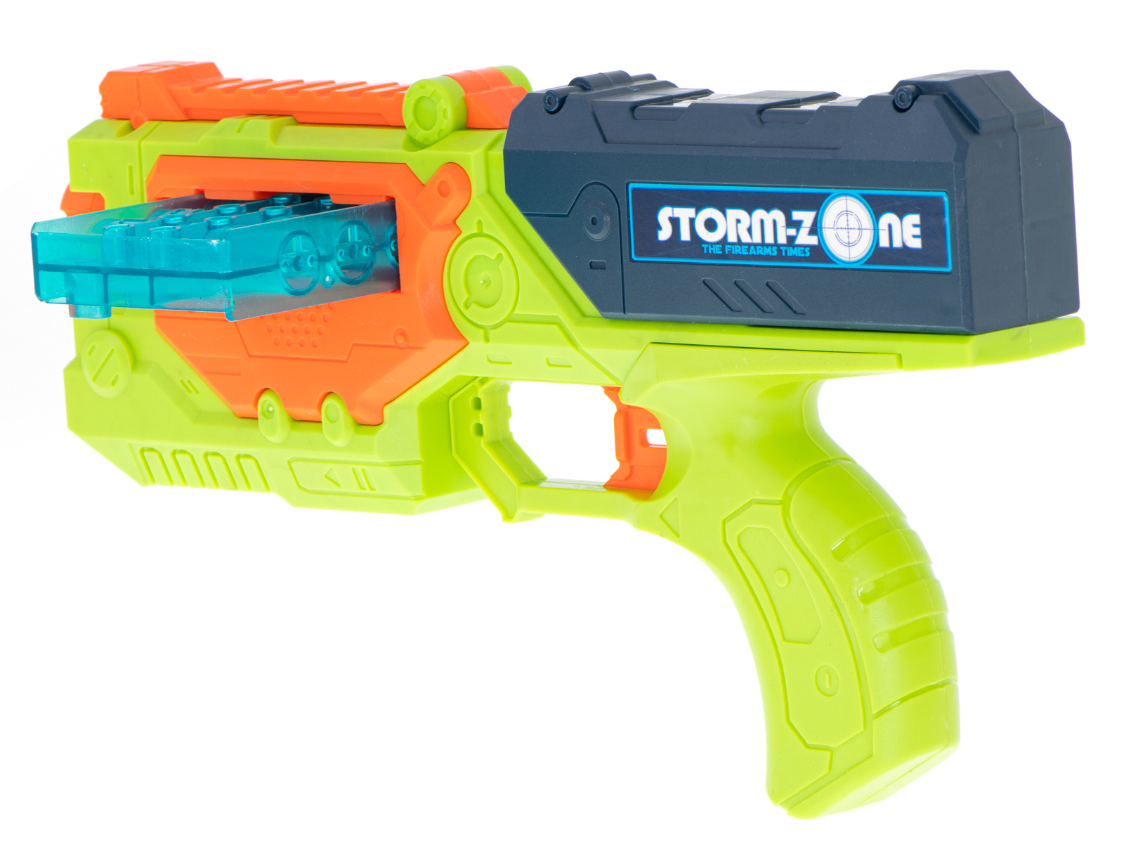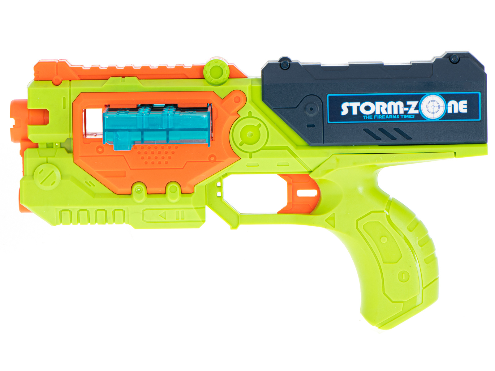 Die kräftigen Farben erinnern an Waffen aus beliebten Computerspielen und machen das Spielzeug für Kinder aller Altersgruppen attraktiv.