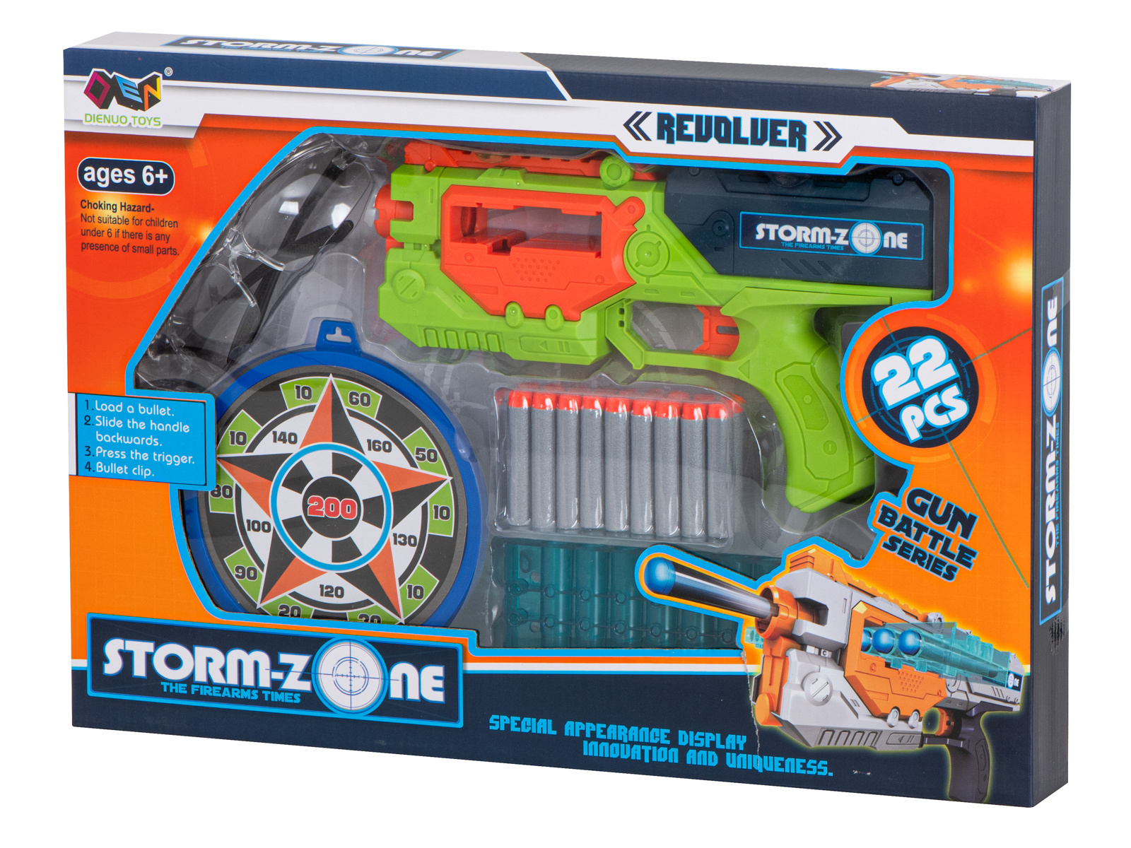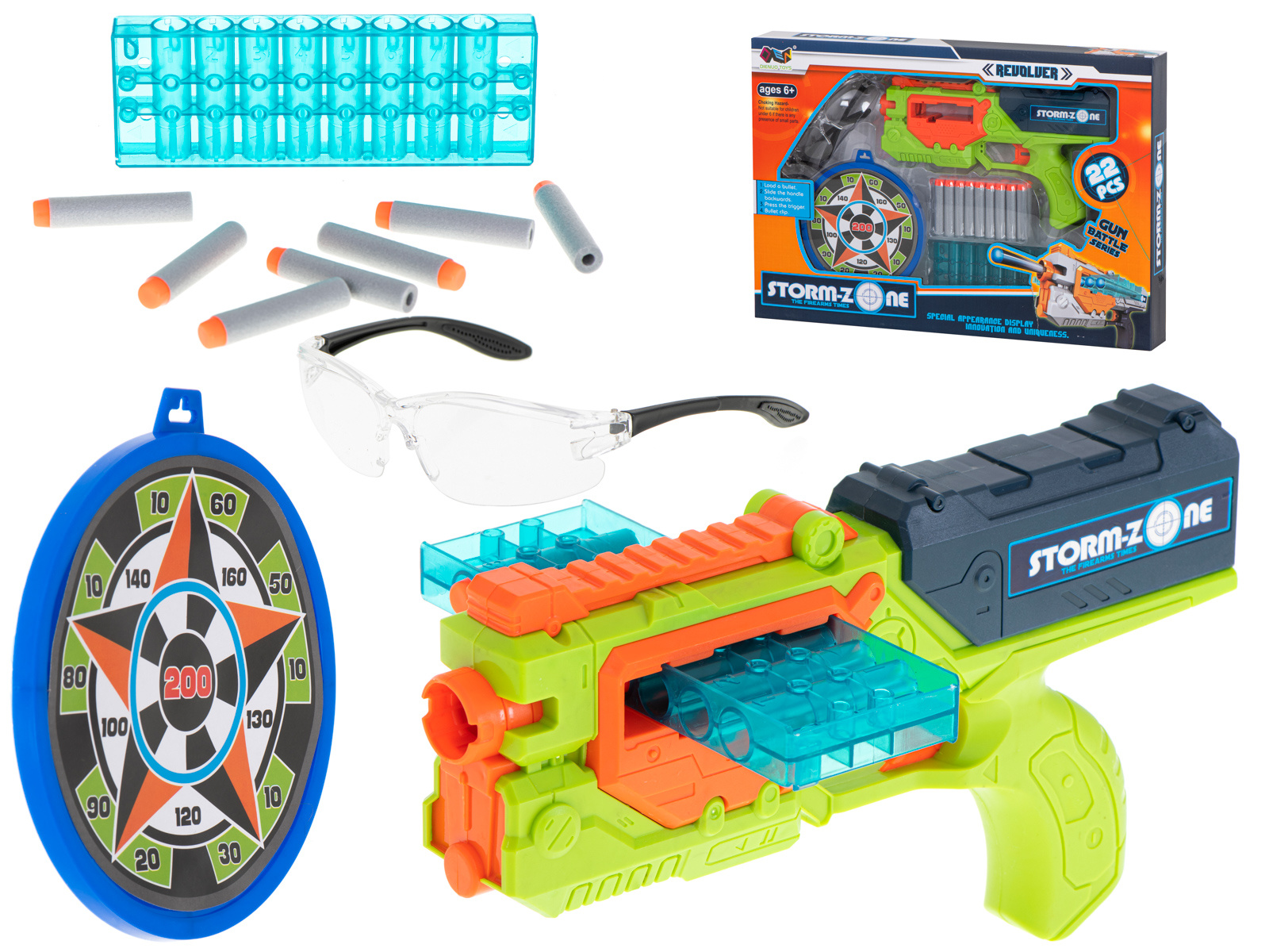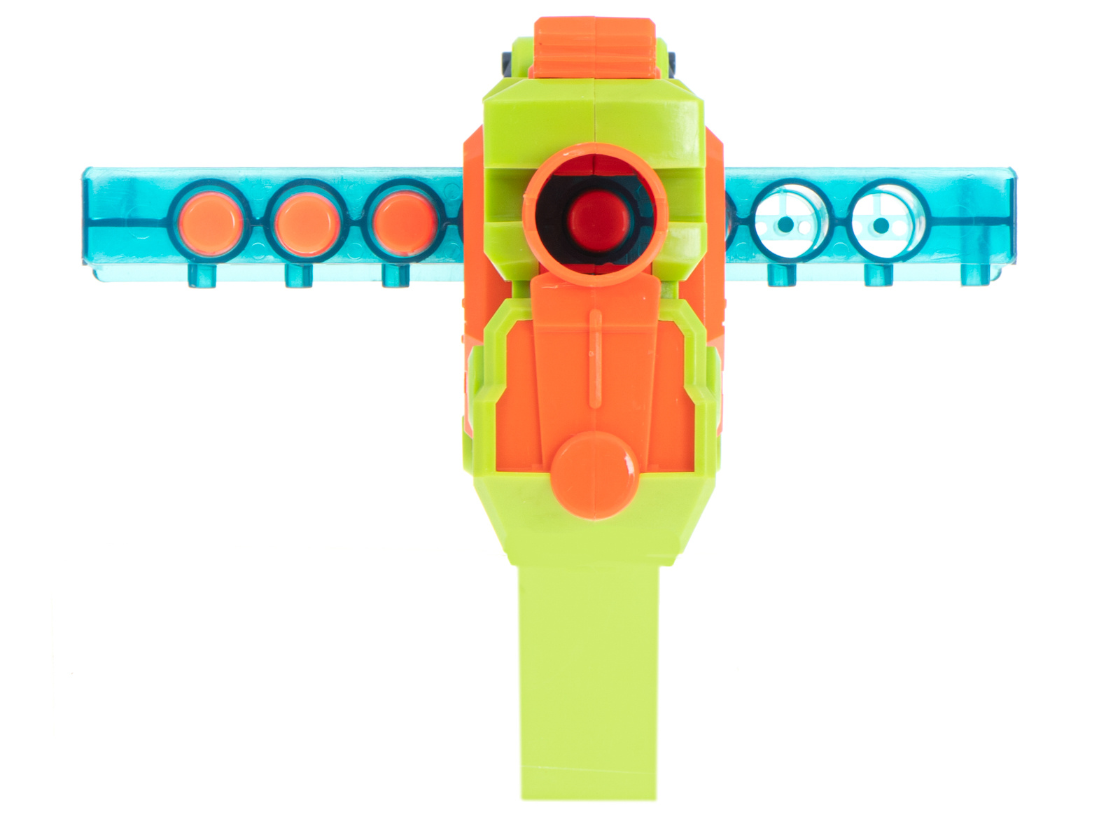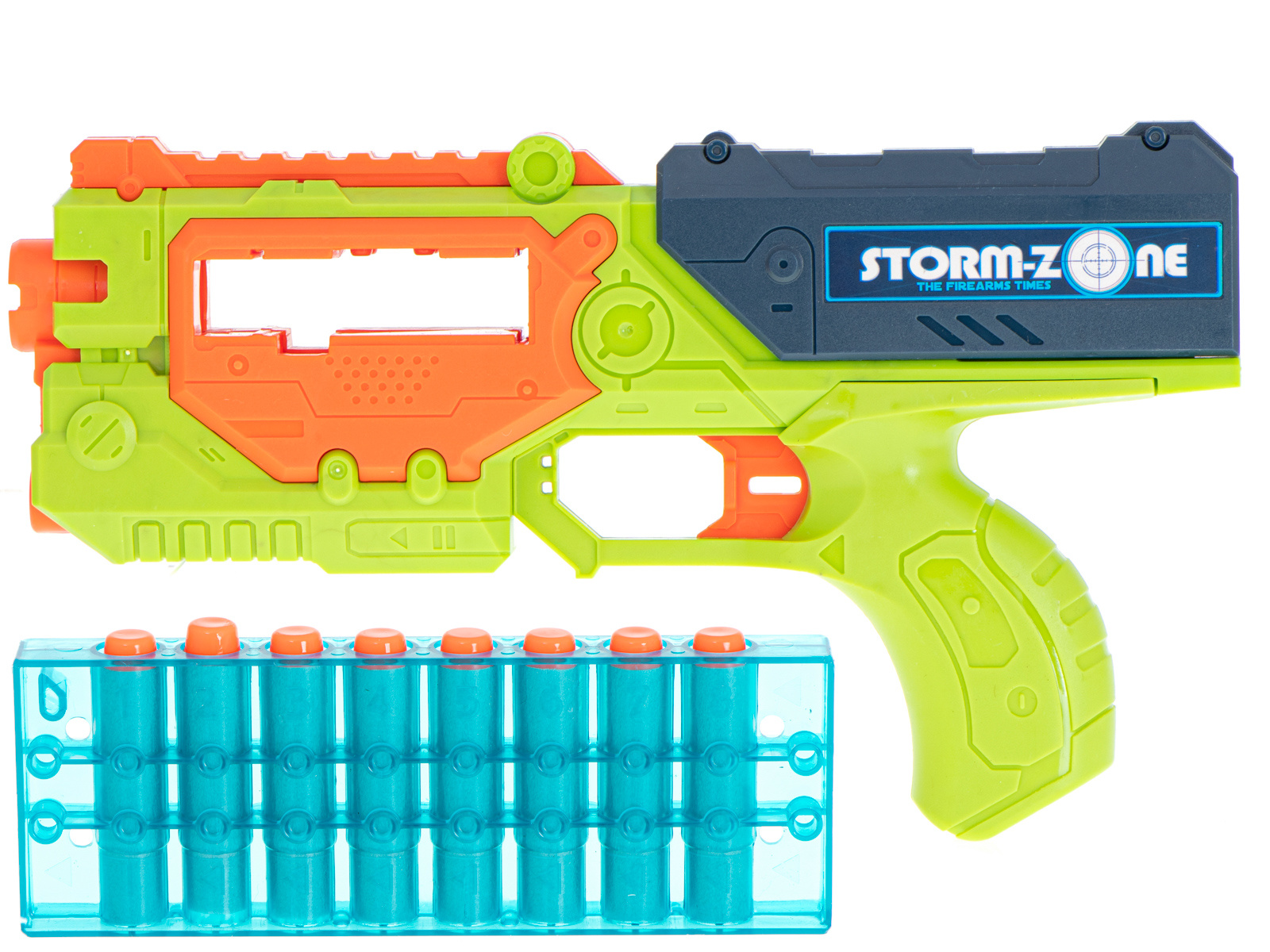 Die kräftigen Farben erinnern an Waffen aus beliebten Computerspielen und machen das Spielzeug für Kinder aller Altersgruppen attraktiv.
