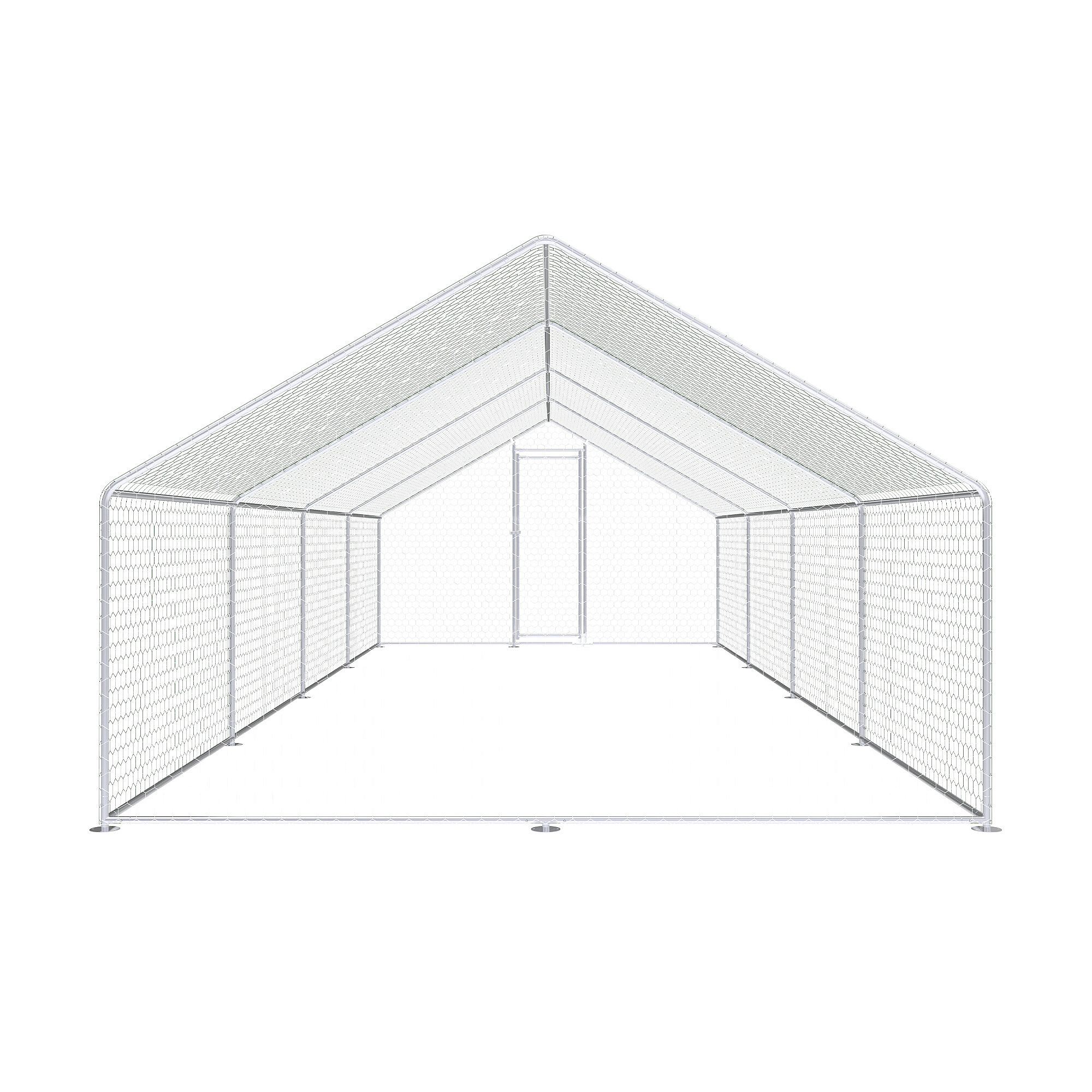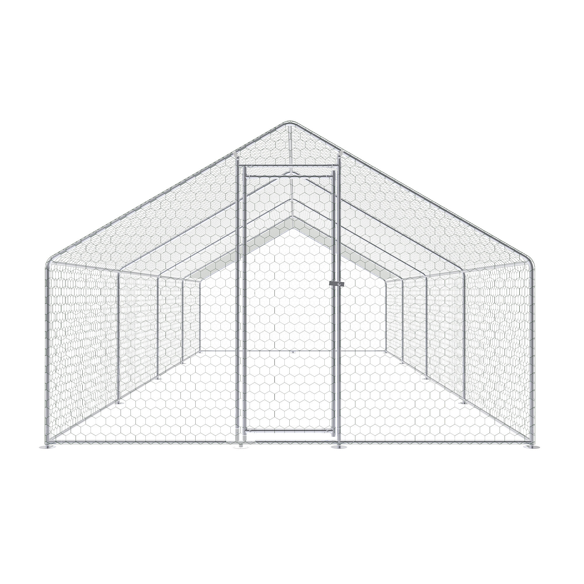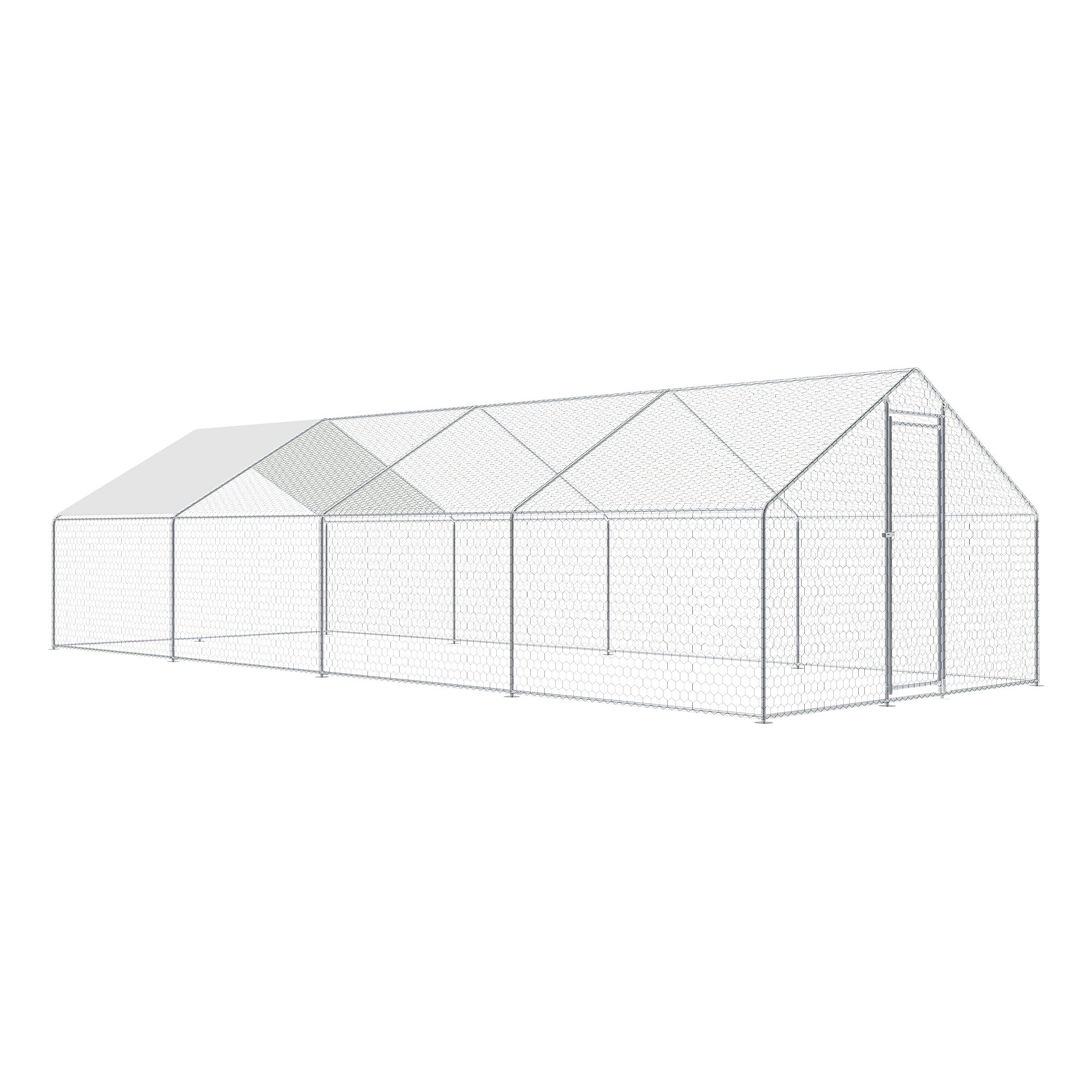Der Auslauf für Geflügel besteht aus einer stabilen Konstruktion aus verzinktem Stahl, die korrosionsbeständig und für den langfristigen Außeneinsatz geeignet ist. Dank dessen behält die Konstruktion ihre Funktionalität auch bei regelmäßiger Witterungseinwirkung bei. Das gesamte Gehege ist mit einem verzinkten Drahtgeflecht ausgestattet, das als Schutznetz für Hühner, Enten und andere Kleintiere dient und gleichzeitig hilft, die Tiere vor Raubtieren zu schützen.