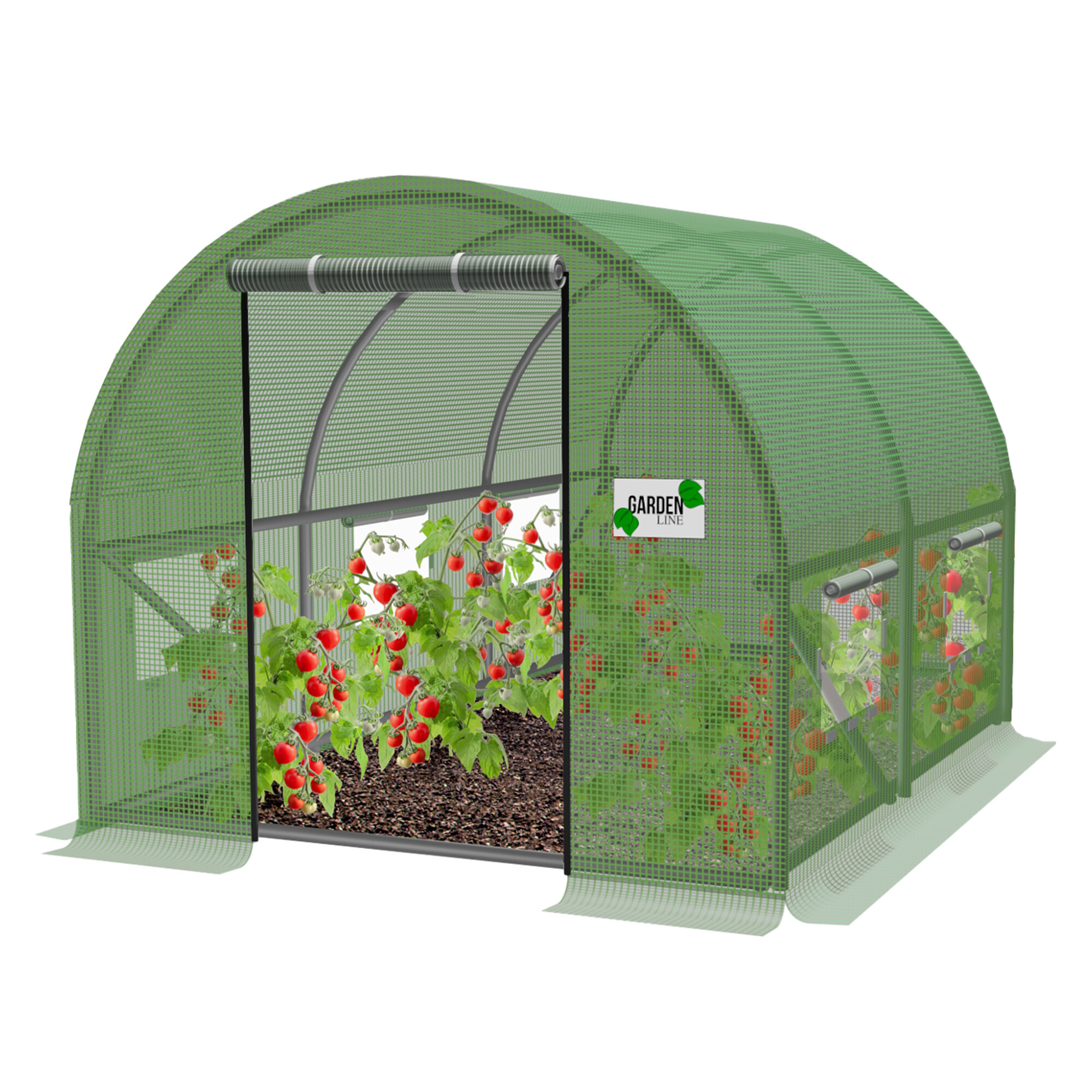 Die optimale Höhe von 200 cm ermöglicht es, sich frei zu bewegen und im Folientunnel zu arbeiten.