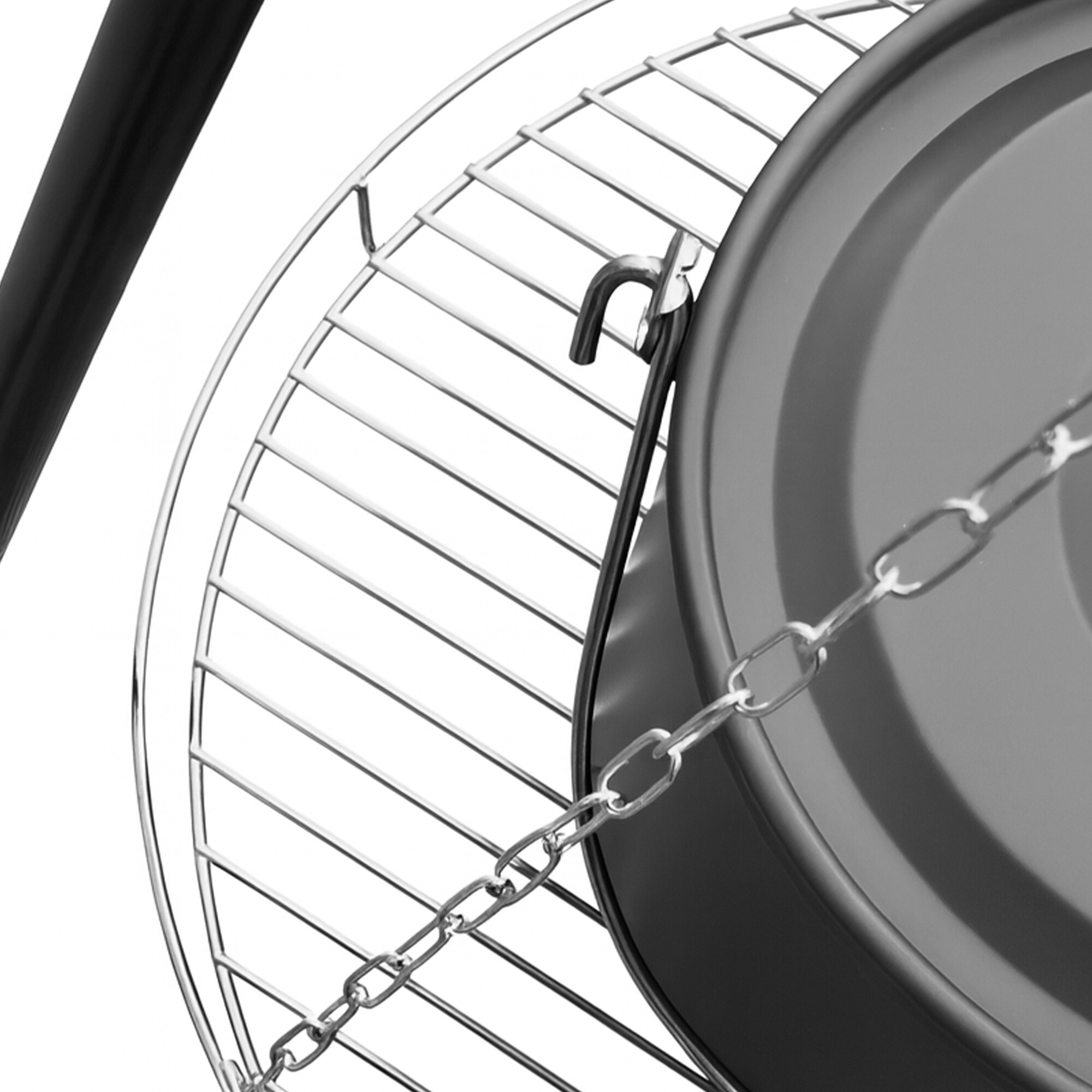 Der Grill ist aus hochwertigem Stahl mit Oberflächenbehandlungen gegen Korrosion gefertigt. Das stabile Dreibein gewährleistet eine sichere Nutzung, während der ausreichend große Rost von 48 cm und die Feuerstelle von 51 cm Platz für ein komfortables Grillen mit Familie und Freunden bieten.