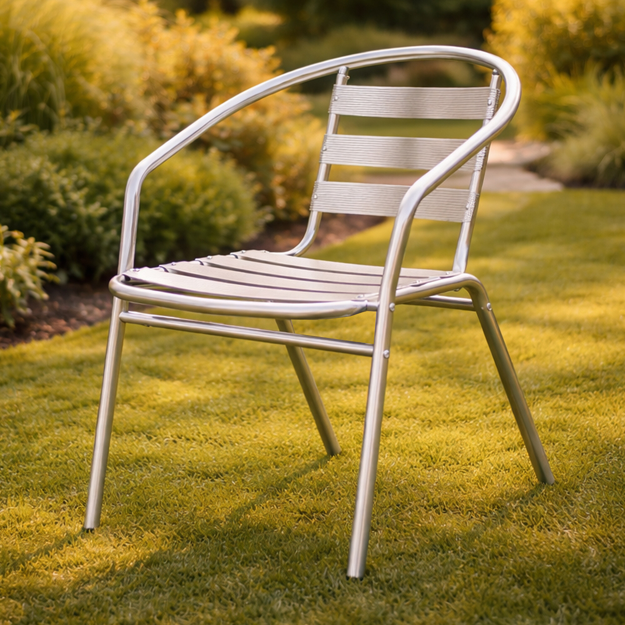 Gartenstuhl mit einer Vollaluminiumkonstruktion, im modernen Design, geeignet für Gärten, Terrassen, Veranden, Balkone oder Gartenrestaurants.