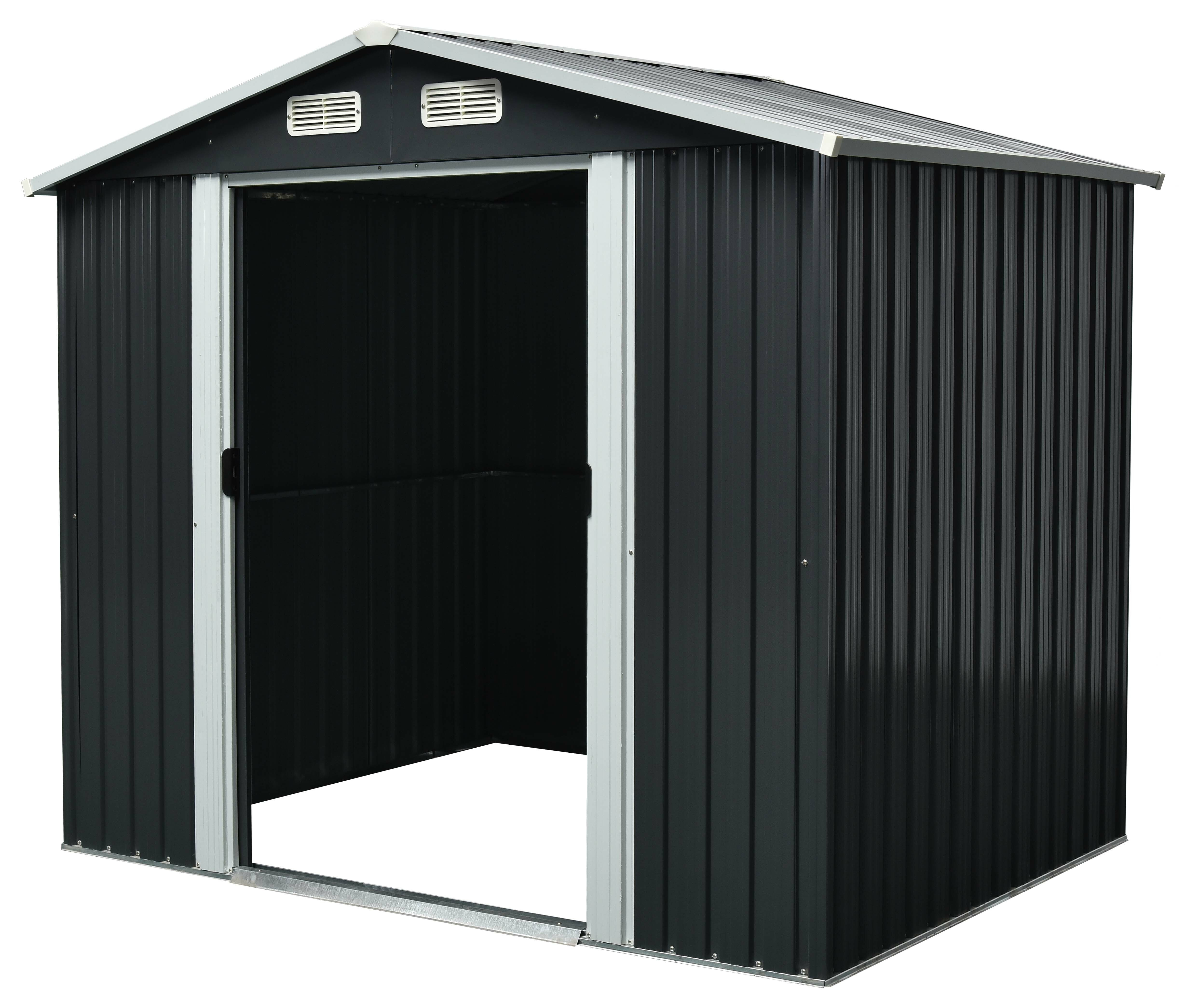 Das Gartenhaus hat doppelte Schiebetüren mit einer Breite von 105 cm und einer Höhe von 170 cm. Es sind auch Türgriffe vorhanden, mit denen das Haus mit einem normalen Vorhängeschloss verschlossen werden kann.