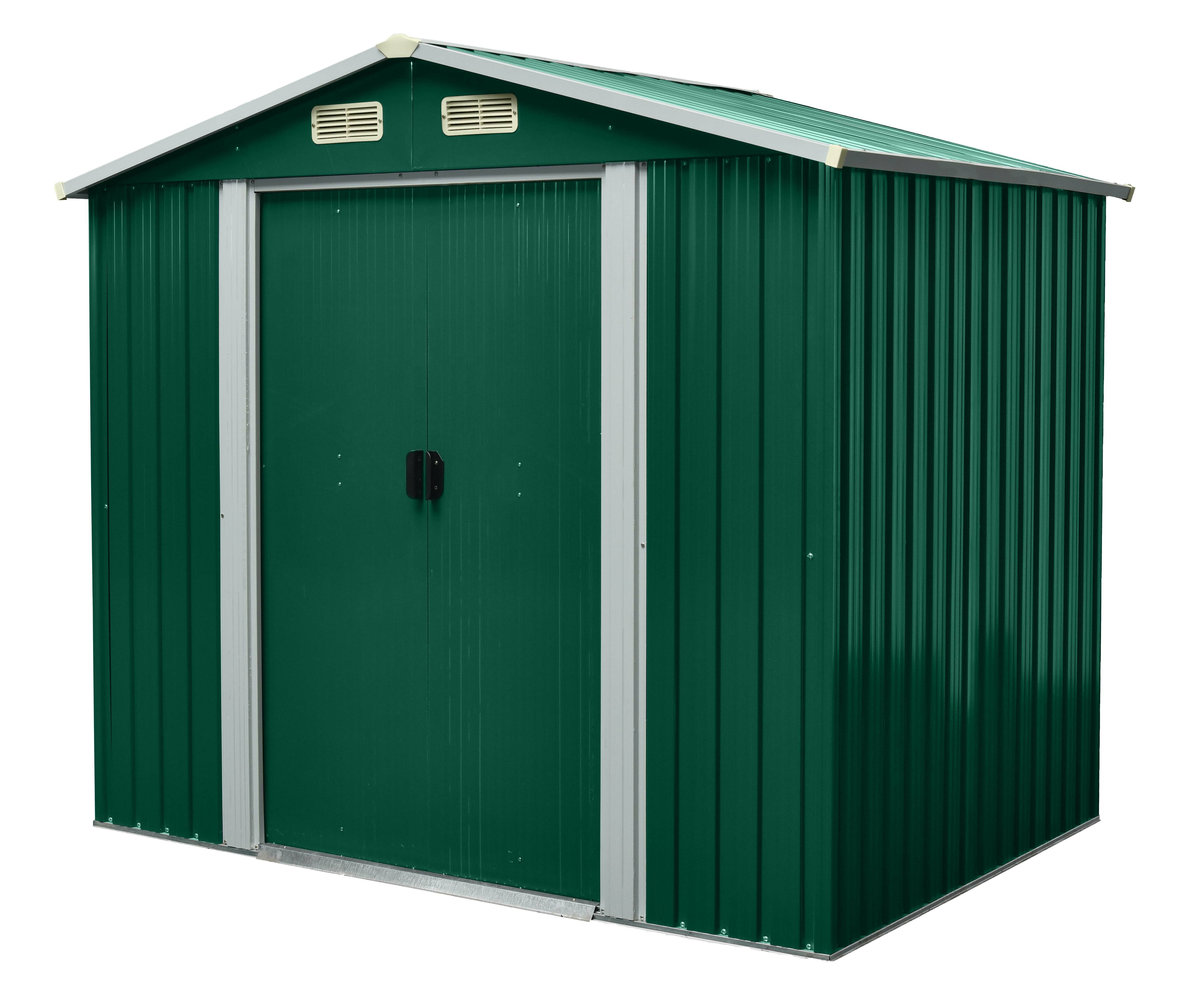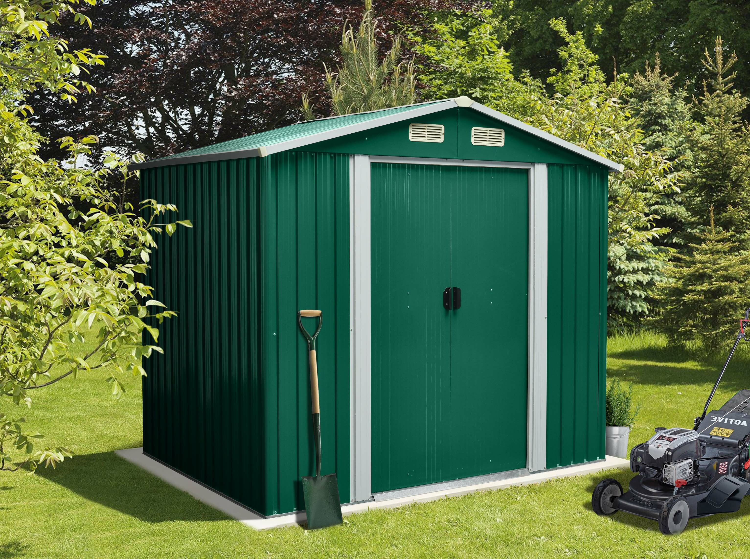 Aga Gartenhaus MR4052 – verzinkter Stahl, 4,1 m² – 236x206x174 cm - Doppelschiebetüren – Grün – robust & witterungsbeständig – für Gartengeräte