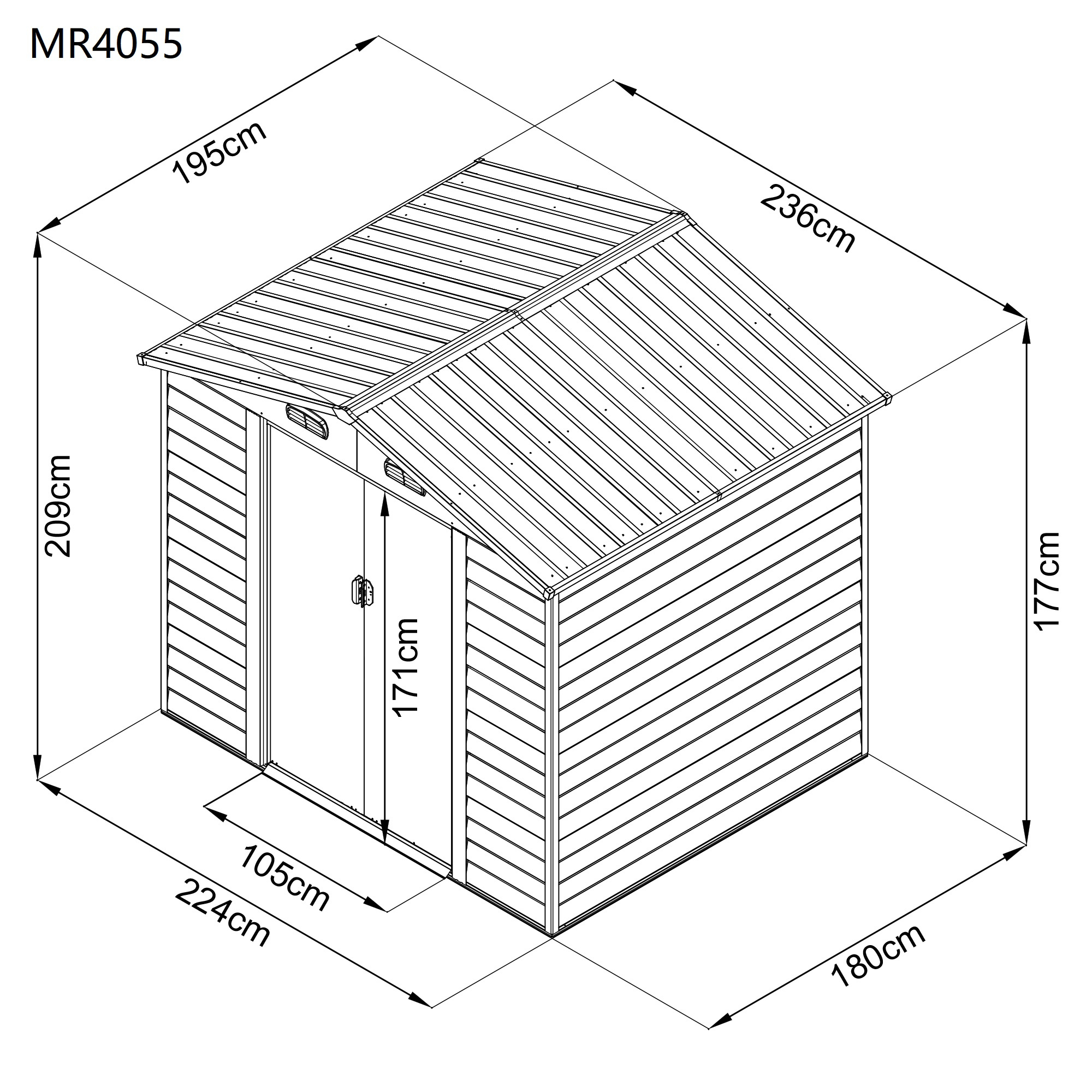 Das wird durch die Befestigung eines Stahlblechs an einem festen, verzinkten Rahmen durchgeführt.Für maximale Stabilität ist es ratsam, das Gartenhaus auf einer geeigneten befestigten Fläche zu befestigen.