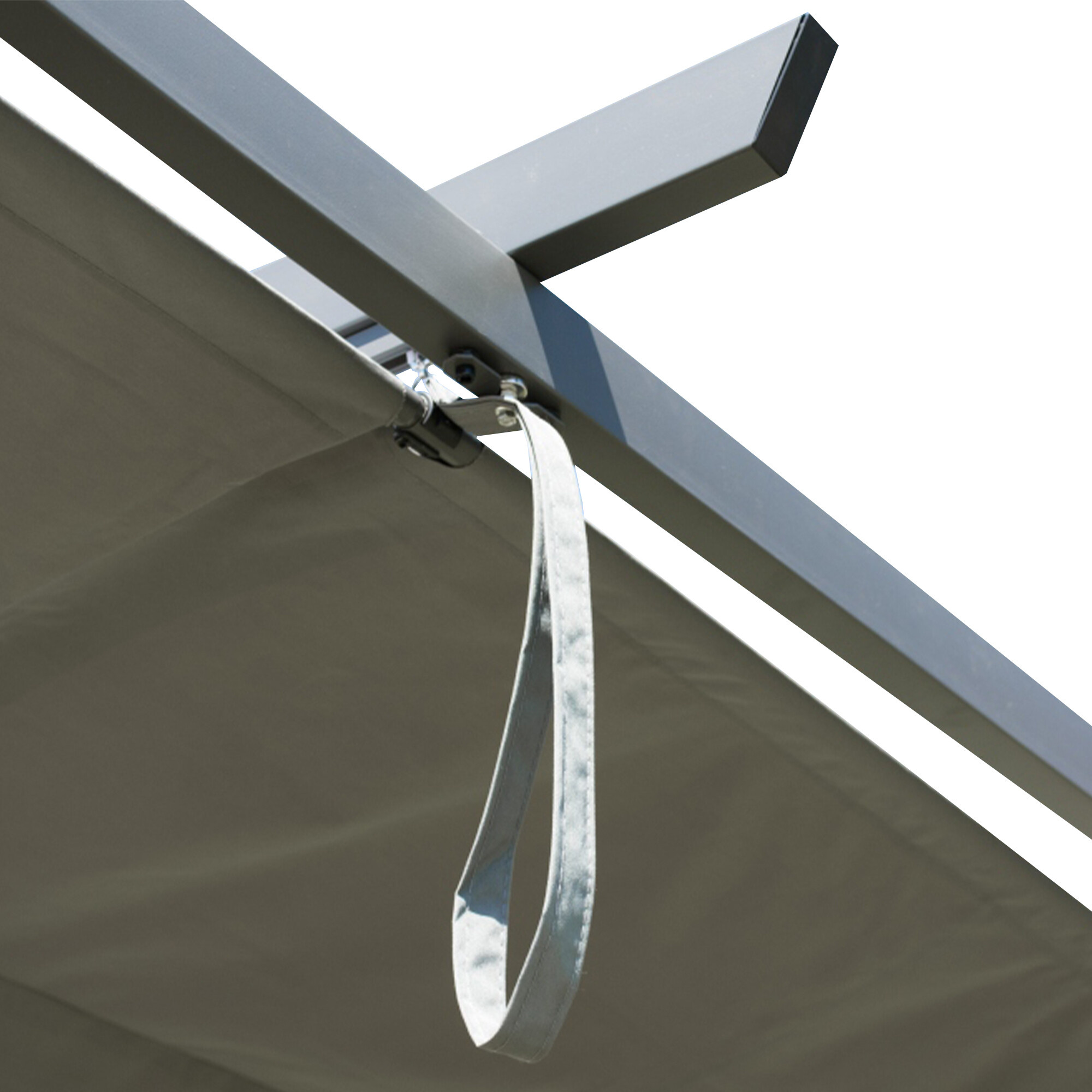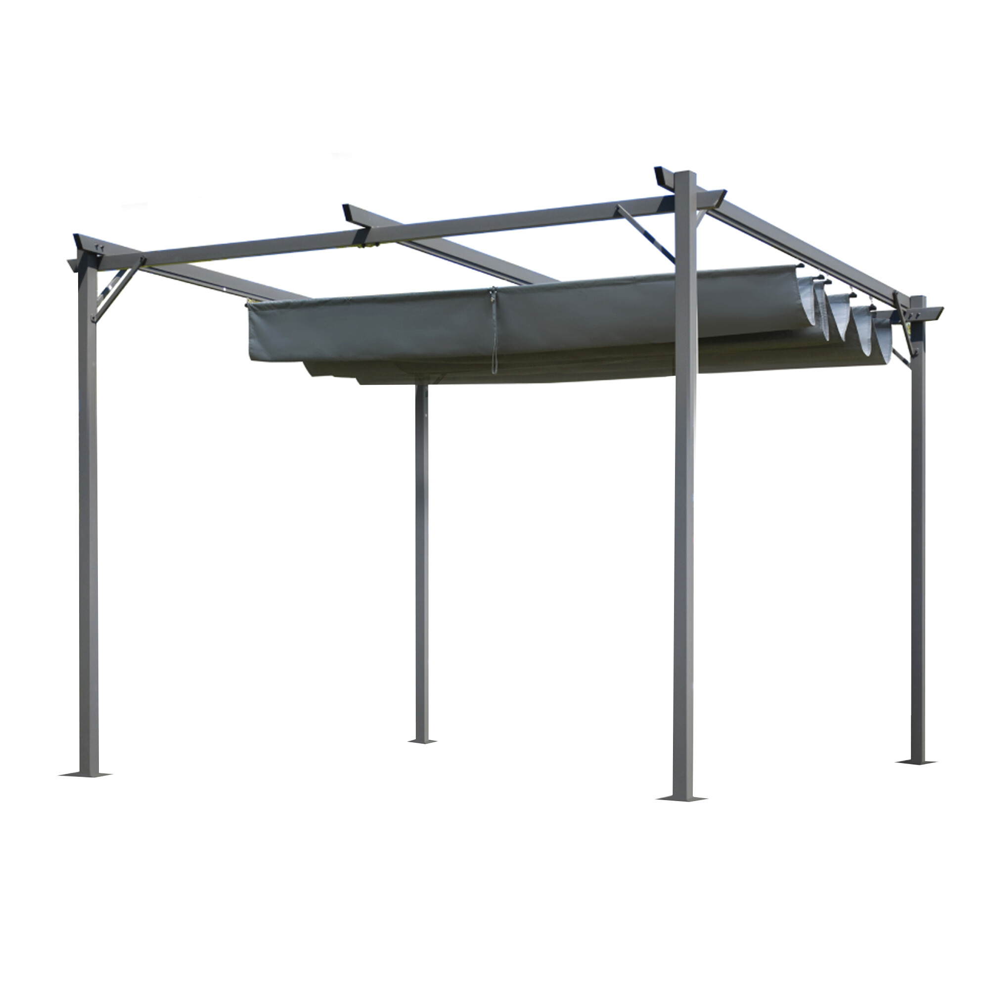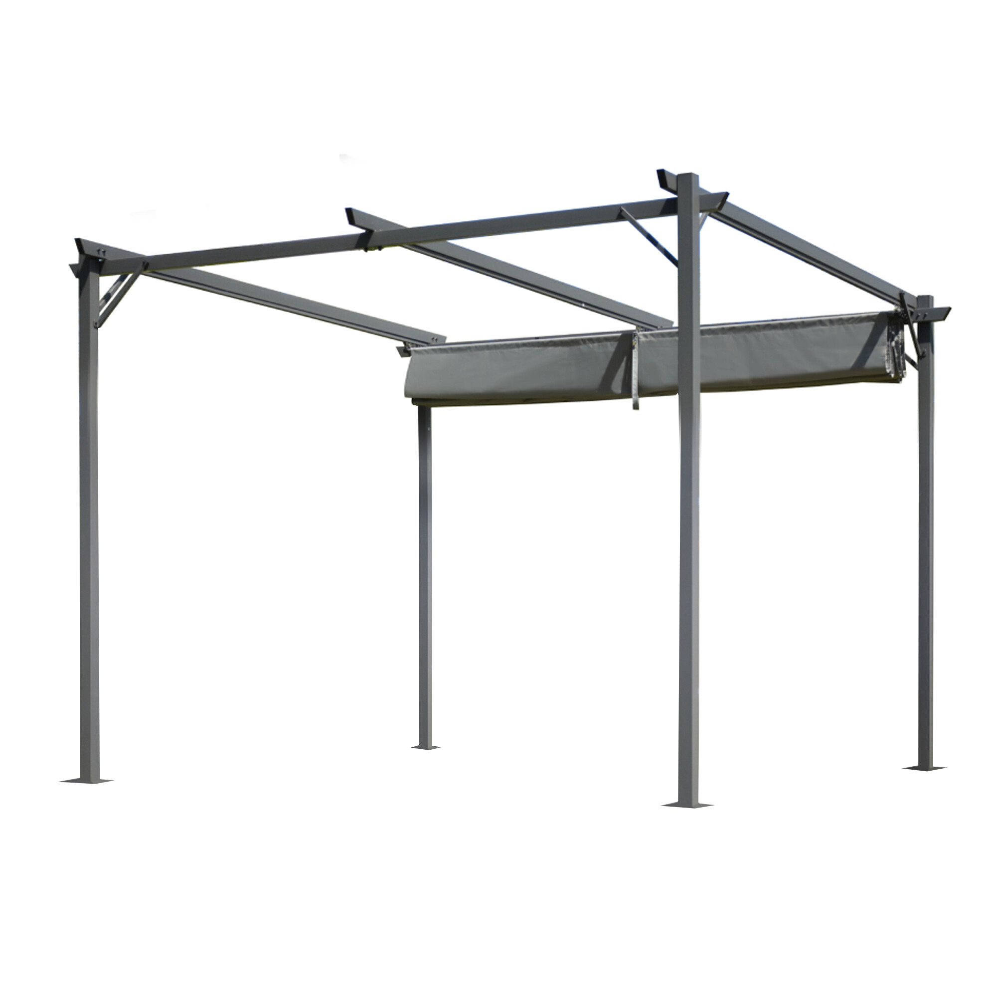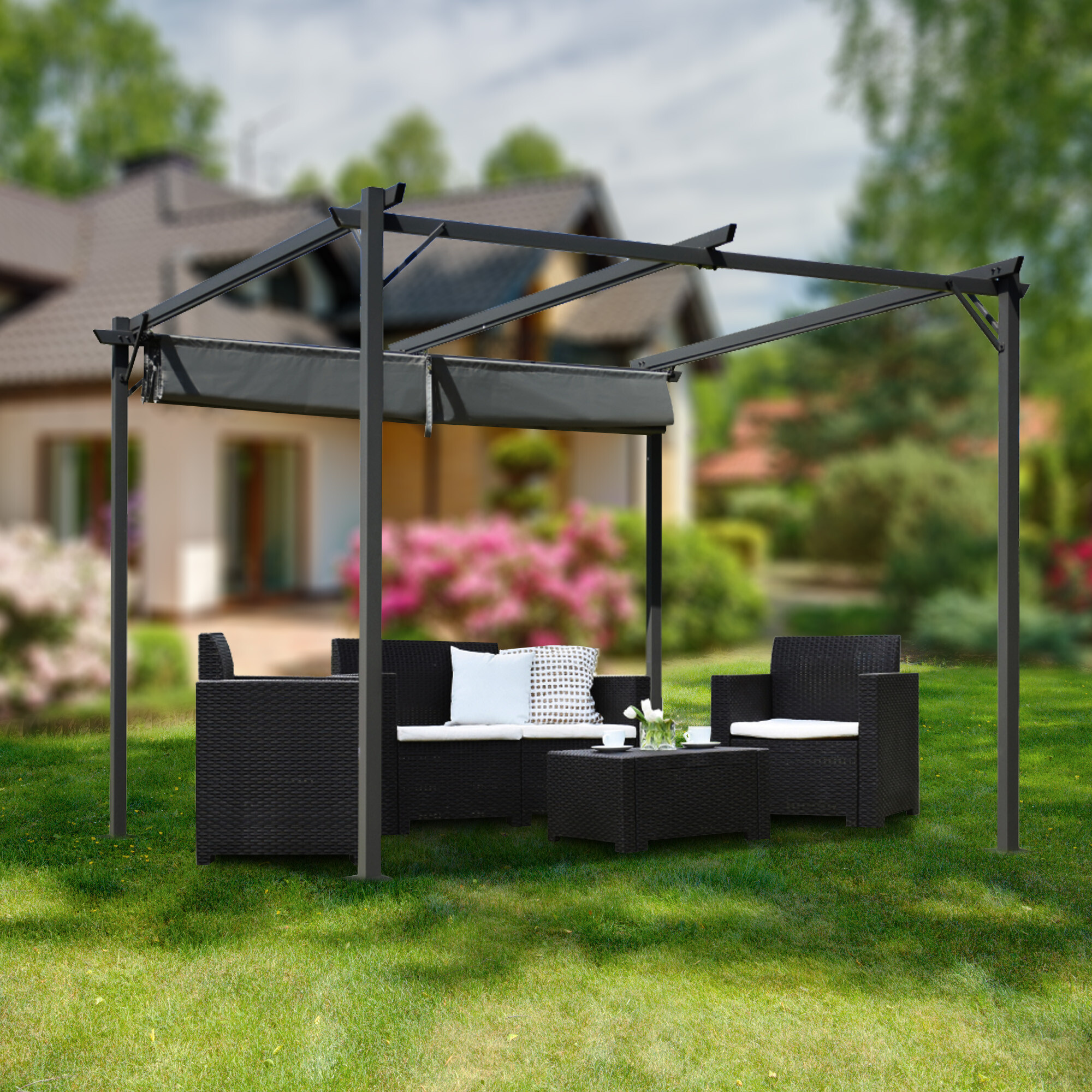 Seine Hauptfunktion ist der Schutz vor direkter Sonneneinstrahlung oder leichtem Regen.Der Rahmen des Gartenpavillons besteht aus korrosionsbeständigen Materialien, was seine Langlebigkeit und Widerstandsfähigkeit gegenüber Witterungseinflüssen garantiert. Das Dachverdeck besteht aus grobem, wasserdichtem Gewebe, das zuverlässigen Schutz vor Regen bietet.