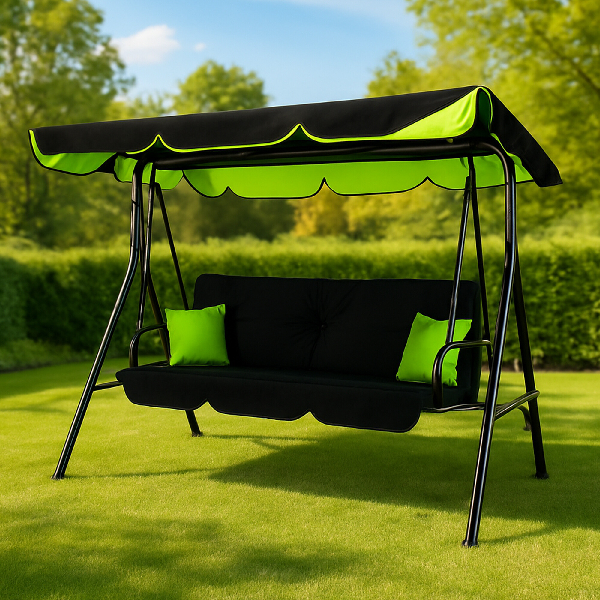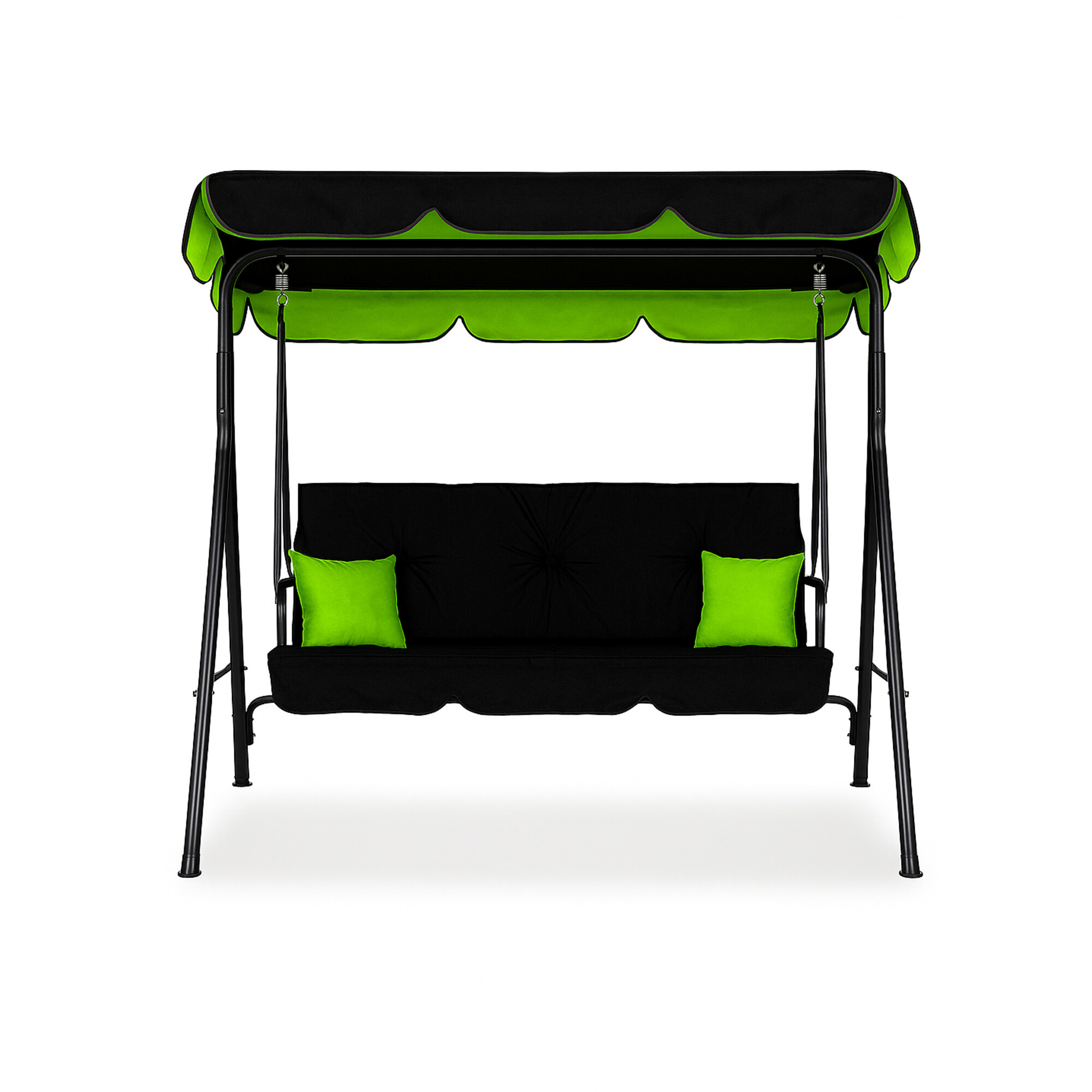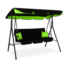 Aga MAJKA Hollywoodschaukel Schwarz, Gartenschaukel 200 kg belastbar, 3-Sitzer mit Dach & Sitzauflage, Hängeschaukel, Schaukelbank für Garten - Terrasse
