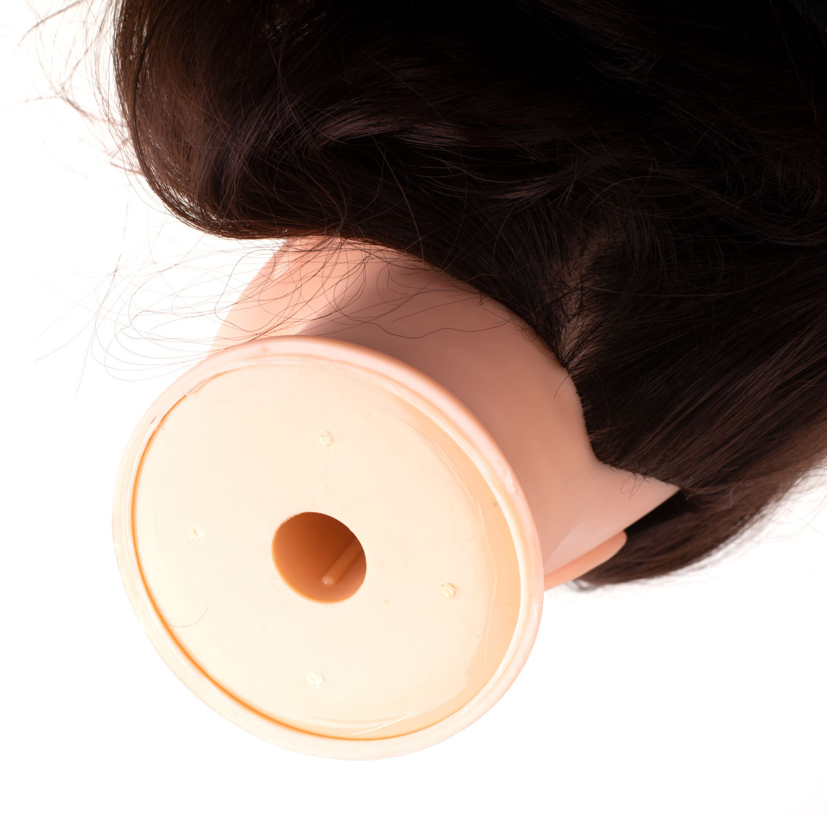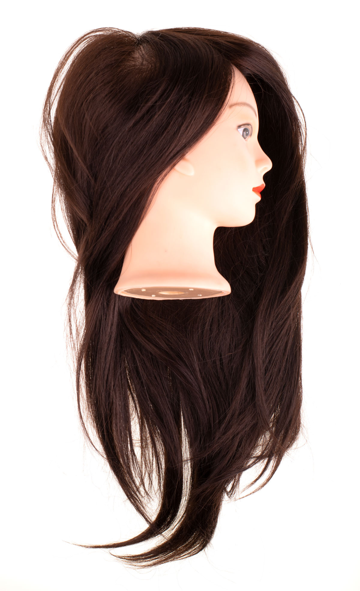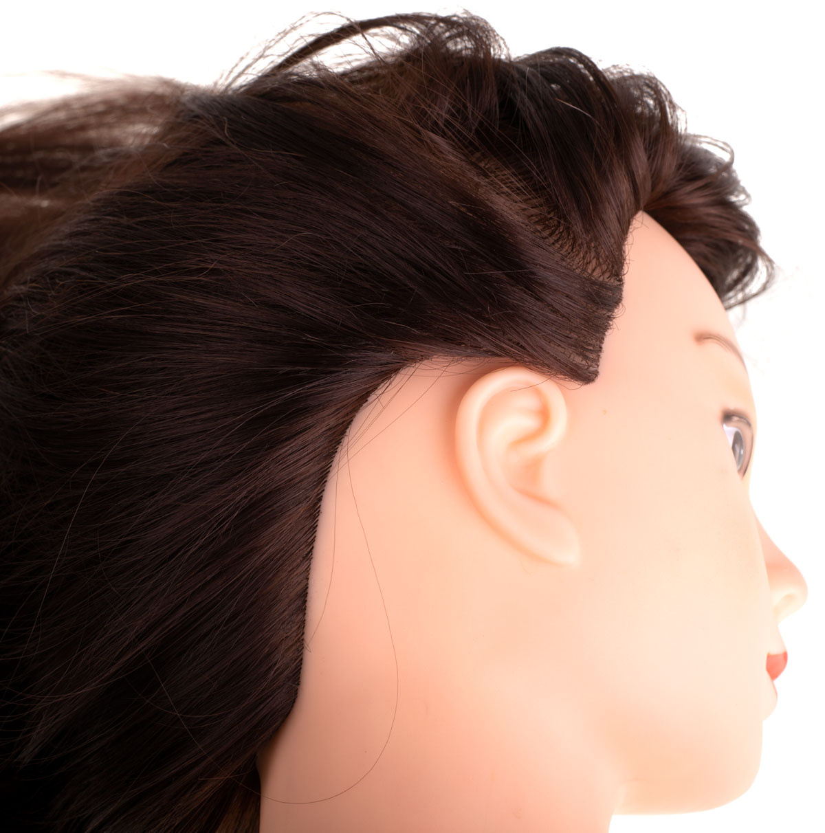 Friseurkopf mit Haaren zum Üben von verschiedenen Frisurentypen.