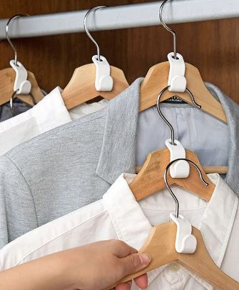 Praktische Haken für Kleiderbügel, die Ihnen helfen, Ordnung in Ihrem Kleiderschrank zu halten.