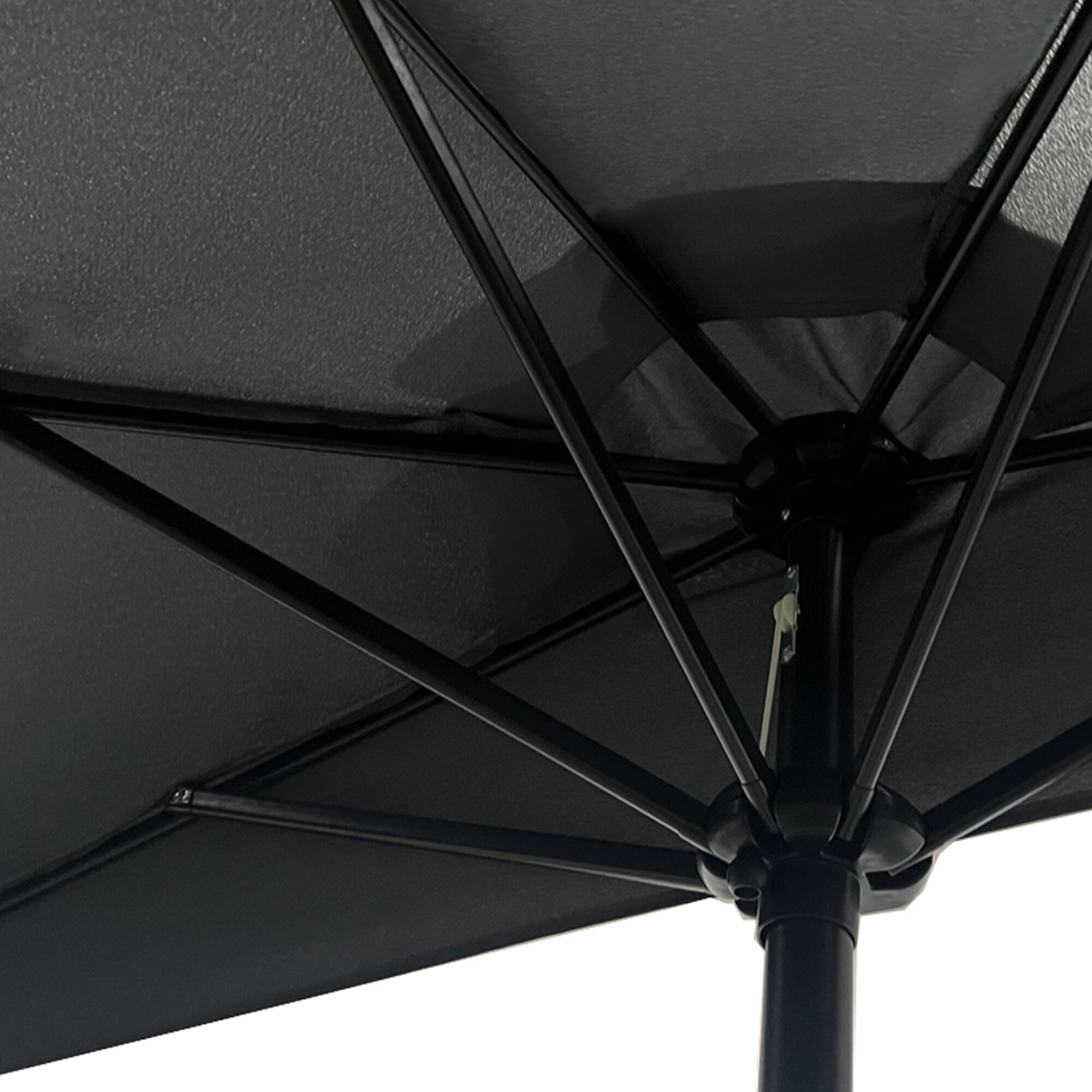 Halbrunder Gartensonnenschirm mit stabiler Konstruktion und hochwertigem Bezug, hergestellt aus strapazierfähigem Polyester-Material.