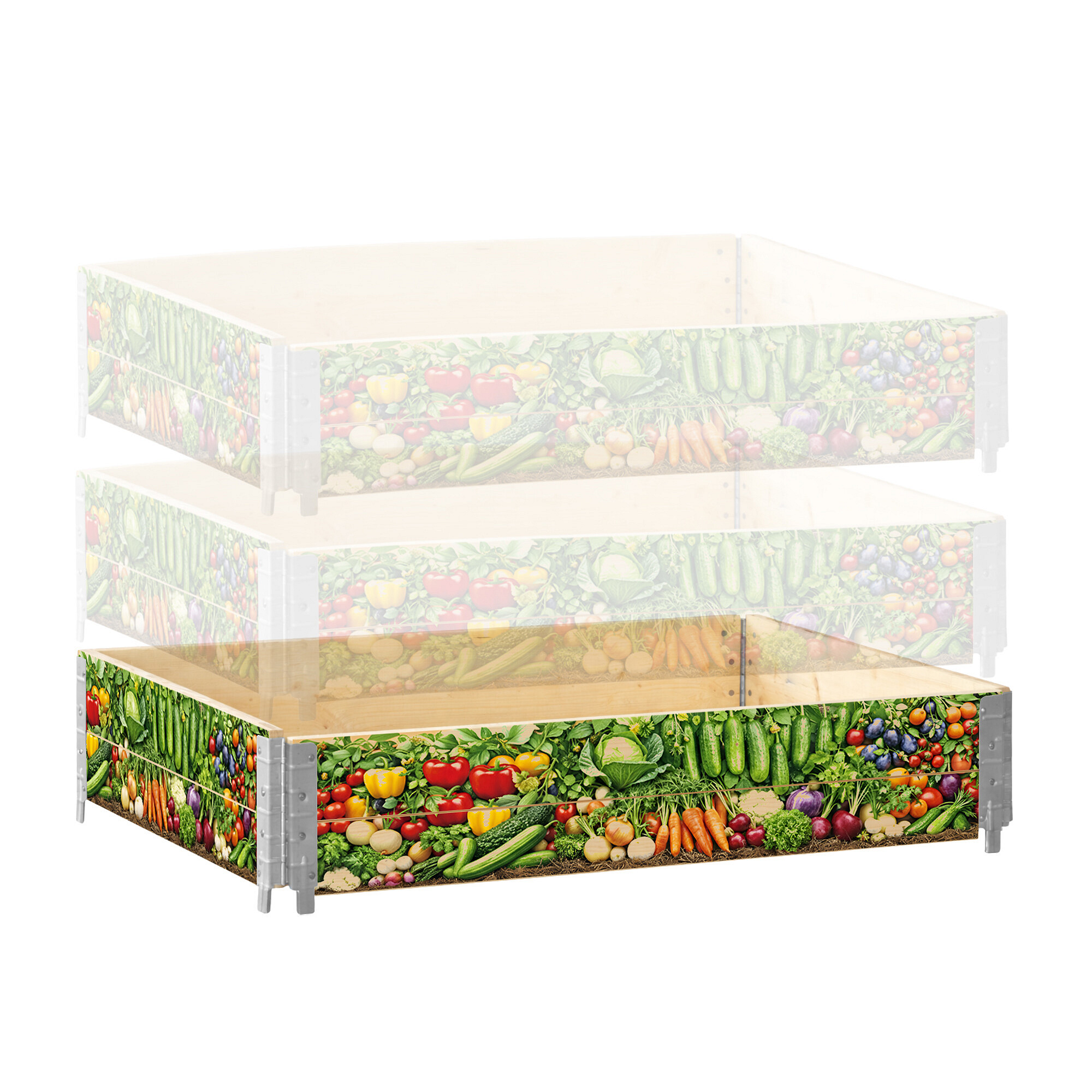 Ein weiterer Vorteil ist die Möglichkeit, das Beet in die Höhe zu erweitern, indem weitere gleiche Teile hinzugefügt werden. Damit lässt sich ein höheres Hochbeet mit einem tieferen Anbauraum, einem größeren Substratvolumen und besseren Bedingungen für Pflanzen mit einem tieferen Wurzelsystem schaffen.