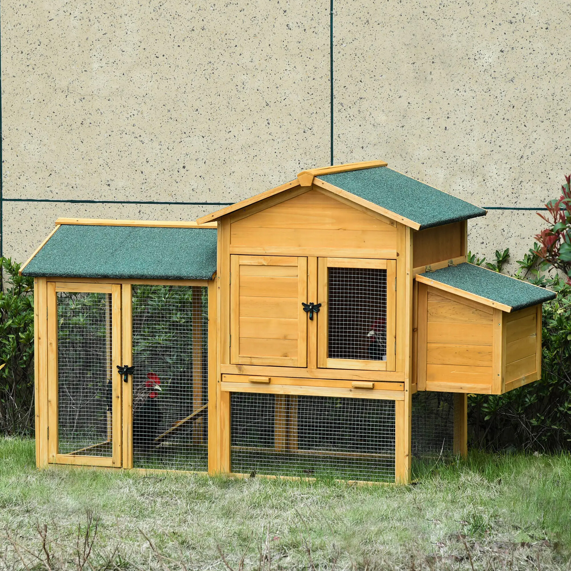 Der ausziehbare Einstreuschublade ist ein großartiger Helfer bei der Sauberkeitspflege, einfach herausziehen, reinigen und wieder einsetzen.Das universelle Design des Hühnerstalls ermöglicht seine Nutzung für verschiedene Tierarten.