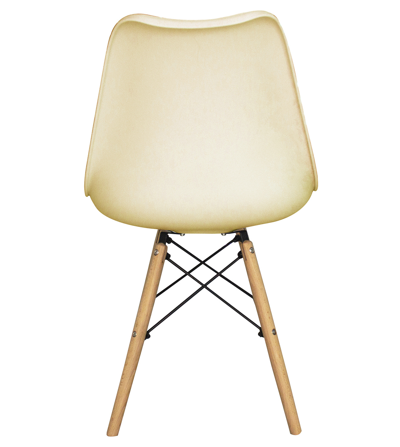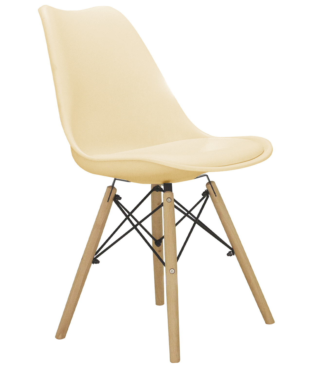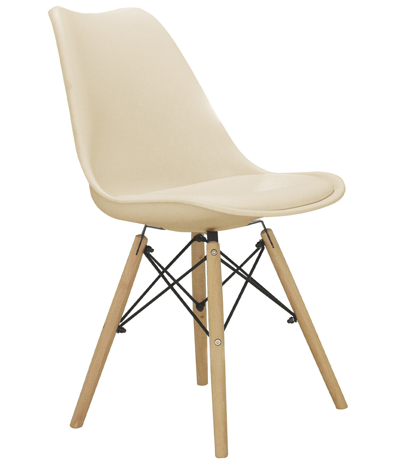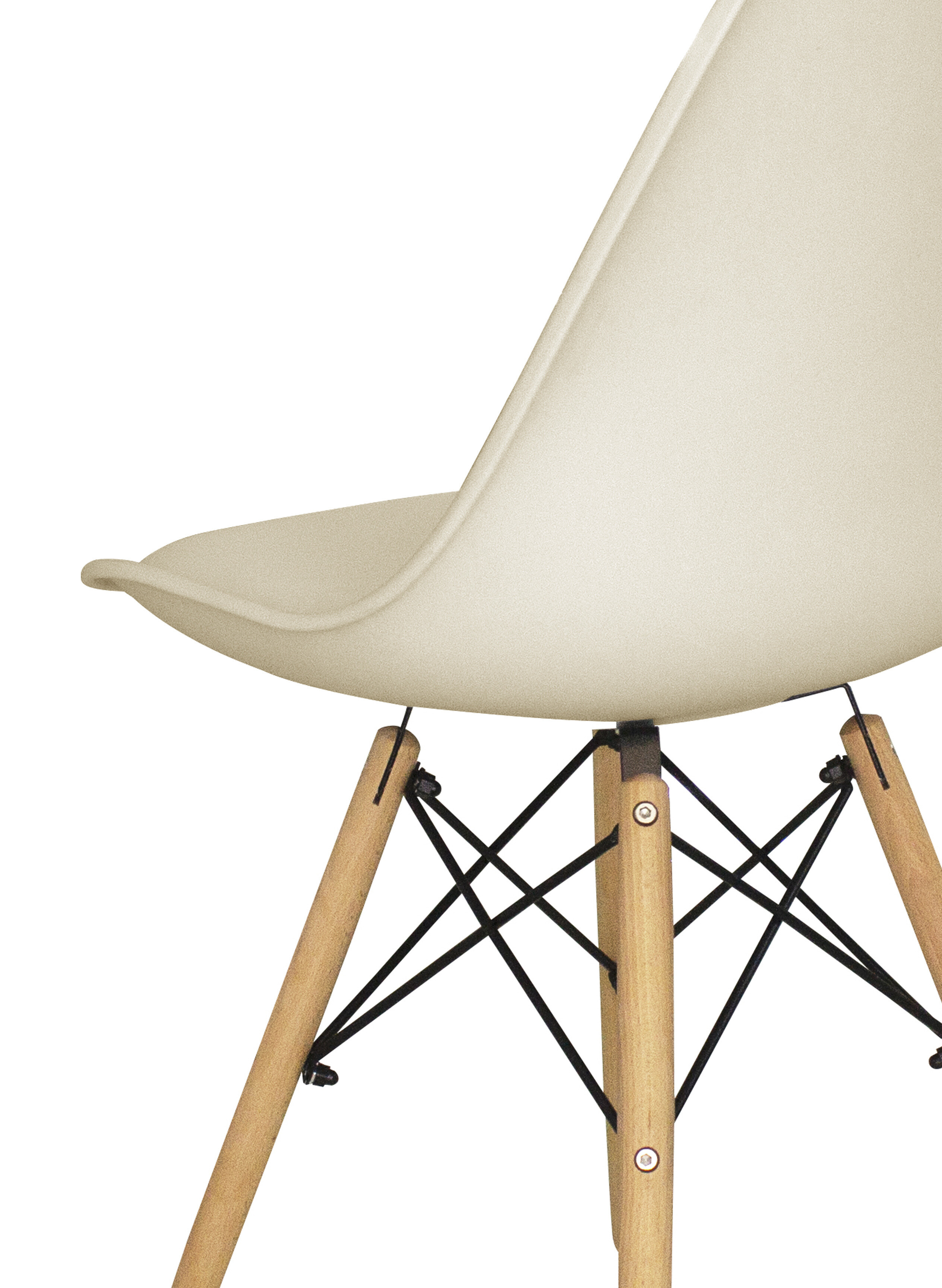 Der Stuhl ist aus hochwertigem und strapazierfähigem Polypropylen mit einem Kissen aus Kunstlederbezug in Kombination mit einem Gestell aus Buchenholz gefertigt.