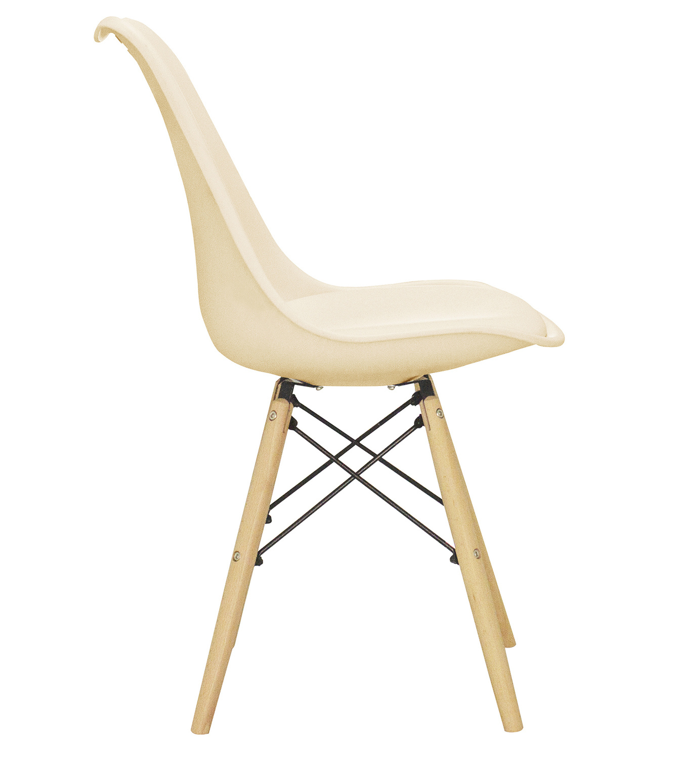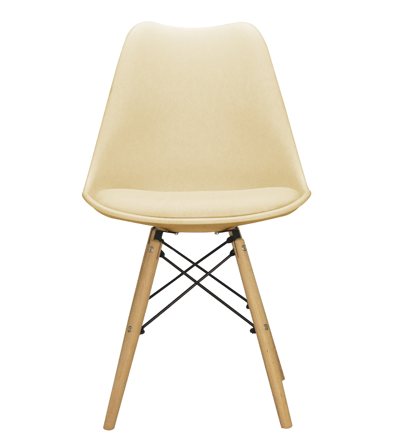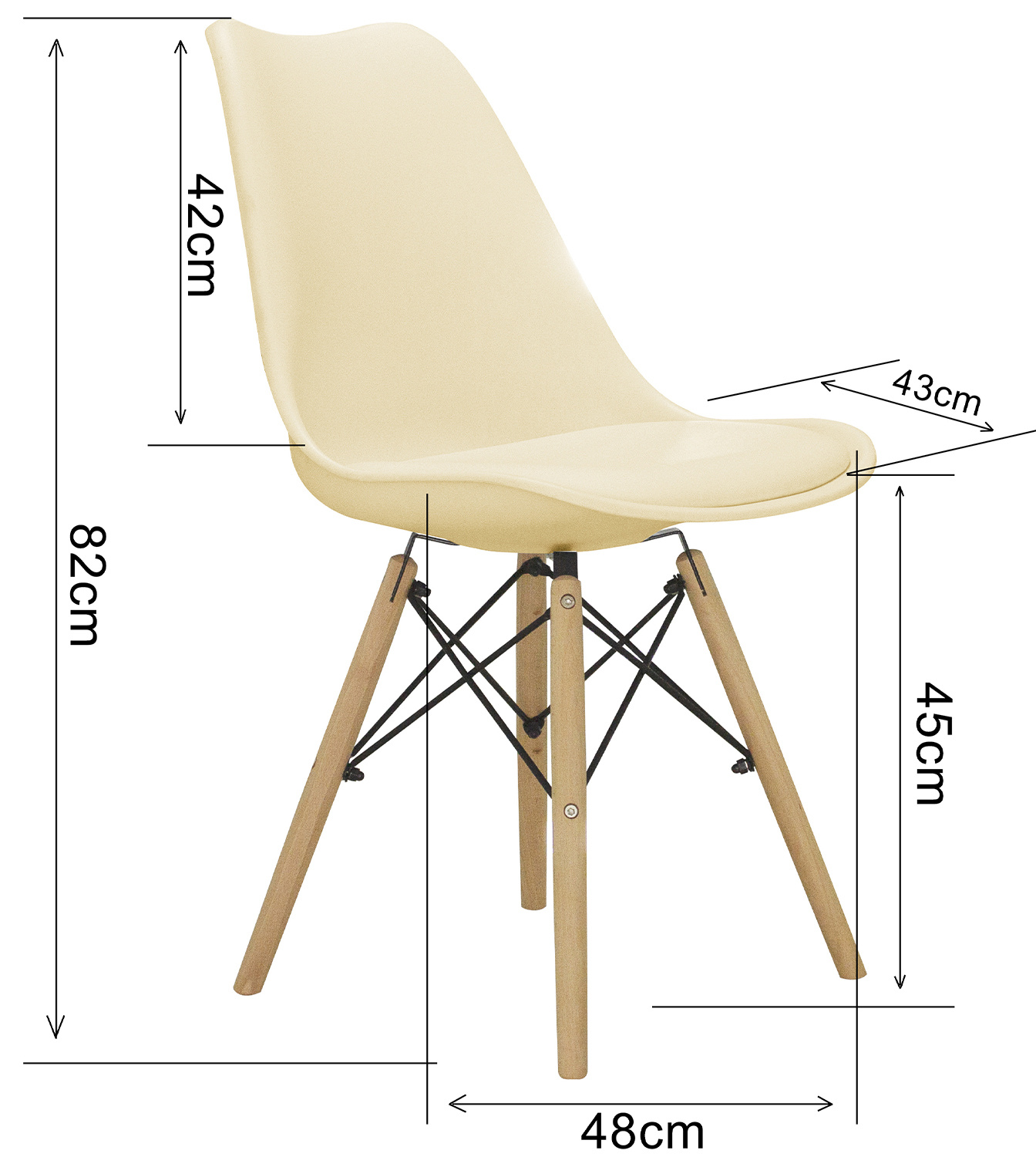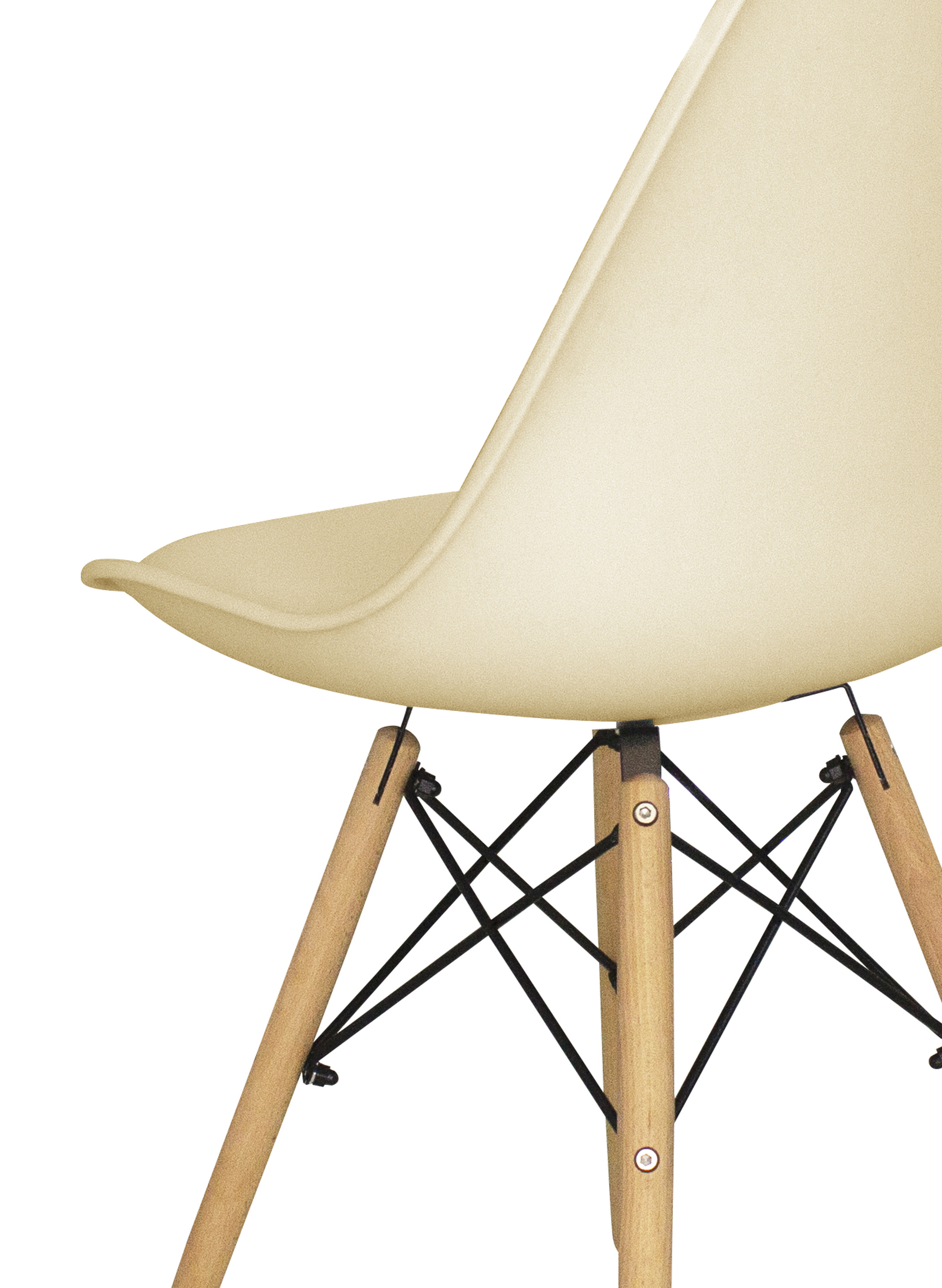 Der Stuhl ist aus hochwertigem und strapazierfähigem Polypropylen mit einem Kissen aus Kunstlederbezug in Kombination mit einem Gestell aus Buchenholz gefertigt.
