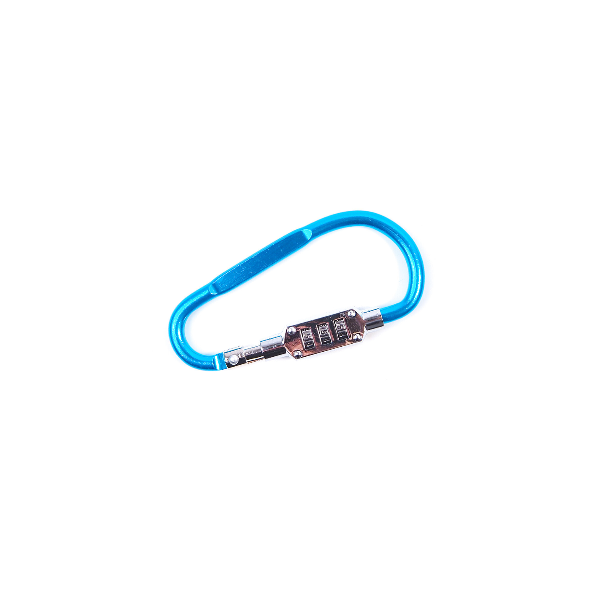 Ein Kodelschloss in Form eines Karabiners erhöht die Sicherheit Ihres Reisegepäcks, Ihrer Laptoptasche und kann z.B. verwendet werden, um zu verschließen. und einen Helm fürs Fahrrad. Nützlicher Helfer beim Reisen.