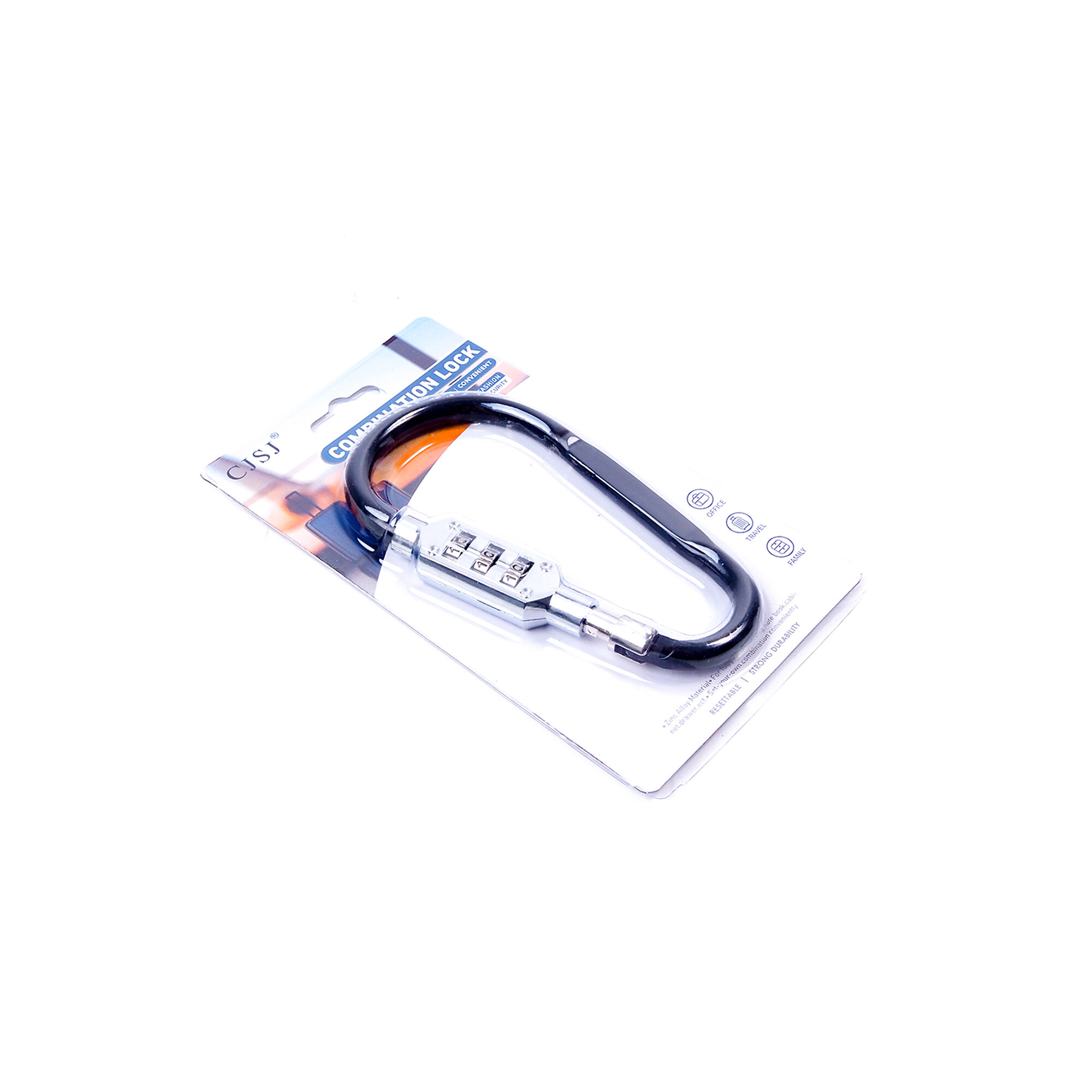 Ein Kodelschloss in Form eines Karabiners erhöht die Sicherheit Ihres Reisegepäcks, Ihrer Laptoptasche und kann z.B. verwendet werden, um zu verschließen. und einen Helm fürs Fahrrad. Nützlicher Helfer beim Reisen.