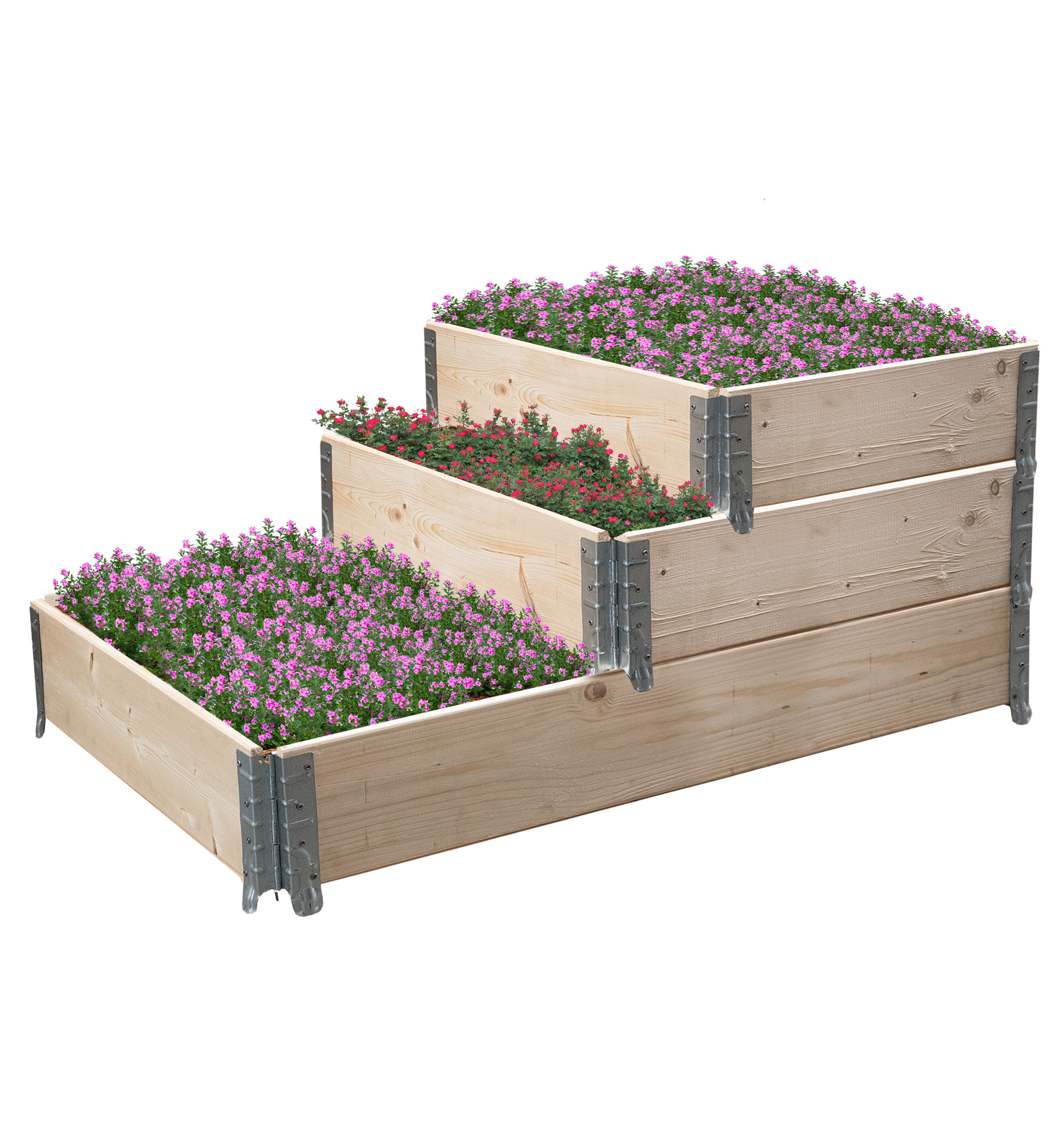 Wenn Sie ein höheres Beet wünschen, können Sie die Rahmen einfach übereinander stapeln, und wenn die Saison vorbei ist, klappen Sie die Rahmen einfach zusammen, um Platz zu sparen oder den Transport zu erleichtern.