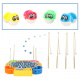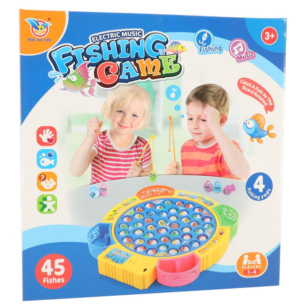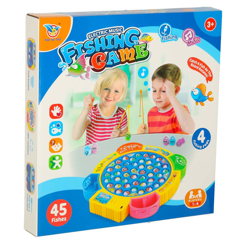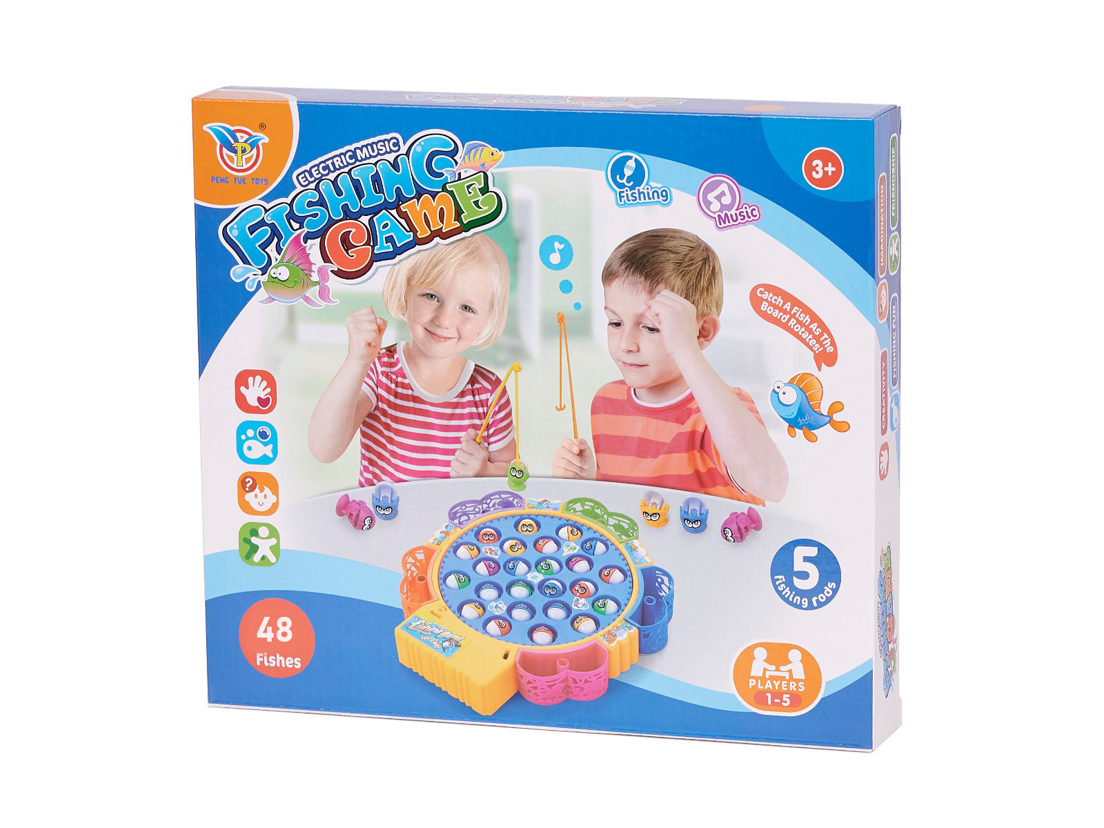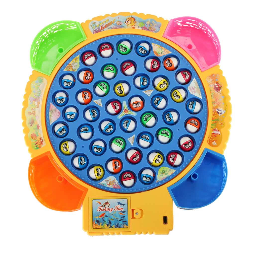 - Der Gewinner ist derjenige, der die meisten Fische an der schwimmenden Rute fängt, die sich um die Plattform dreht.