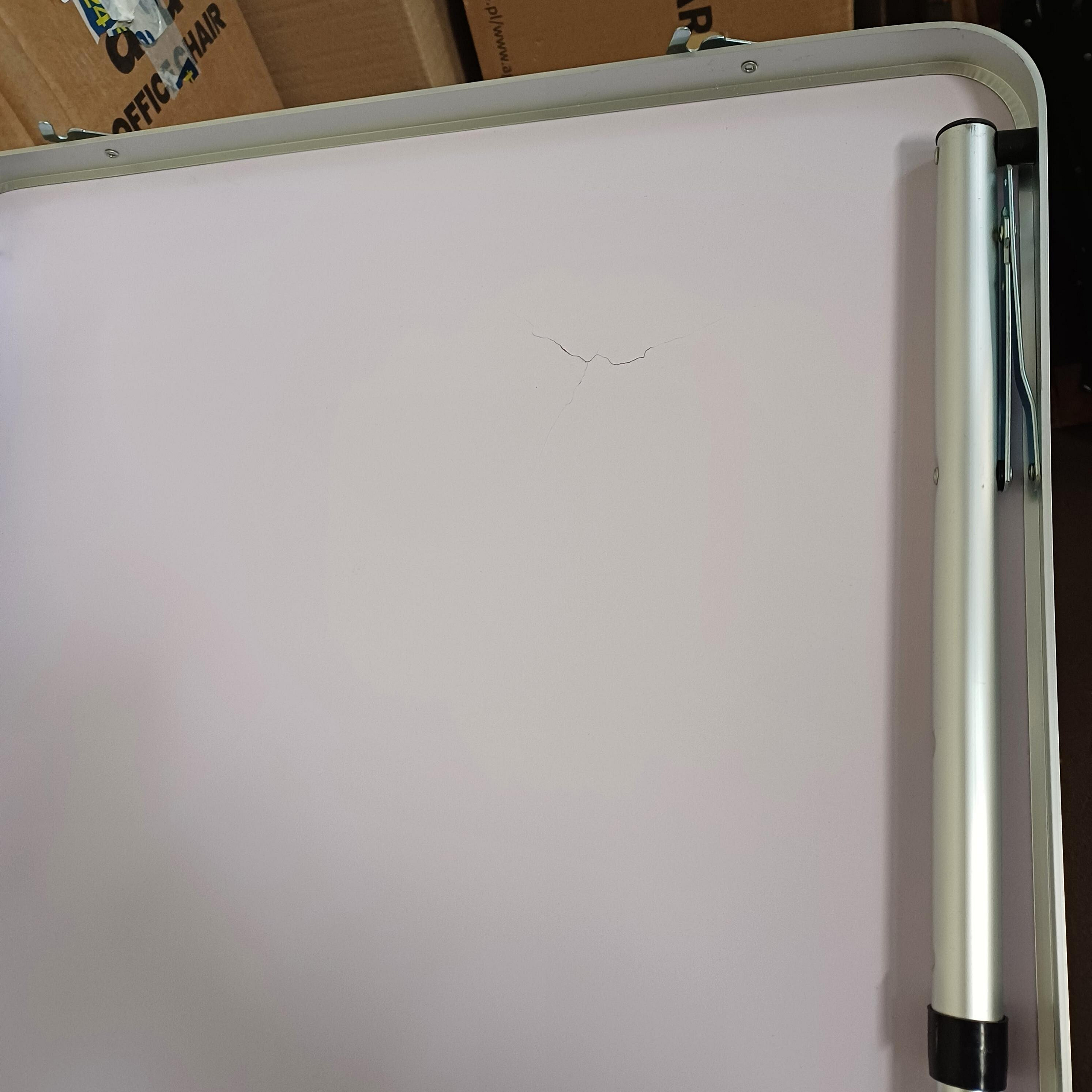 Der Tisch hat eine rissige Platte.