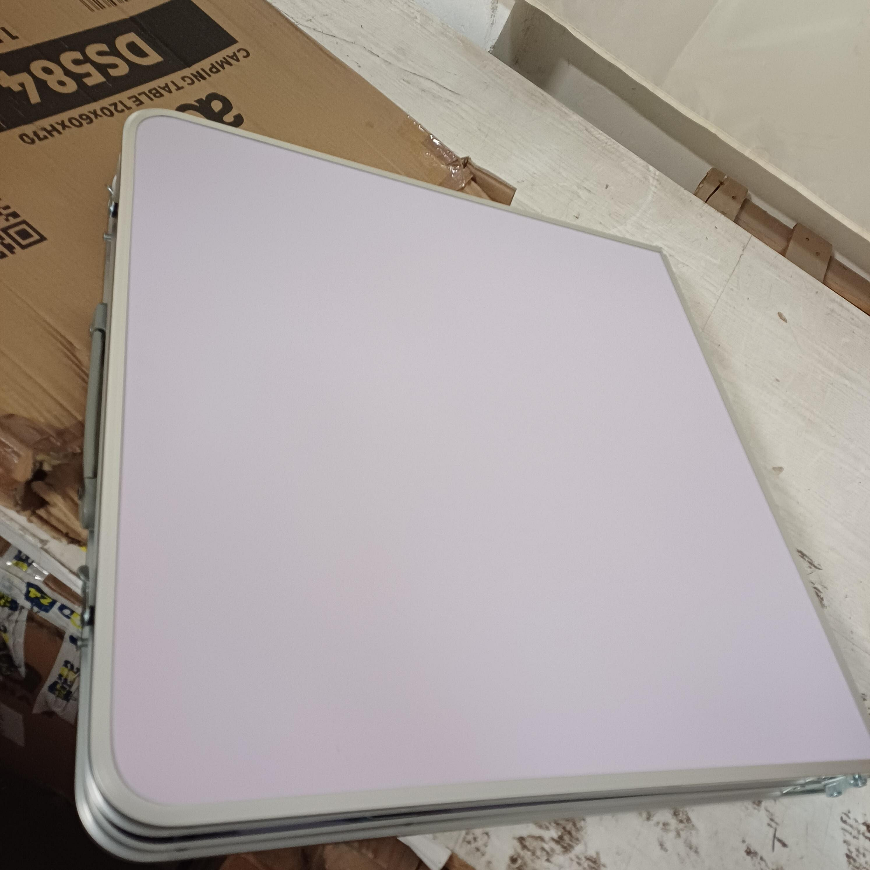 - Im zusammengeklappten Zustand ist der Tisch leicht als flache Platte mit Griff zu transportieren