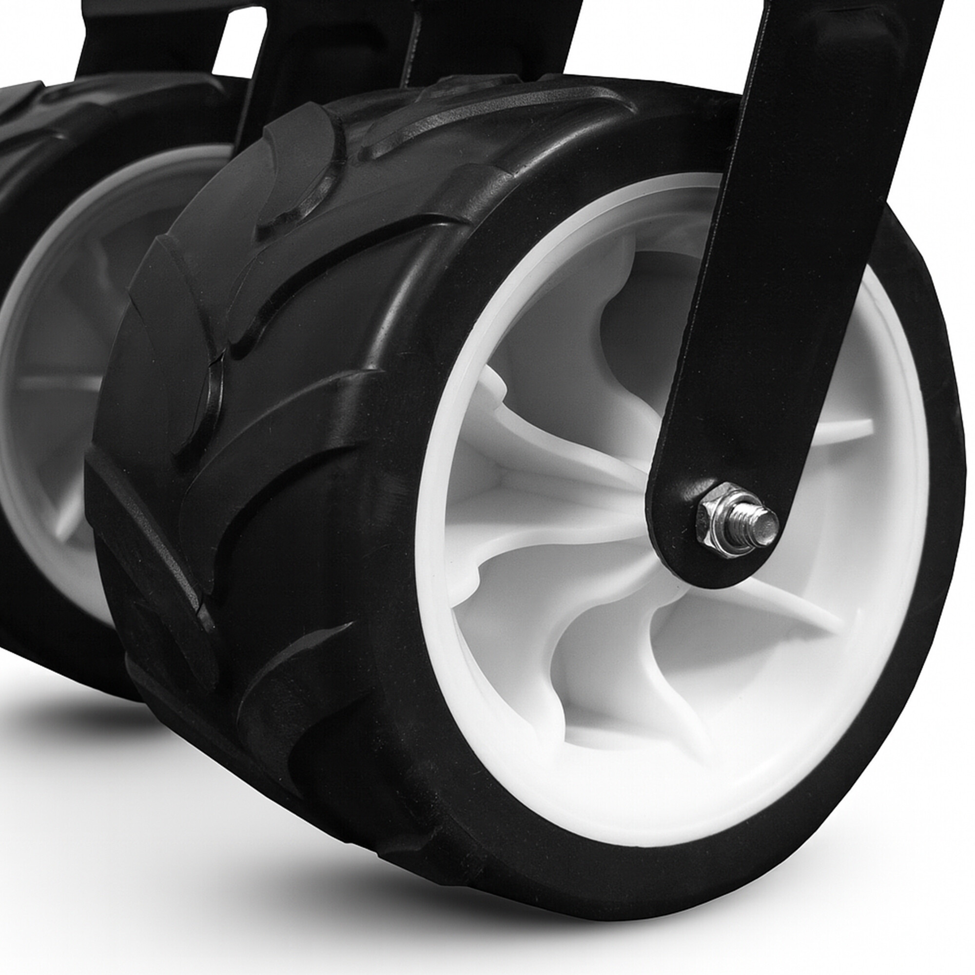 Dank des großen Laderaums passt alles Notwendige in den Wagen und Sie transportieren es auf robusten Kunststoffrädern.