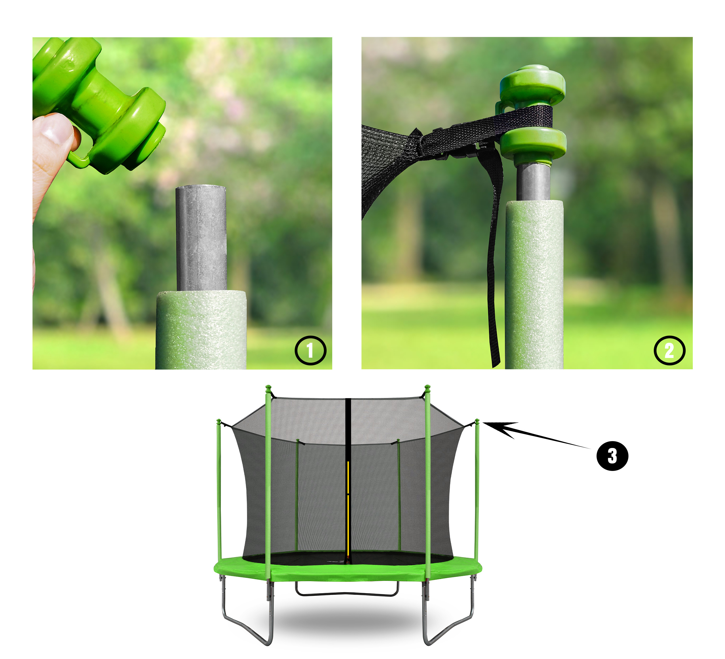 - Verwendung: Universelle Abdeckung für alle Größen von Standstangen für Trampoline mit Innennetz