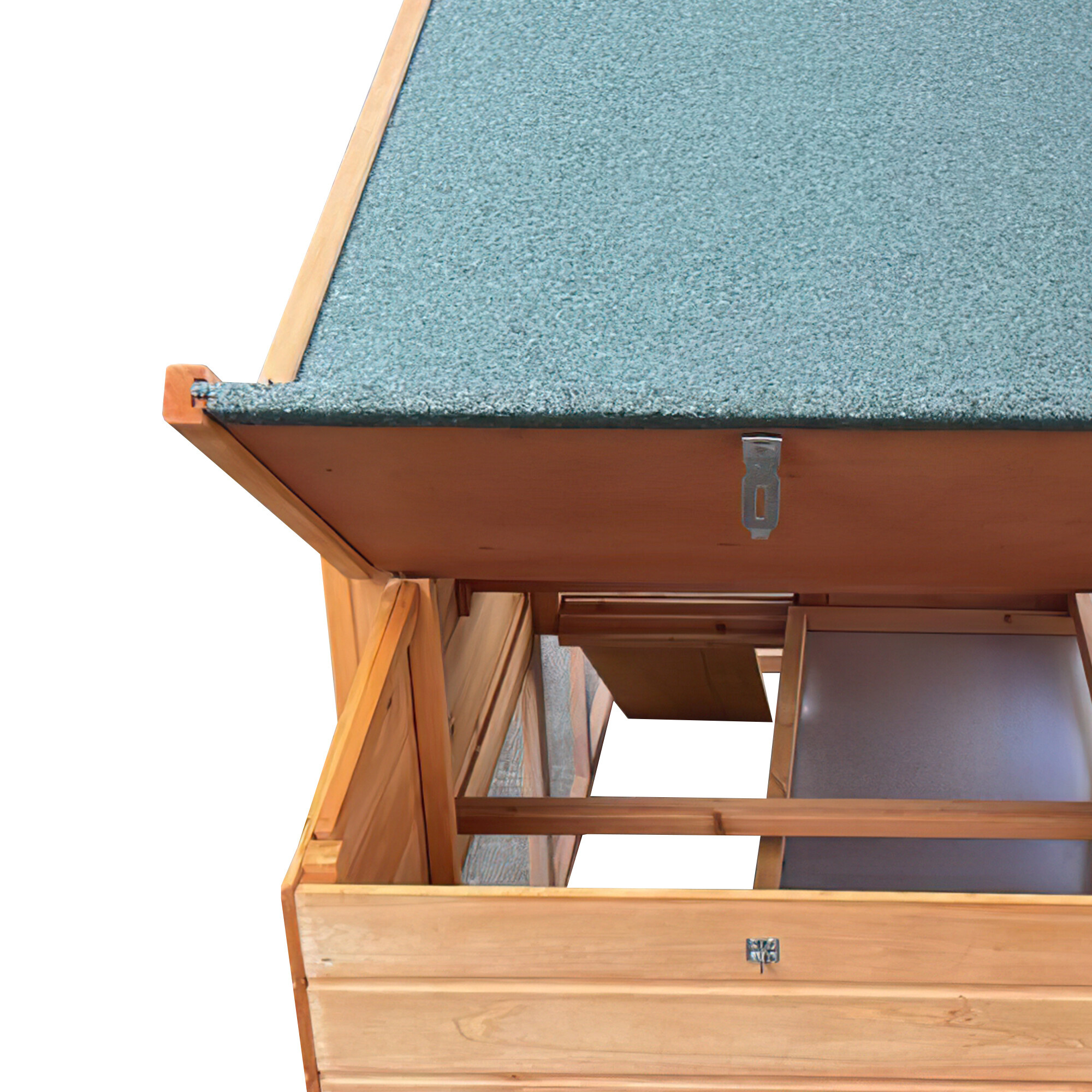 Kein kompliziertes Bücken und Strecken mehr, einfach das Dach anheben und die Eier sind in Reichweite.Der Hühnerstall ist mit einer seitlichen Nistbox ausgestattet, die den Hühnern einen ruhigen und sicheren Ort zum Eierlegen bietet.