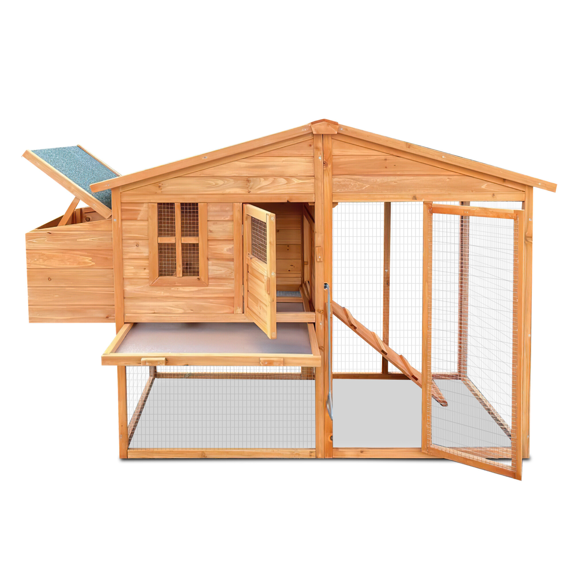 Der Hühnerstall ist aus Tannenholz gefertigt, das für seine Festigkeit und Haltbarkeit bekannt ist.