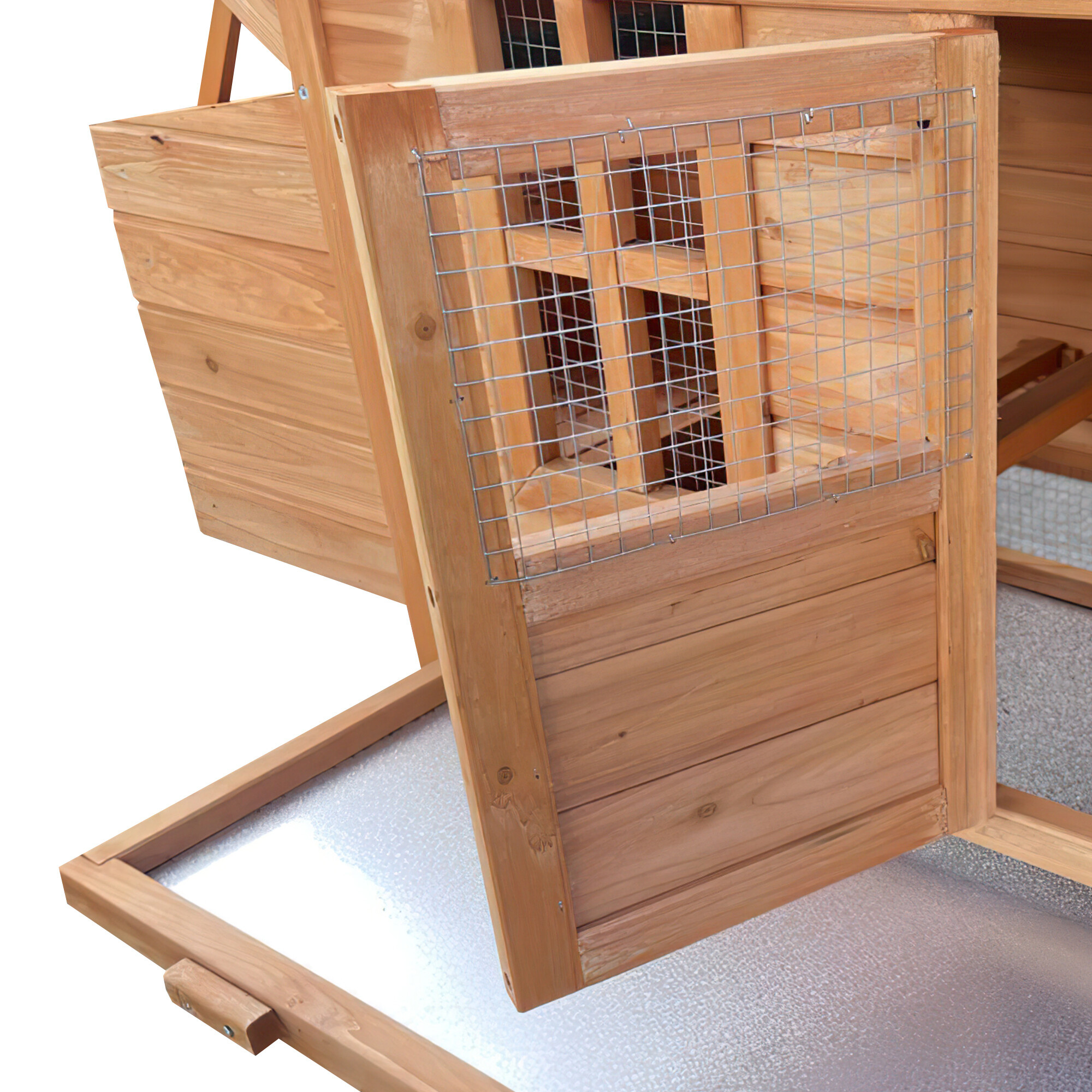 Der ausziehbare Einstreuschublade ist ein großartiger Helfer bei der Sauberkeitspflege, einfach herausziehen, reinigen und wieder einsetzen.Das universelle Design des Hühnerstalls ermöglicht seine Nutzung für verschiedene Tierarten.