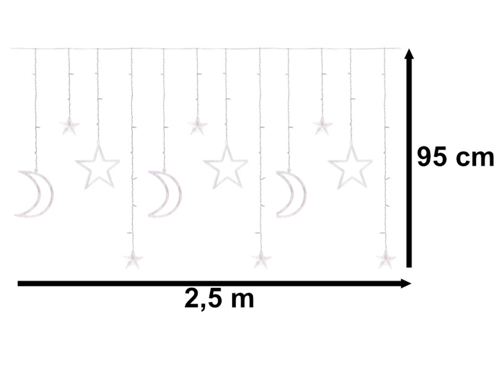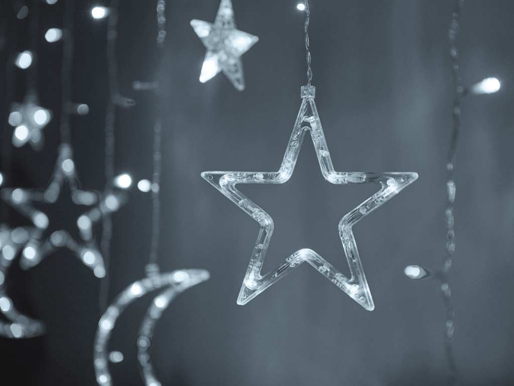 Bringen Sie Magie in Ihren Raum! Ein schöner Lichtvorhang, der jeden Raum erhellt. Warmweiße Lichter bringen Weihnachtszauber in Ihr Zimmer.Der Lichtervorhang eignet sich hervorragend als einzigartige Weihnachtsdekoration, aber die Lichter können auch zu anderen Zeiten des Jahres verwendet werden, insbesondere als originelle Dekoration oder als abendliche Beleuchtung für ein Kinderzimmer. Die Leuchten sind an einem stabilen und starken Kabel montiert, das eine lange Lebensdauer garantiert. Der Vorhang kann an einer Gardinenstange aufgehängt werden und verwandelt gewöhnliche Vorhänge in eine festliche Dekoration oder ersetzt sogar Vorhänge!Die Leuchten sind netzbetrieben und verbrauchen dank der LED-Technologie wenig Energie. Man braucht nicht mehr Steckdosen, um einen größeren Raum zu beleuchten.Sie können problemlos zwei Vorhänge mit einem Stecker verbinden, und Sie können auch verschiedene Lichterketten anschließen, wenn sie Flachstecker haben.