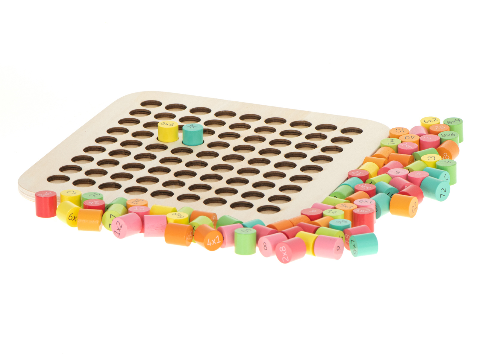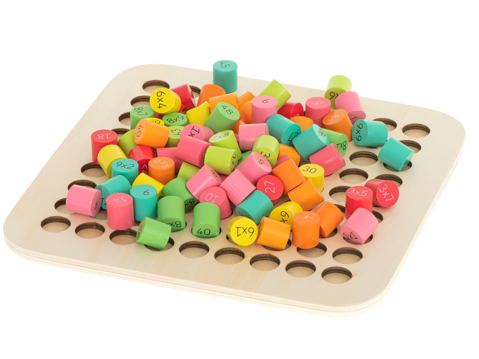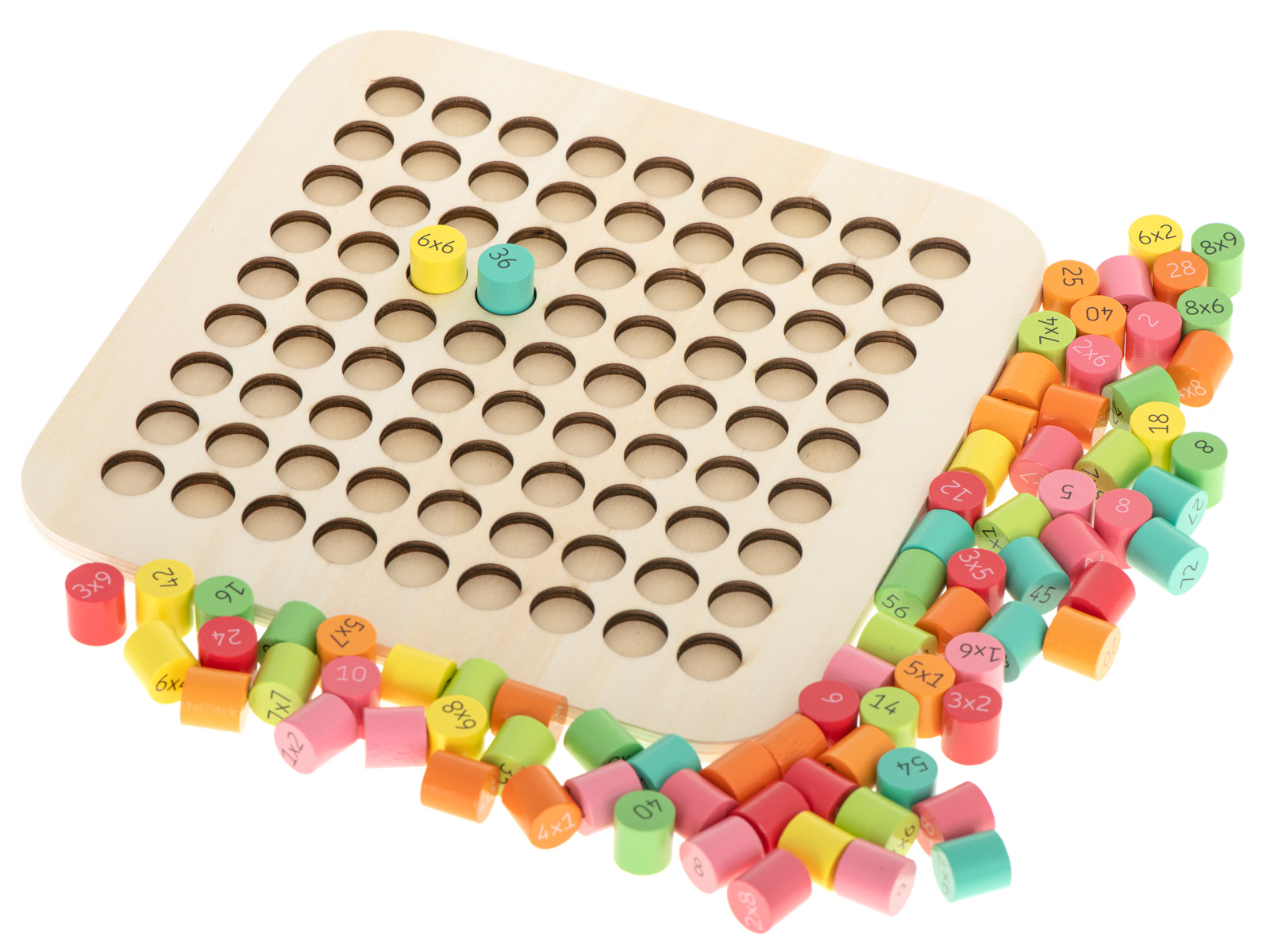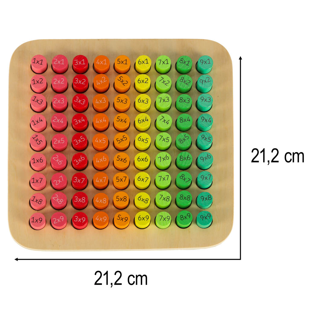 Ein fantastisches Set, das Kindern hilft, das Einmaleins zu lernen.Der Holzrahmen besteht aus 81 verschiedenfarbigen Holzzylindern.Auf der einen Seite des Zylinders steht die Multiplikation, auf der anderen Seite ist das richtige Ergebnis versteckt.