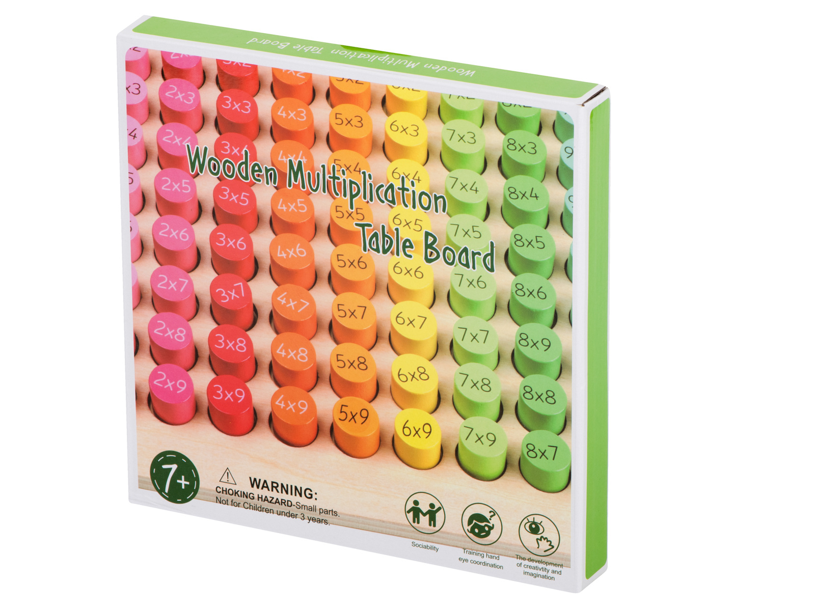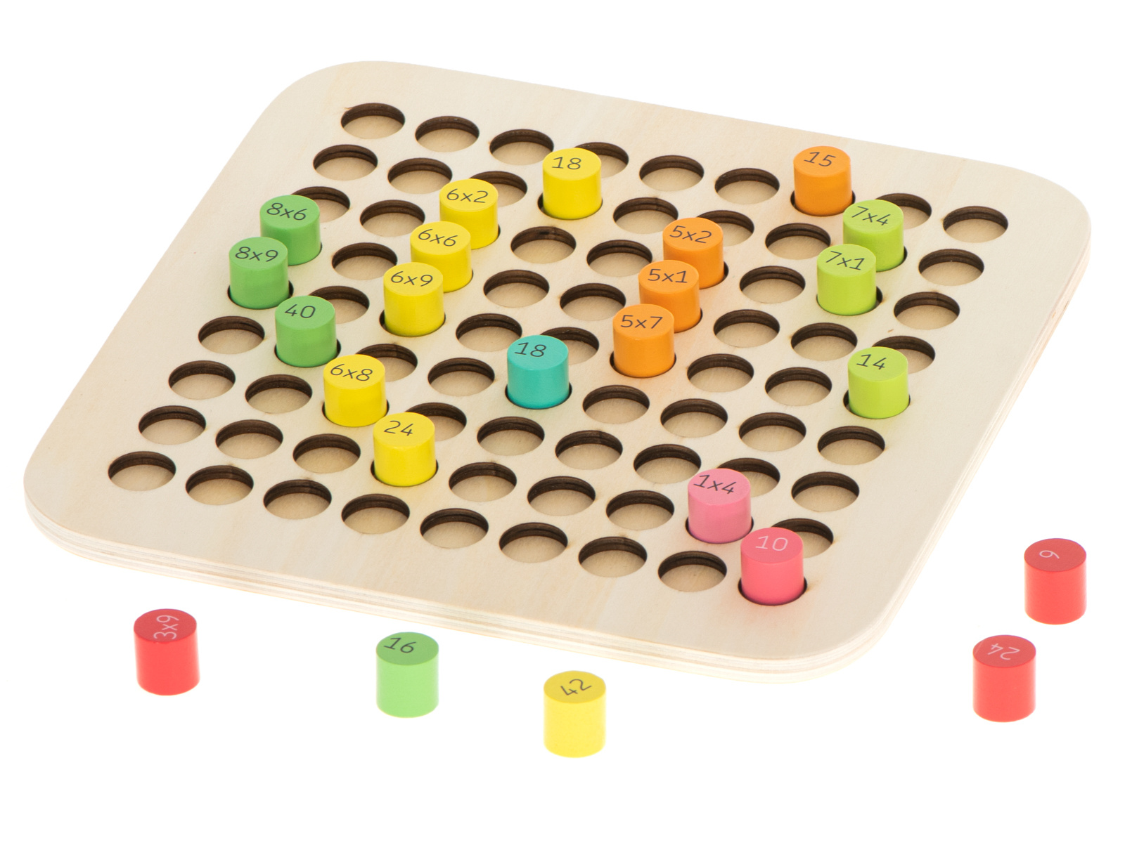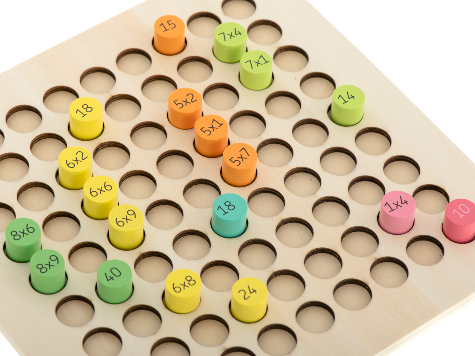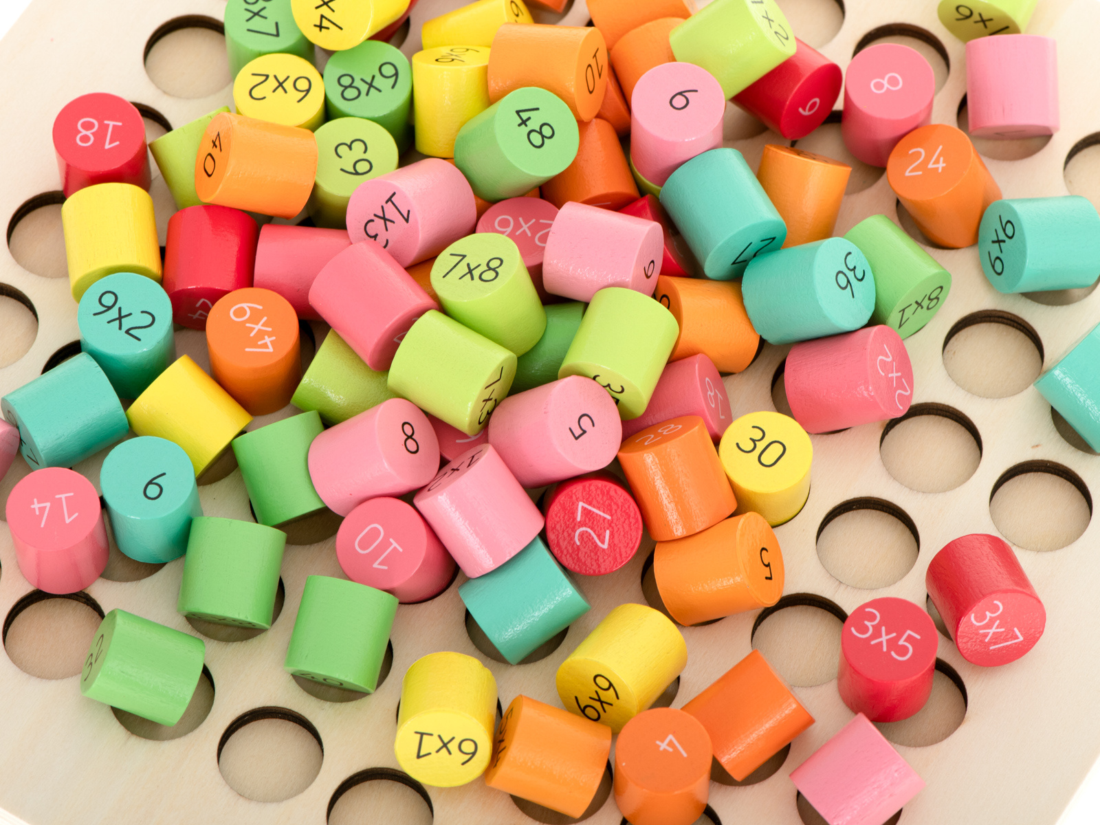 Ein fantastisches Set, das Kindern hilft, das Einmaleins zu lernen.Der Holzrahmen besteht aus 81 verschiedenfarbigen Holzzylindern.Auf der einen Seite des Zylinders steht die Multiplikation, auf der anderen Seite ist das richtige Ergebnis versteckt.