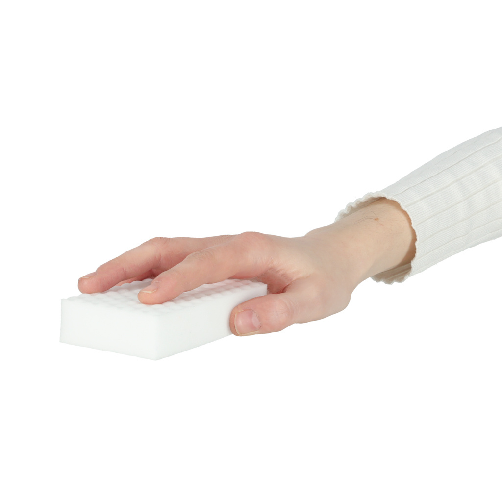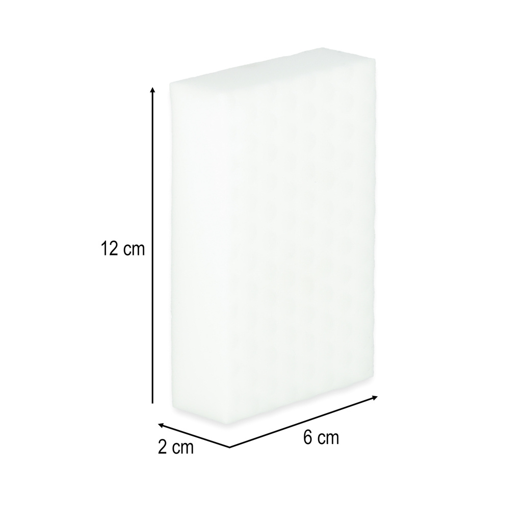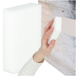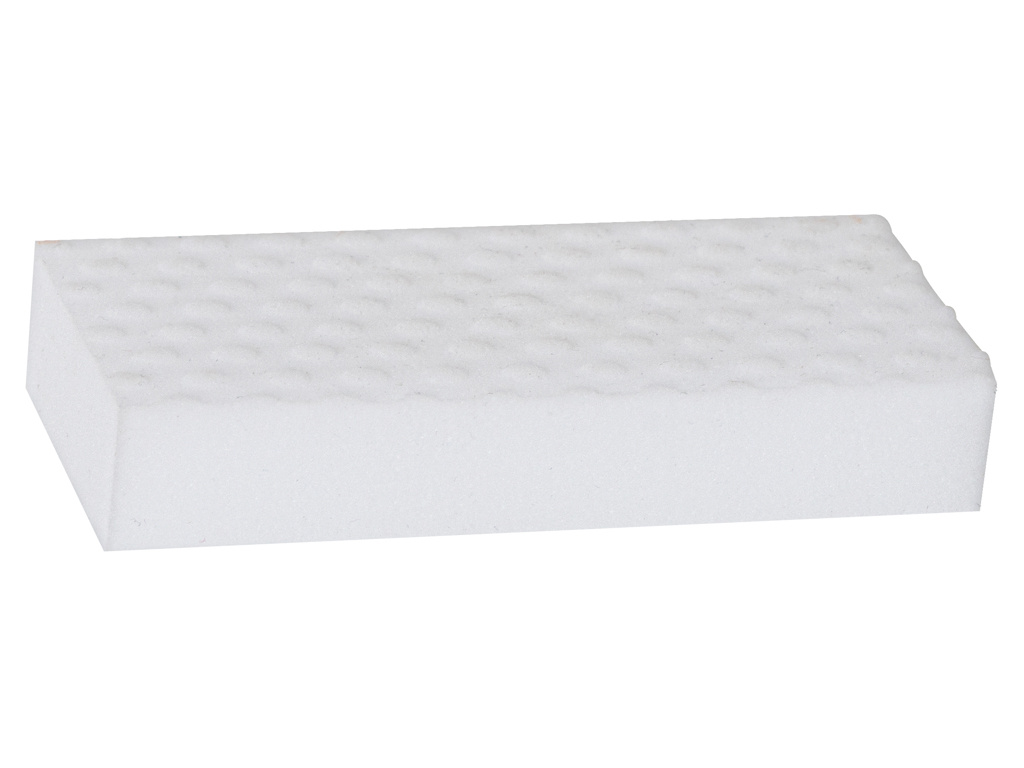 Die hohe Effizienz des Schwamms ist auf seine feinen abrasiven Eigenschaften zurückzuführen. Es nutzt sich bei der Reinigung wie Gummi ab.
