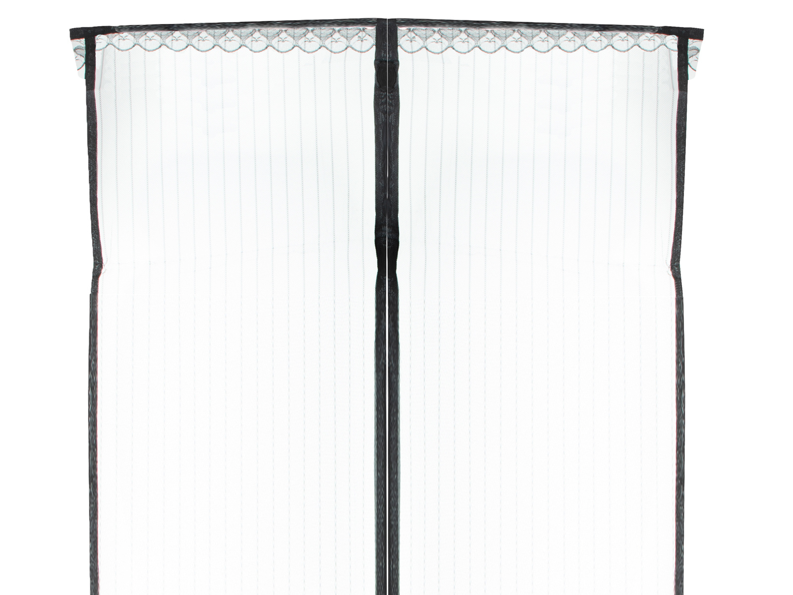 Das Moskitonetz besteht aus zwei Teilen. Es ist wichtig, dass die Teile mit den Magneten in der Mitte liegen - so wird sichergestellt, dass sich das Moskitonetz automatisch öffnet und schließt, wenn Sie hindurchgehen.