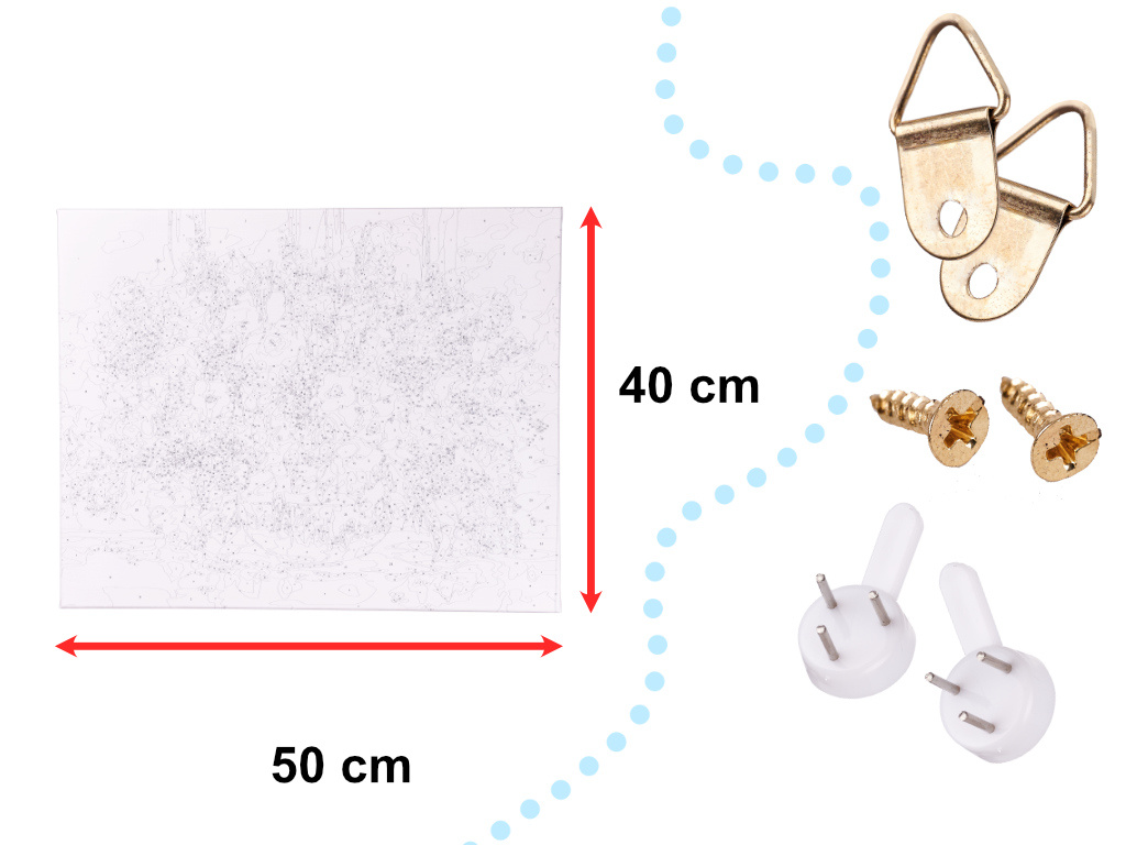 Alles, was man braucht, ist eine Tasse Wasser zum Malen, und der Rest ist im Set enthalten - eine Leinwand mit einem Bild zum Ausmalen, drei Pinsel in verschiedenen Stärken und Farben.