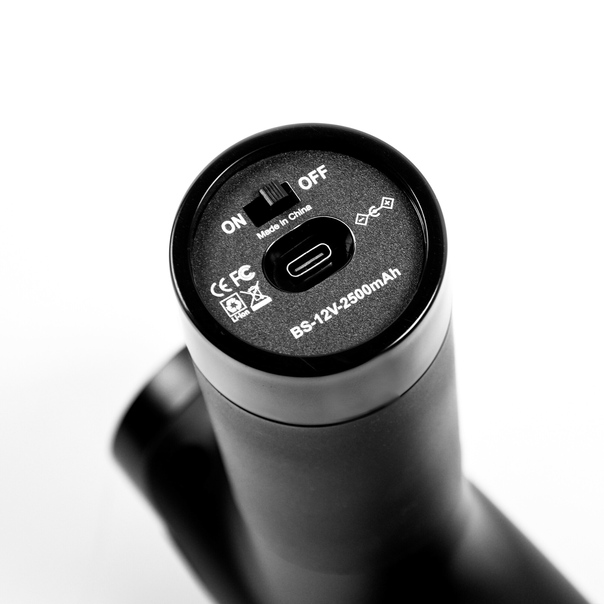 Die Massagepistole verfügt über einen eingebauten Lithium-Ionen-Akku mit einer Kapazität von 2500mAh, der je nach verwendeter Geschwindigkeitsstufe bis zu 3 Stunden mit einer einzigen Ladung hält.