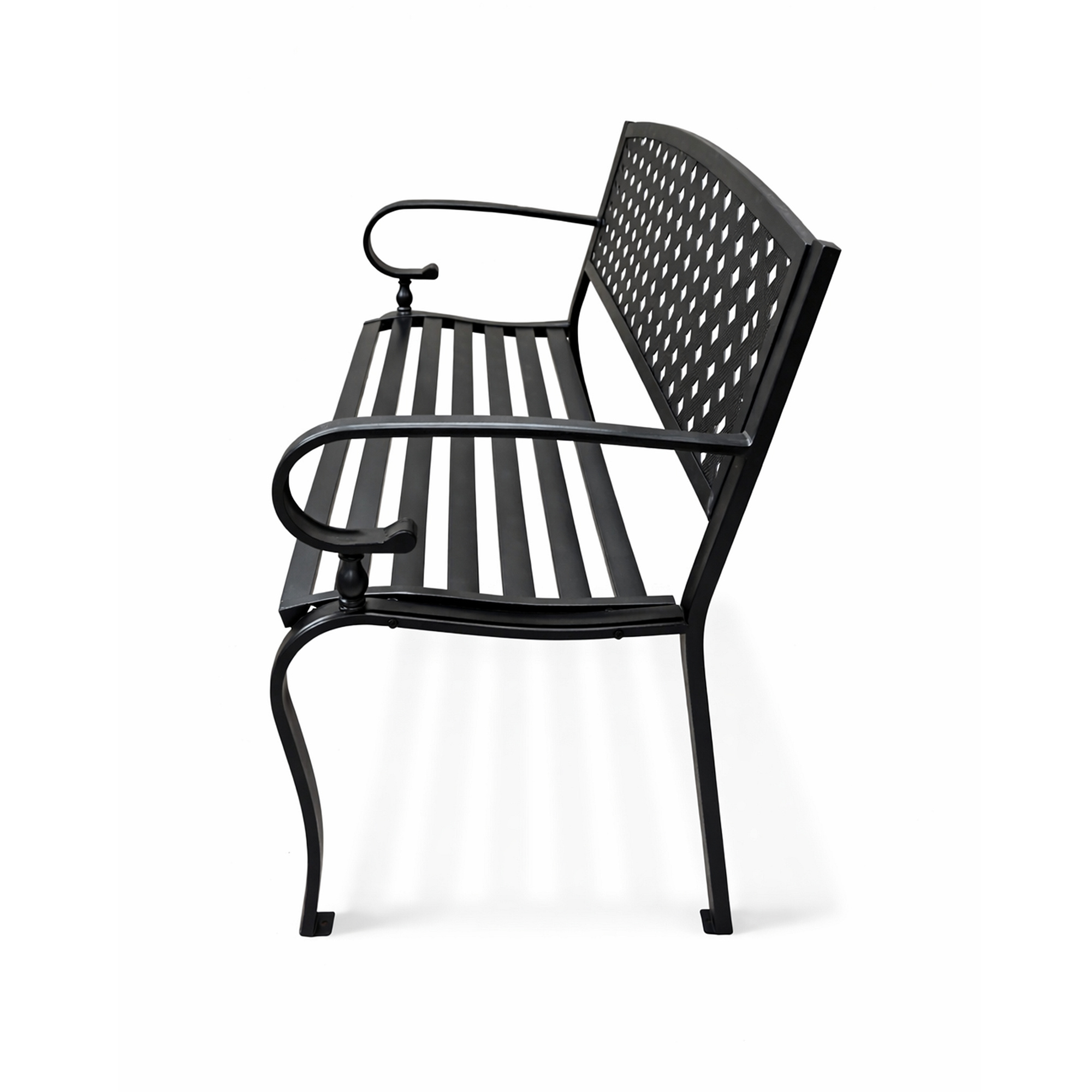 Die Konstruktion der Gartenbank besteht aus Stahl und Gusseisen, diese Materialien sind widerstandsfähig und gewährleisten gleichzeitig Stabilität.