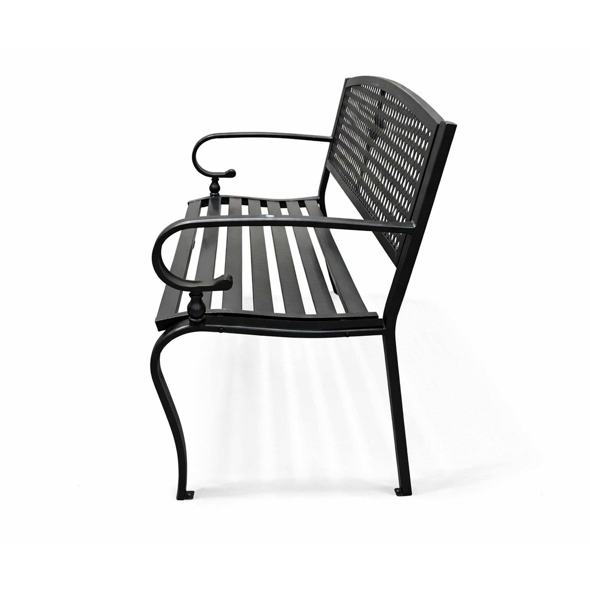 Die Konstruktion der Gartenbank besteht aus Stahl und Gusseisen, diese Materialien sind widerstandsfähig und gewährleisten gleichzeitig Stabilität.