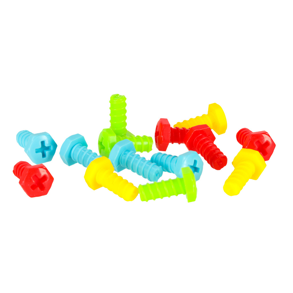 Das Spiel besteht darin, mit einem Schraubenzieher verschiedenfarbige Schrauben in das Brett zu schrauben.