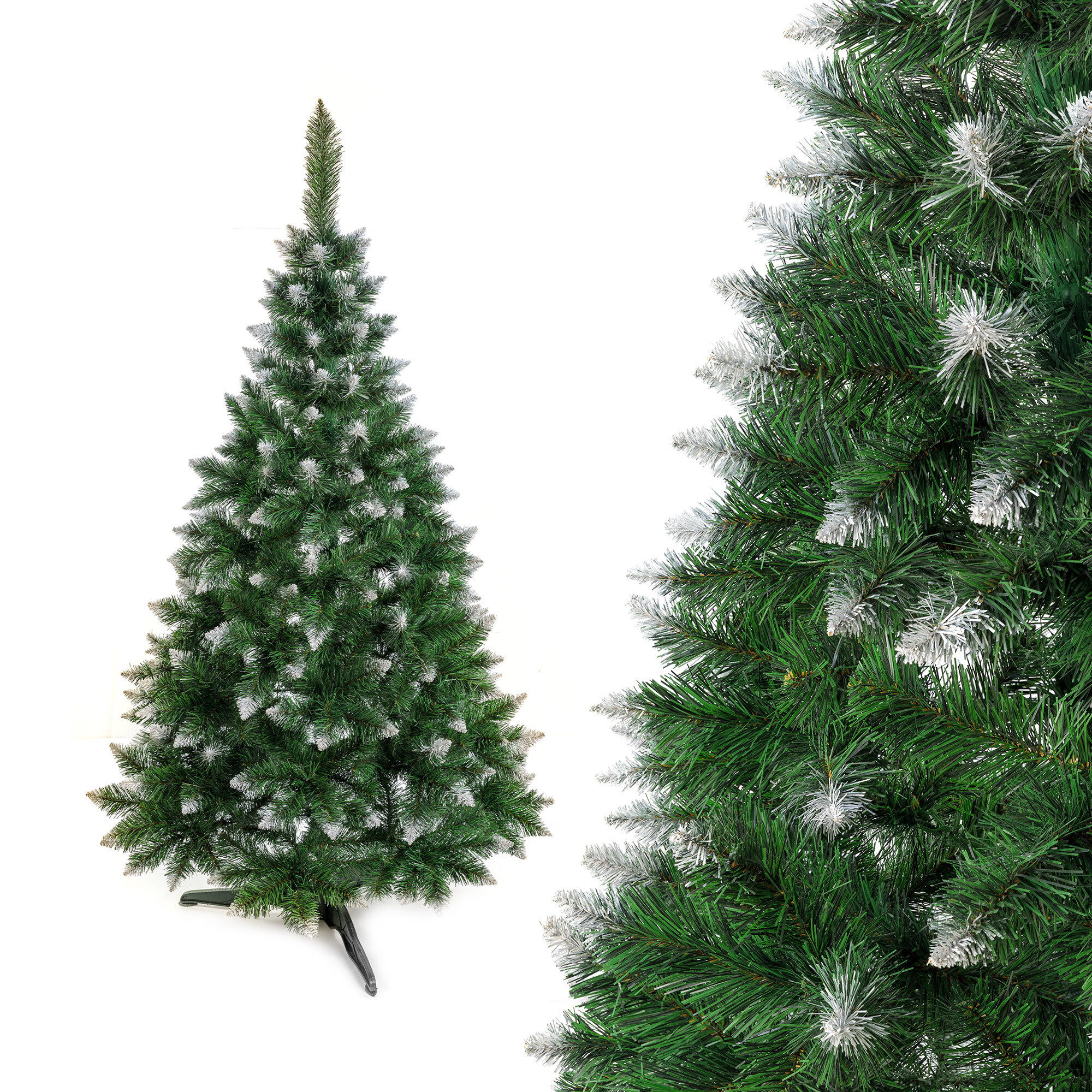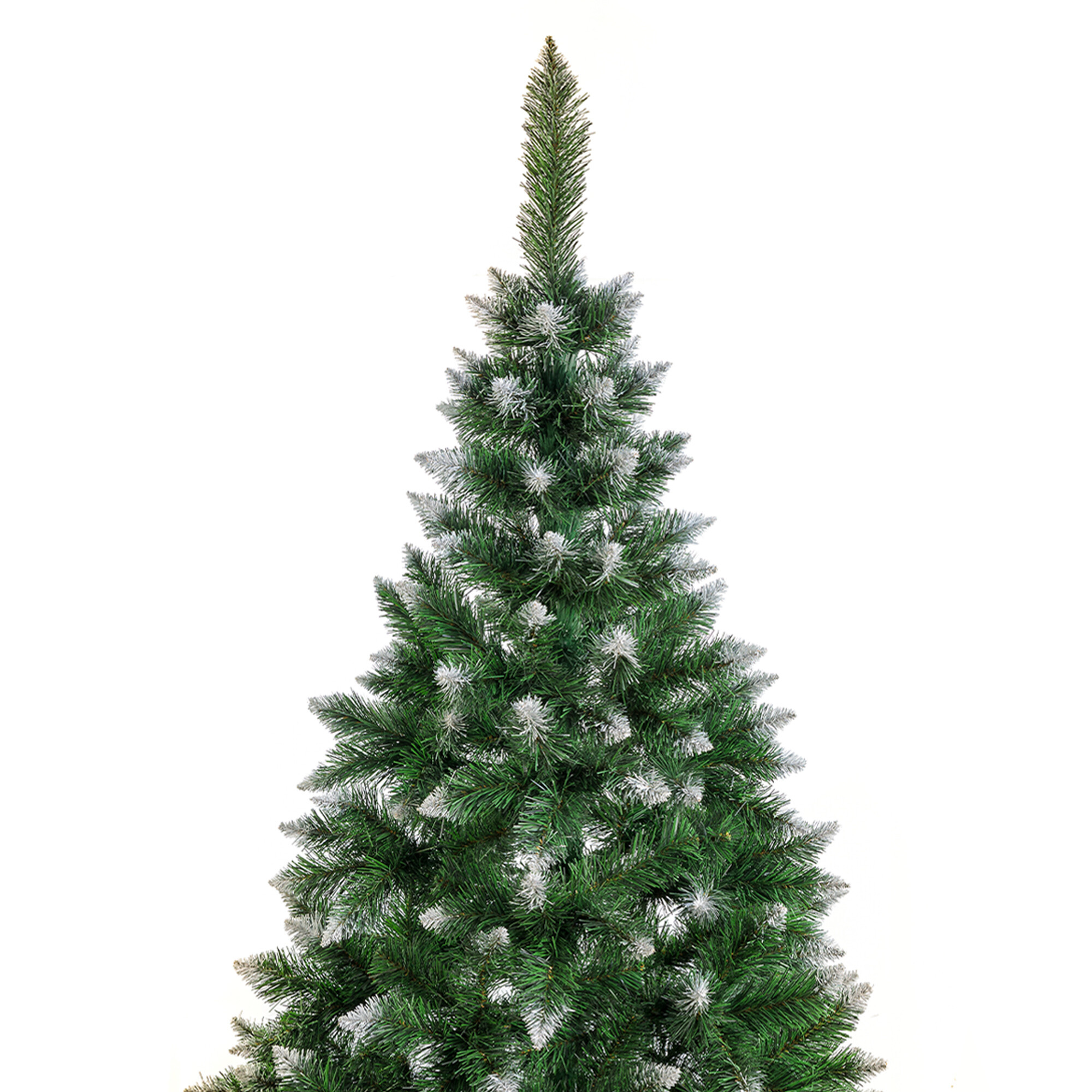 Der Weihnachtsbaum ist mit Blick auf Details gestaltet, um so echt wie möglich auszusehen. Seine Zweige sind dicht und üppig, was ihm ein volles und lebendiges Aussehen verleiht. Die Enden der Zweige sind außerdem verschneit.