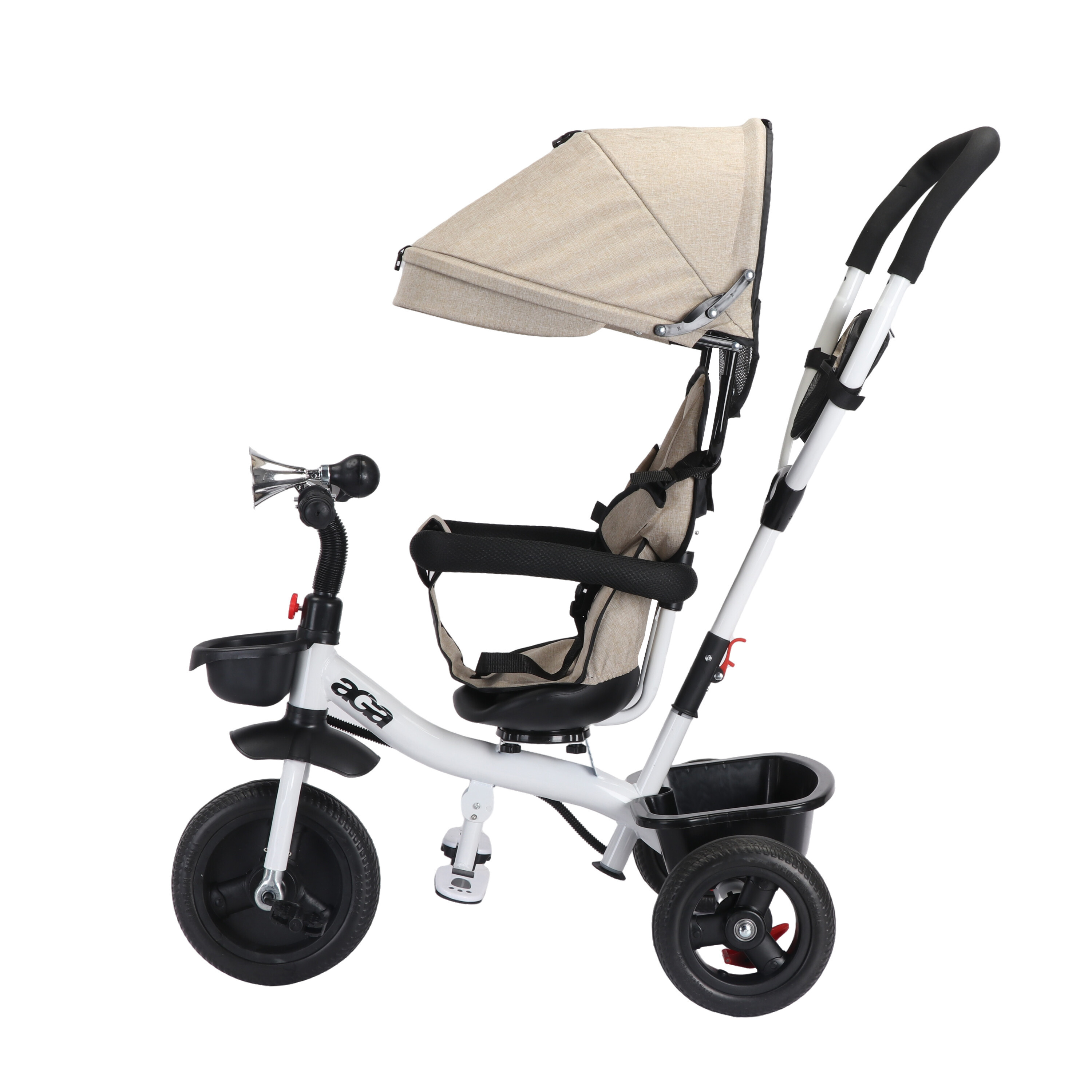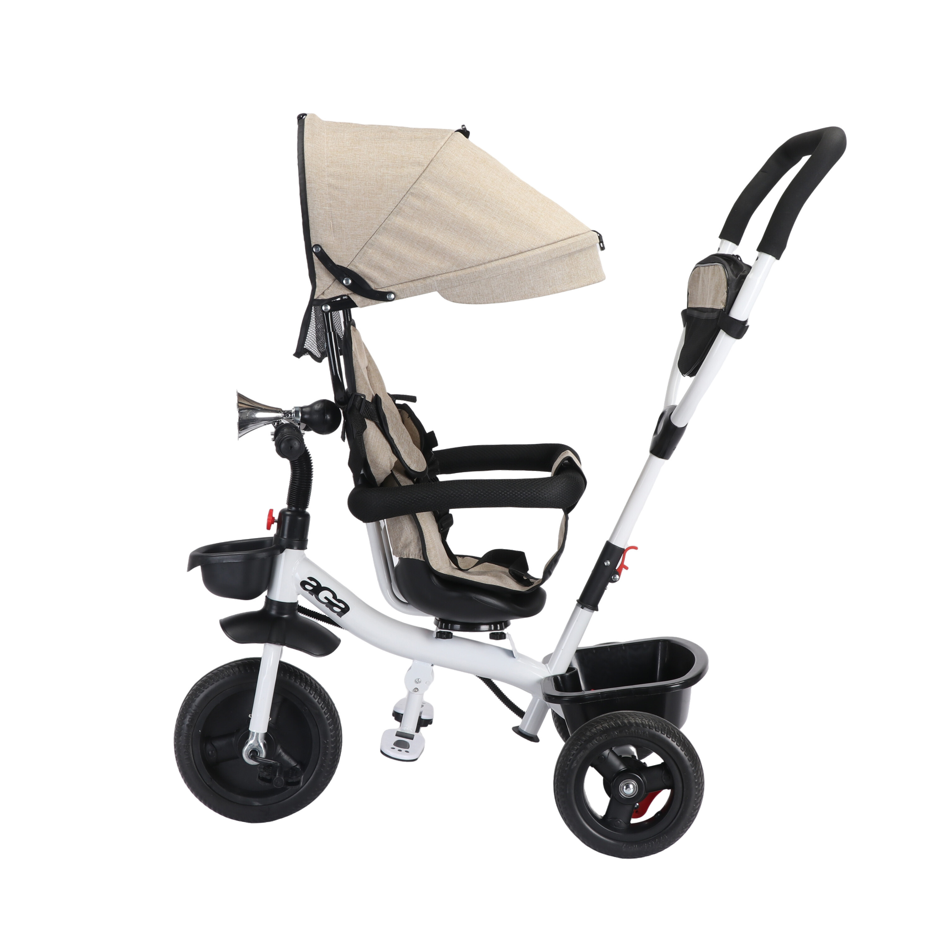 Das Dreirad ist mit einem Sicherheitsgurt, rutschfesten Pedalen, ergonomisch geformten Lenkergriffen (Griffe) und einem Sonnenschutzdach ausgestattet.