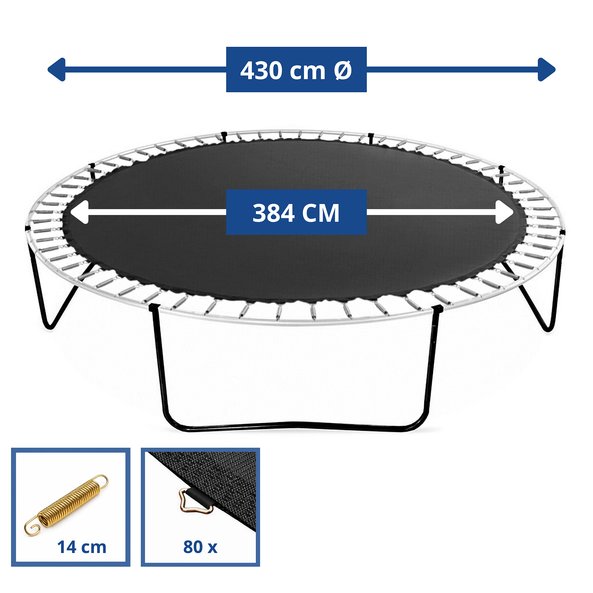 Ersatz-Sprungtuch für Trampoline mit einer Größe von 430 cm mit 80 Ösen.