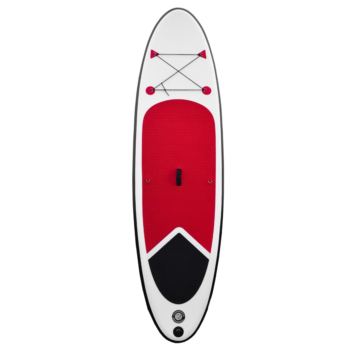 Das Brett ist am Bug und am Heck mit D-Ring-Griffen zum Befestigen der Sicherheitsleine ausgestattet.