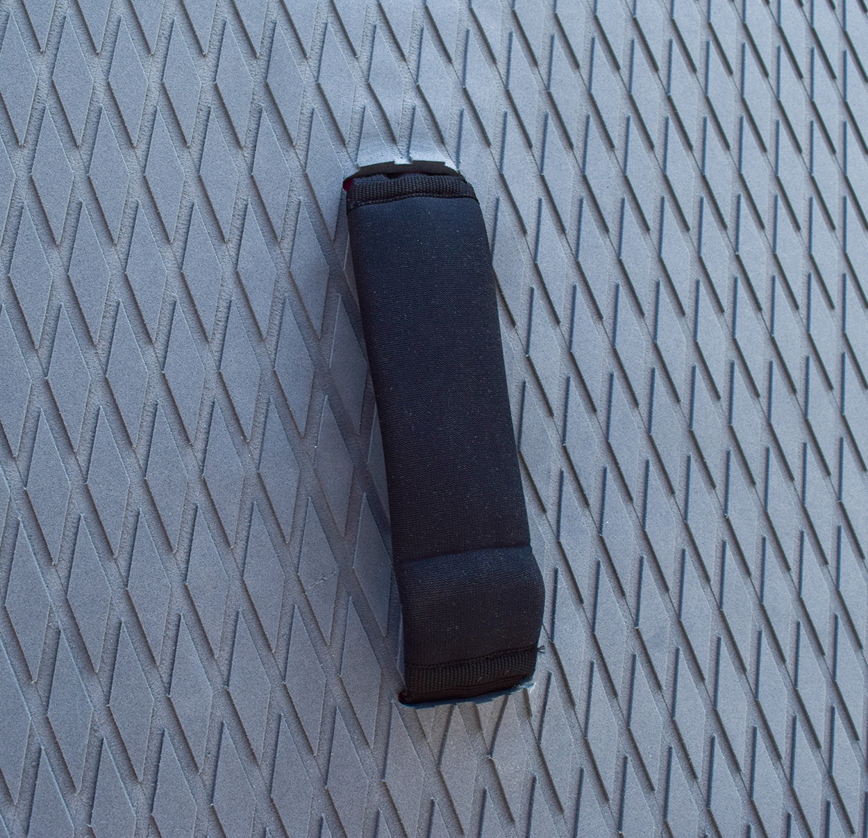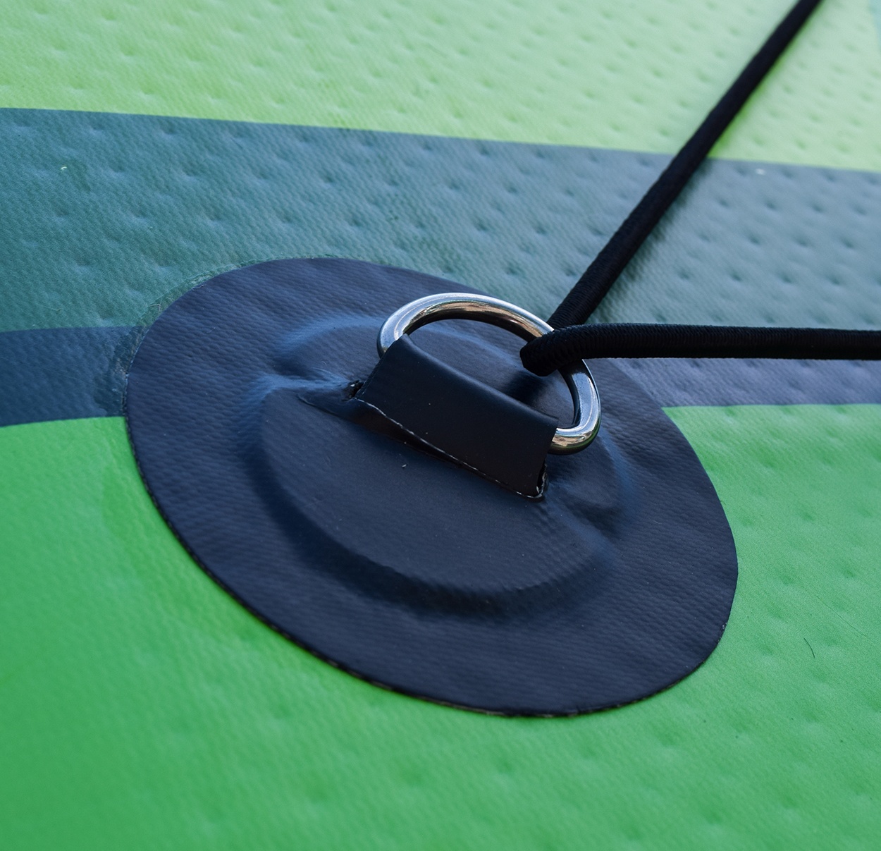Das Brett ist am Bug und am Heck mit D-Ring-Griffen zum Befestigen der Sicherheitsleine ausgestattet.
