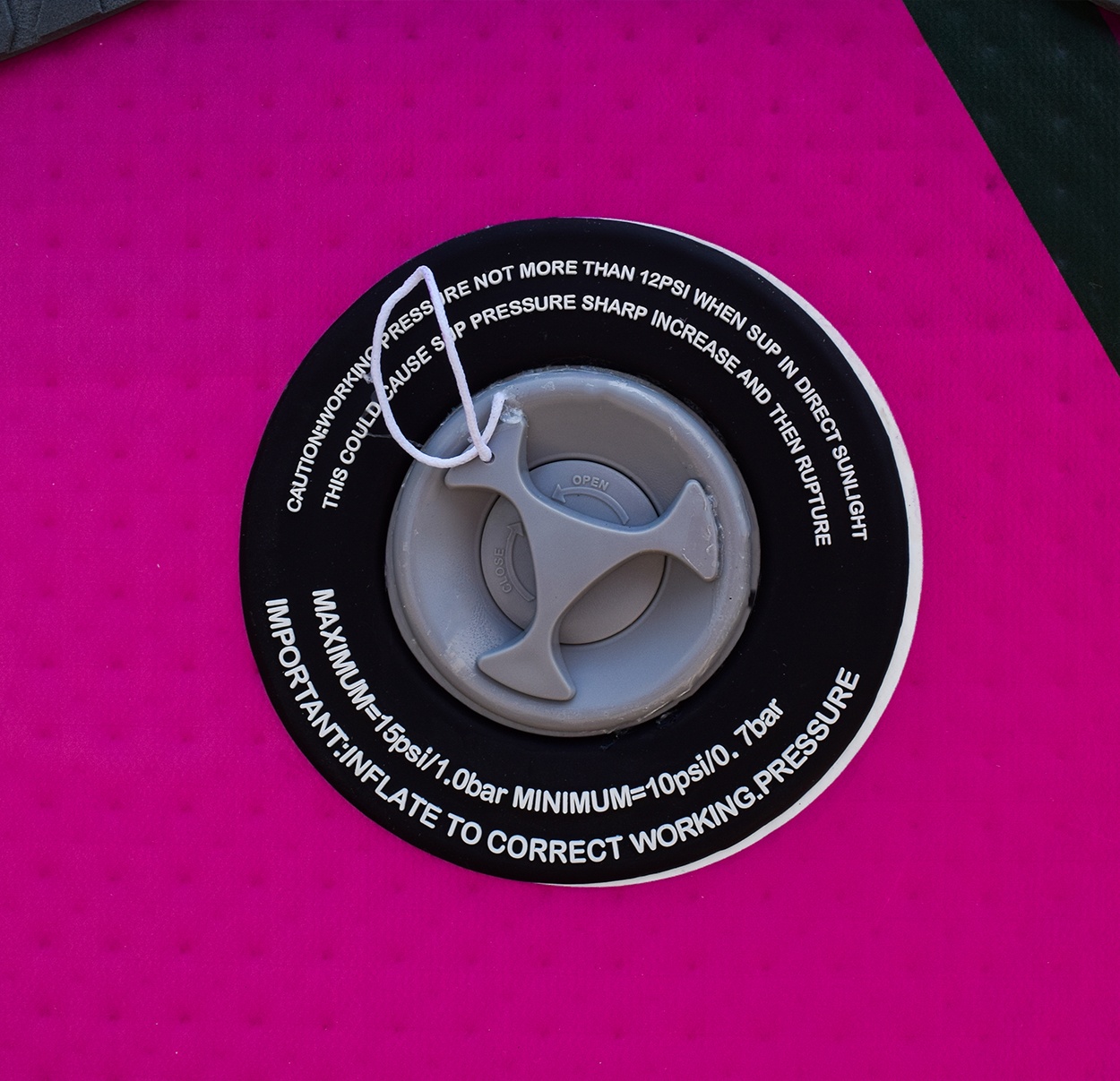 Das Paddleboard ist aus langlebigen Materialien gefertigt und resistent gegen Salzwasser und UV-Strahlung. Es lässt sich leicht aufblasen, entleeren und in einem Rucksack verstauen.