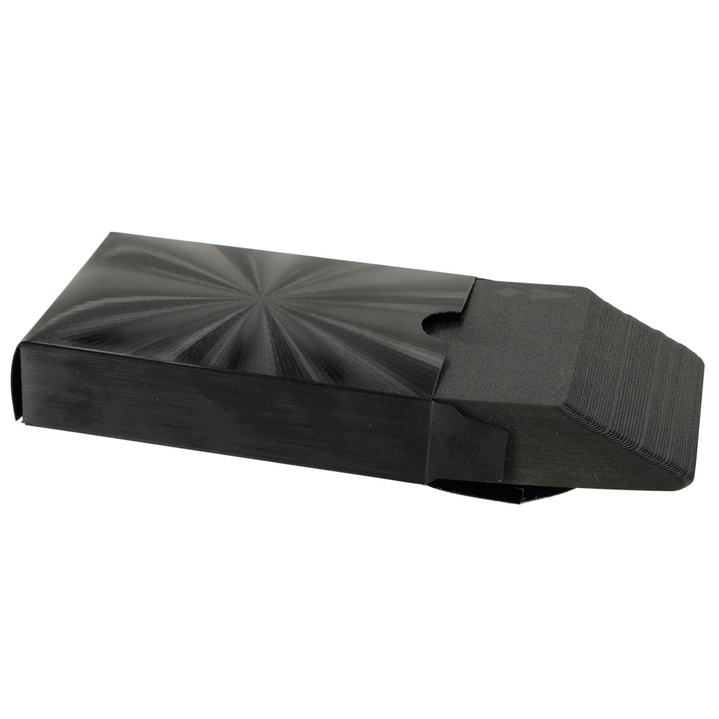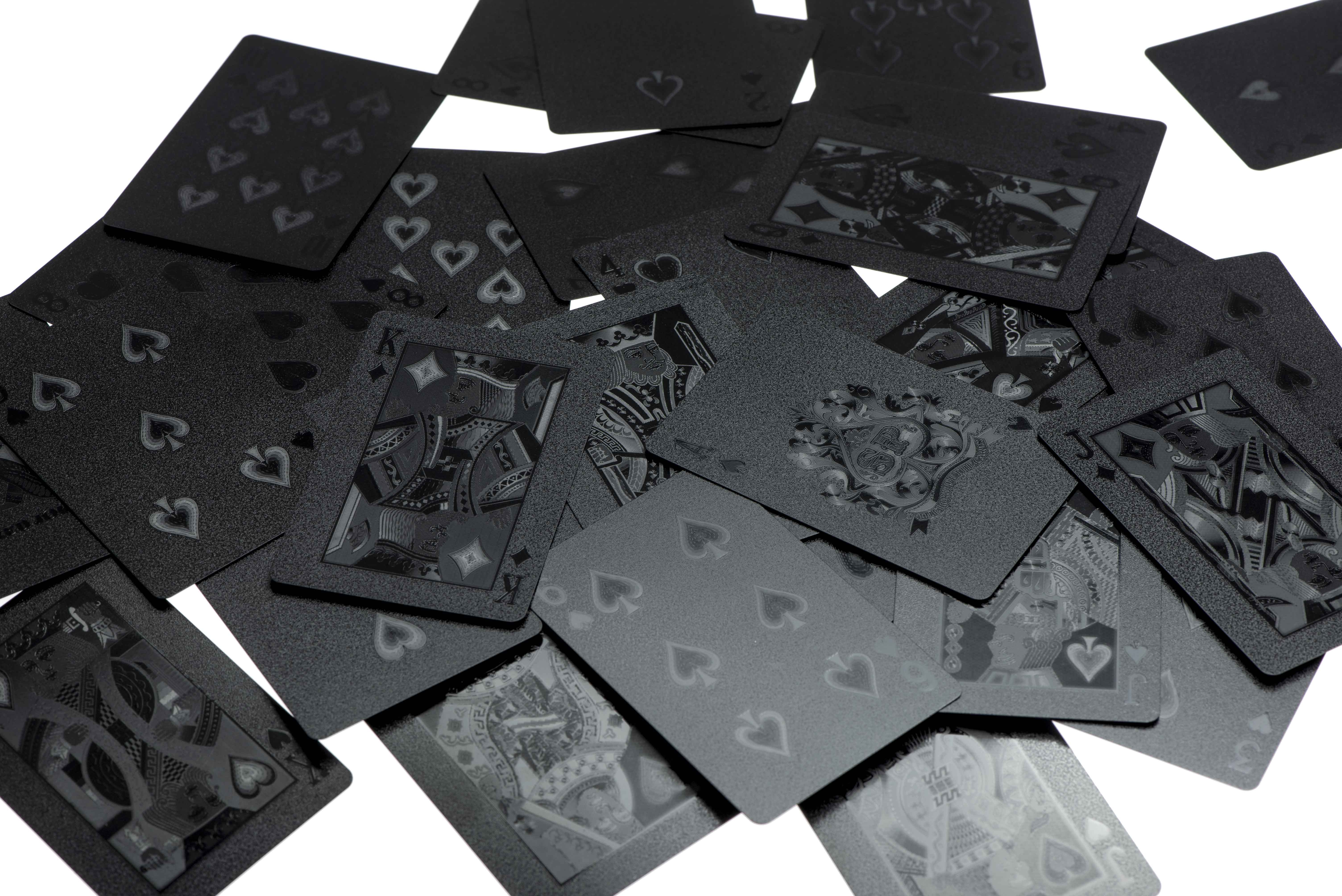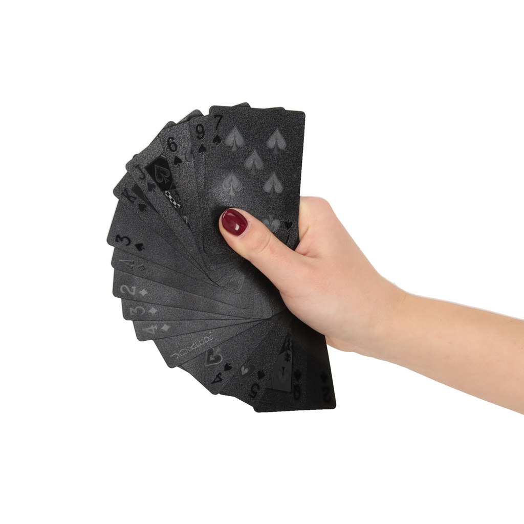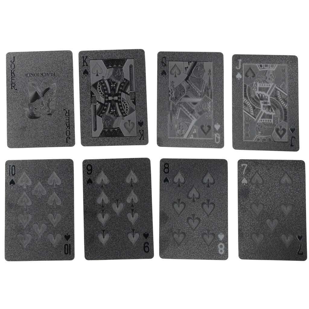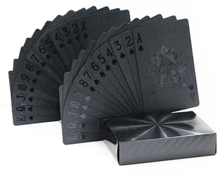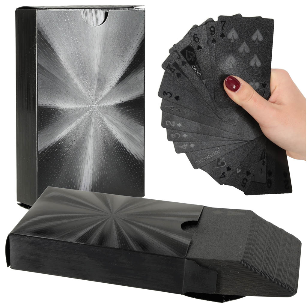 Für alle Kartenspieler ist es wichtig, dass der Gegner die Karten nicht ansieht, und diese Karten helfen auch bei diesem Kriterium.Luxuriöse schwarze Spielkarten 54 Stück sind sehr elegant und fallen durch ihr ungewöhnliches Aussehen auf. Sie sind auch sehr haltbar, da sie aus Kunststoff bestehen und sich daher nicht so leicht ablösen und Schaden anrichten können. Vor allem bei Kneipenspielen besteht ständig die Gefahr, dass Spielkarten verschüttet werden, aber diese Karten sind gegen alle derartigen Unfälle gefeit. Material: Kunststoff, beschichtet mit Spezialfolie