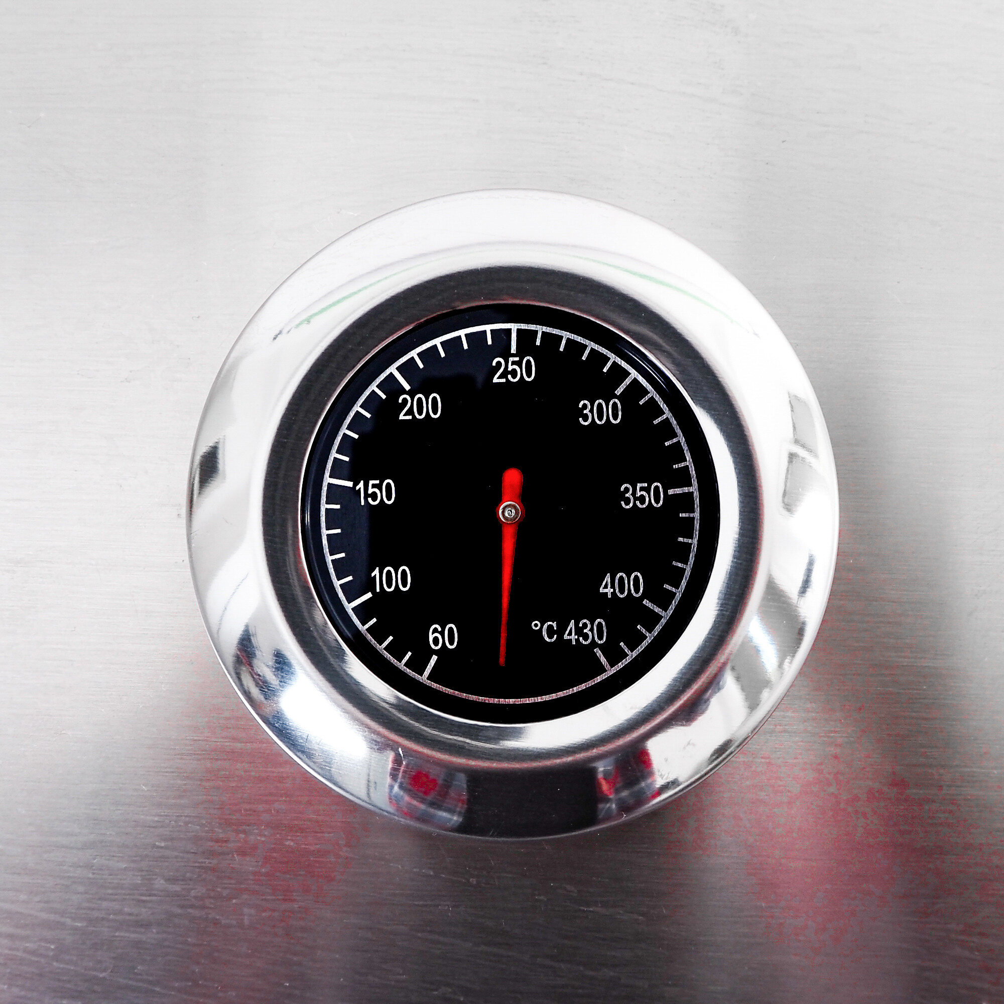Der Grill ist mit einem praktischen klappbaren Deckel mit eingebautem Thermometer ausgestattet