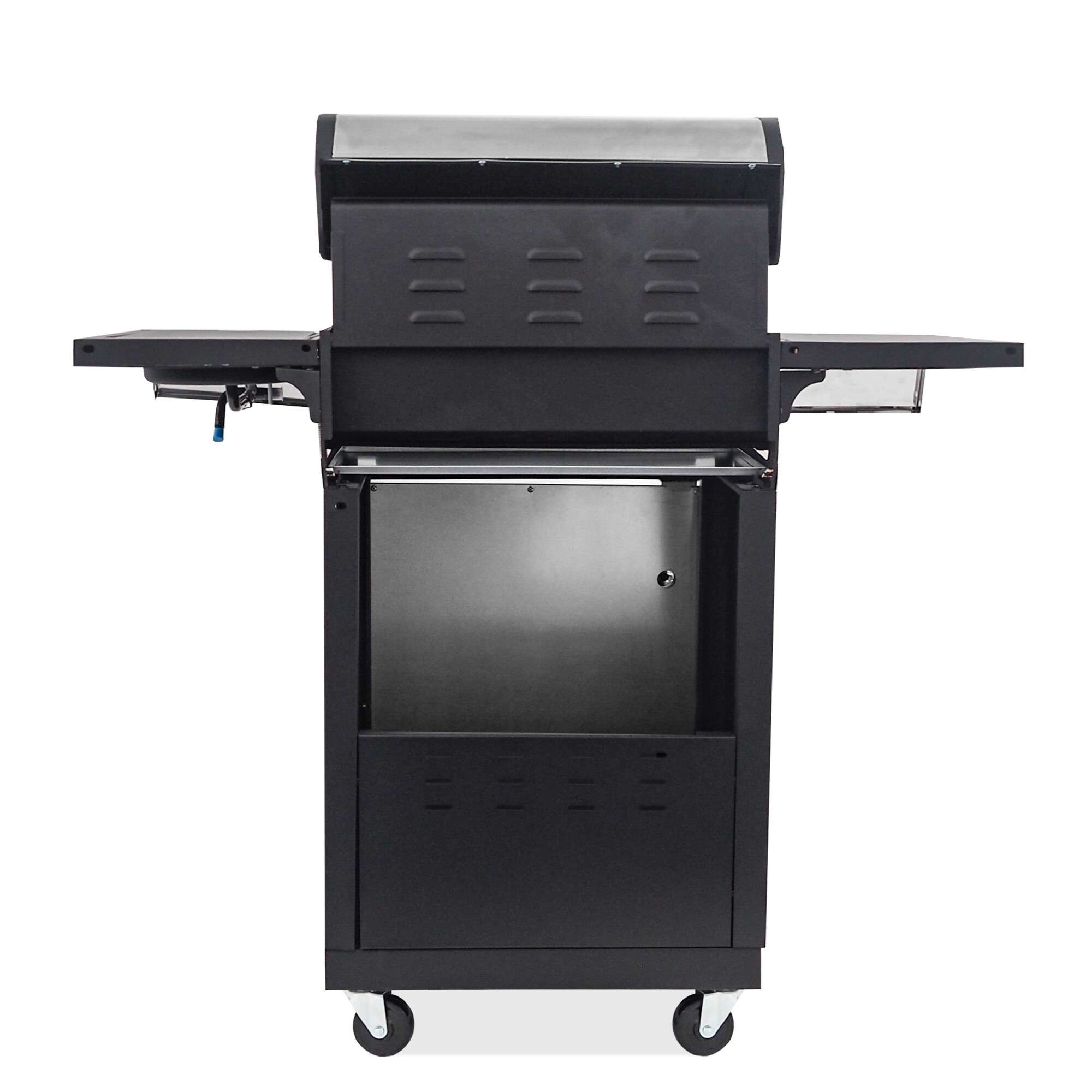 Der Grill ist außerdem mit einem eingebauten Seitenbrenner ausgestattet, der in die Arbeitsplatte integriert ist - so können Sie bequem gleichzeitig mit dem Grillen Ihre Lieblingssaucen oder Beilagen zubereiten.