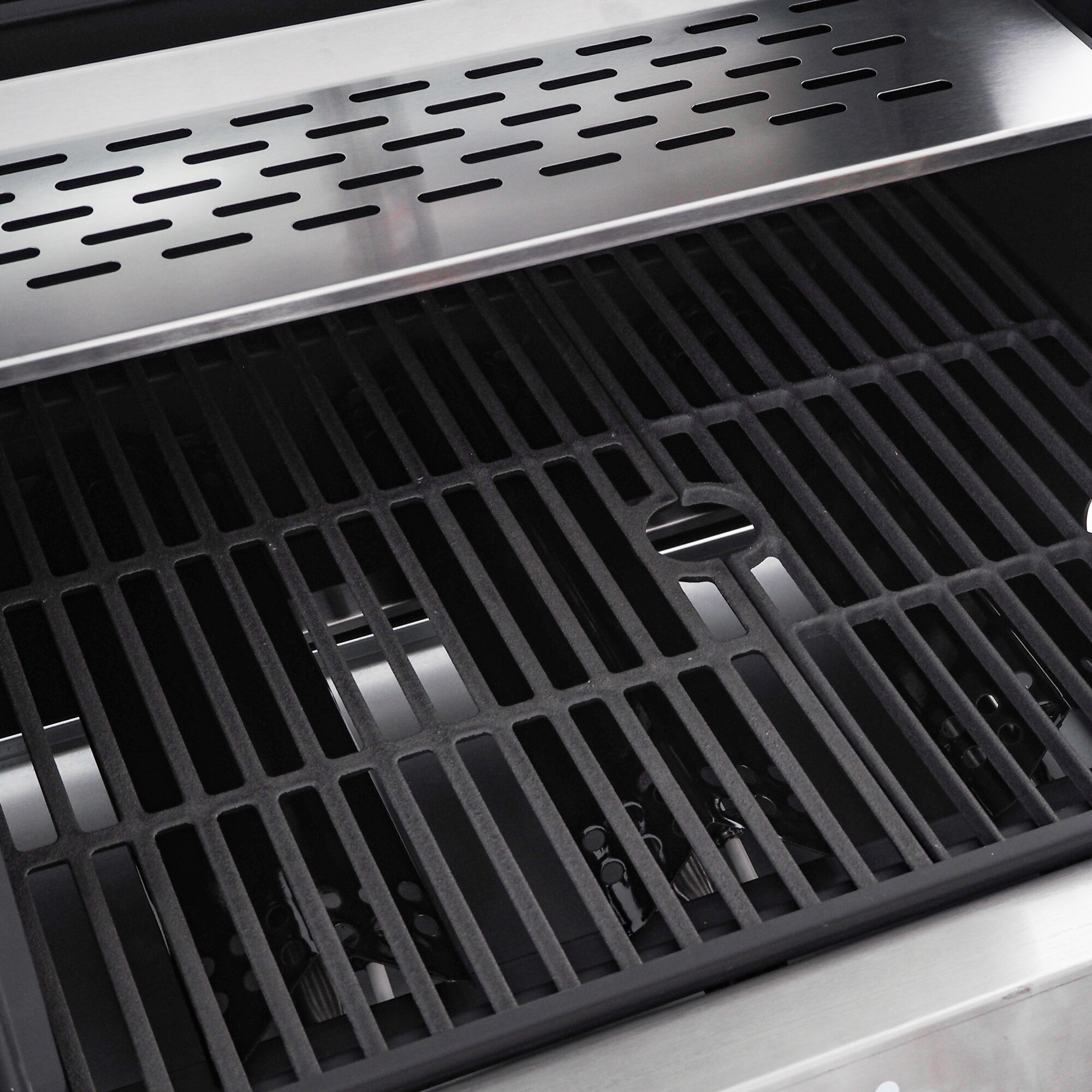 Grillrost aus massivem Gusseisen sorgt für eine gleichmäßigere Wärmeverteilung. Der Hauptgrillbereich ist mit 3 x Brennern mit separater Regelung ausgestattet.